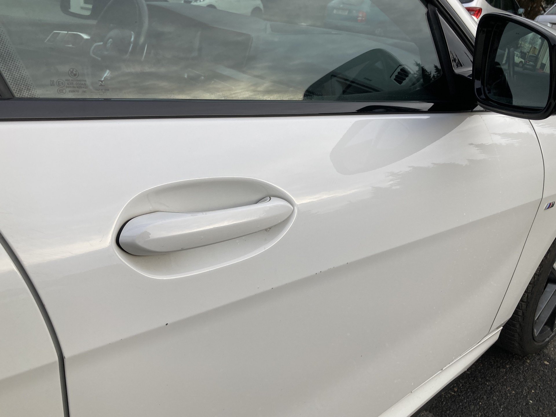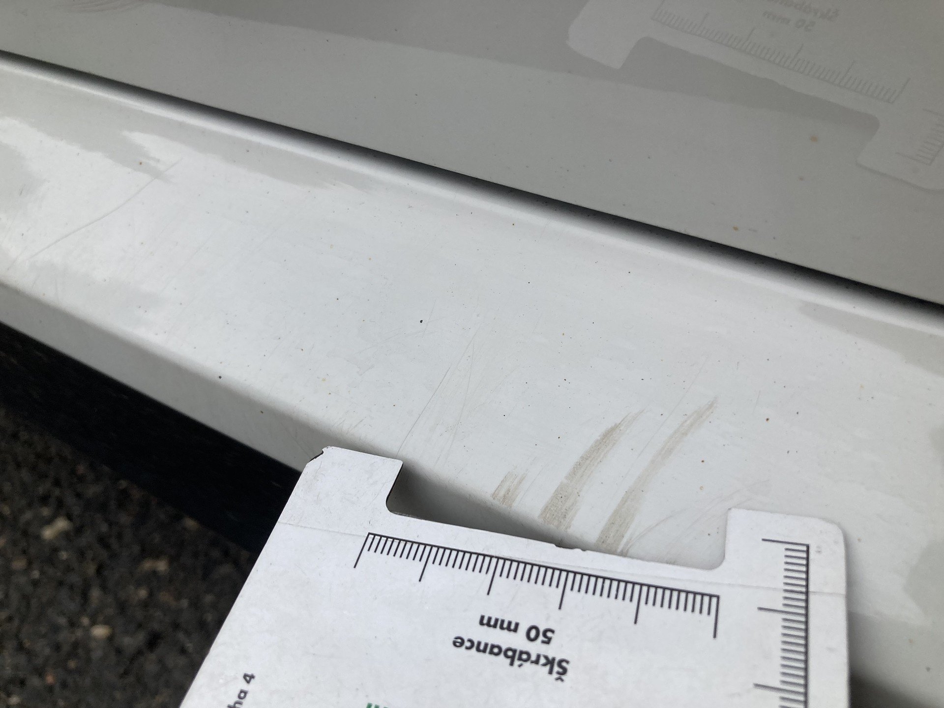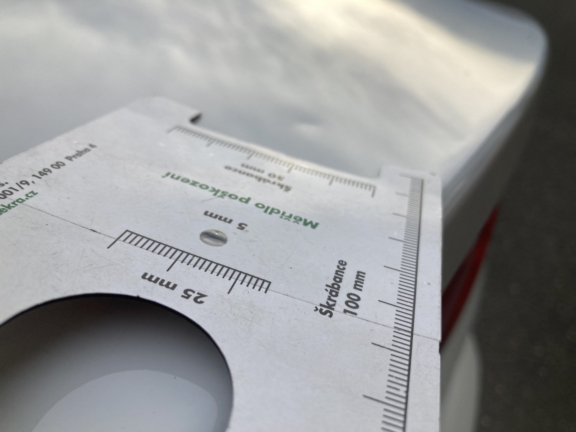 Oděrky a škrábance po obvodu karosérie, přední část karosérie je poškozená od kamínku, mírně promáčklé víko motorového prostoru - jamky, mírně odřené levé přední dveře, odřený levý plastový práh v zadní části, odřený lem levého zadního blatníku, mírně promáčklé víko zavazadlového prostoru - jamky, mírně promáčklá střecha - jamky, odřený zadní nárazník, odřené pravé zadní dveře, odřené pravé přední dveře, odřený kryt pravého zpětného zrcátka, interiér vozidla opotřeben, karosérie vozidla poškozená kroupy,