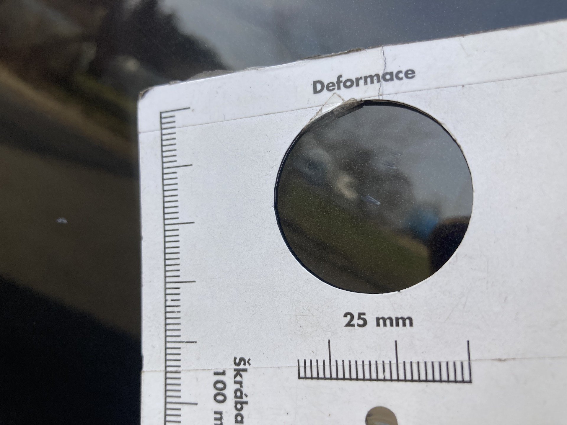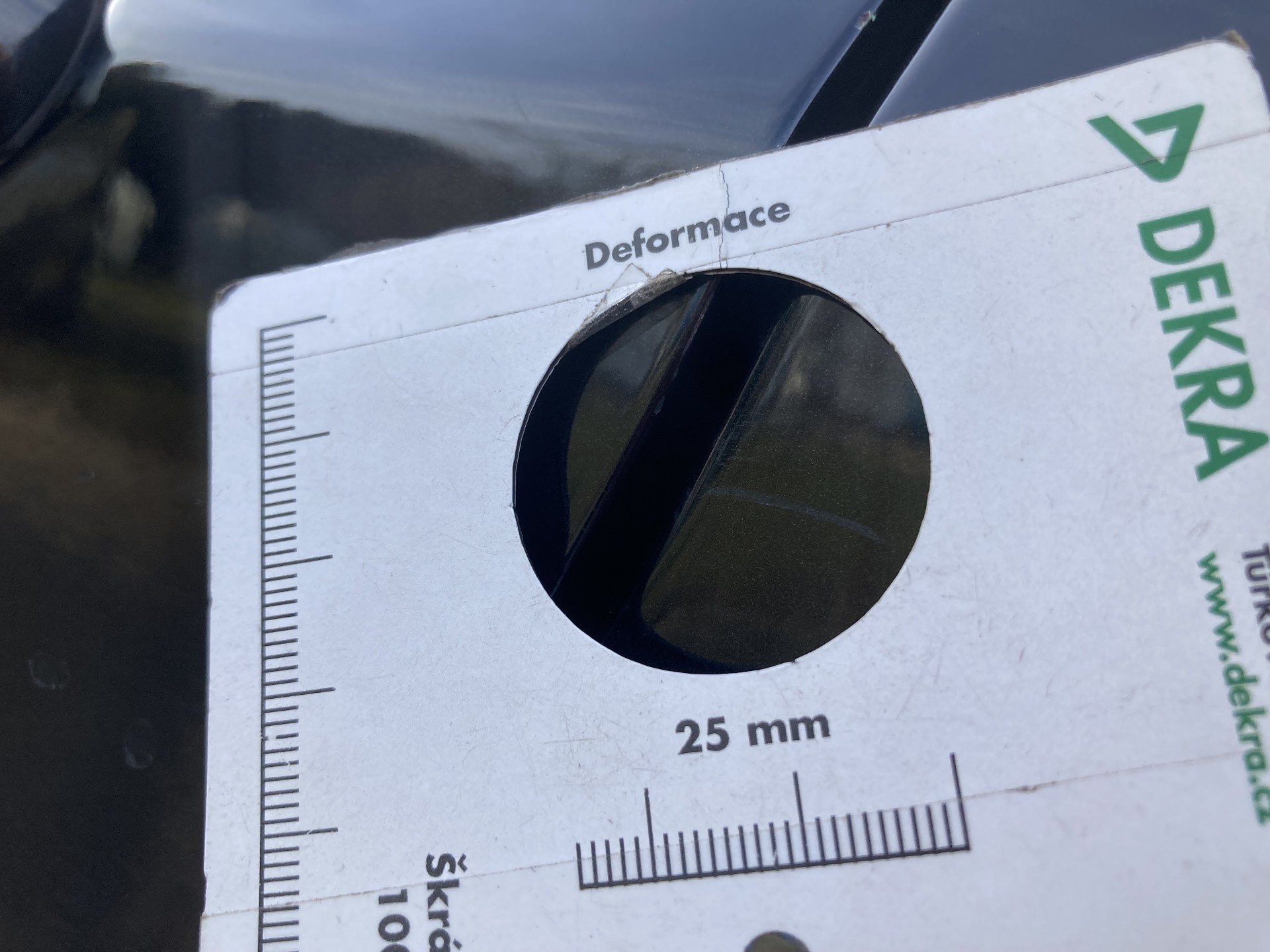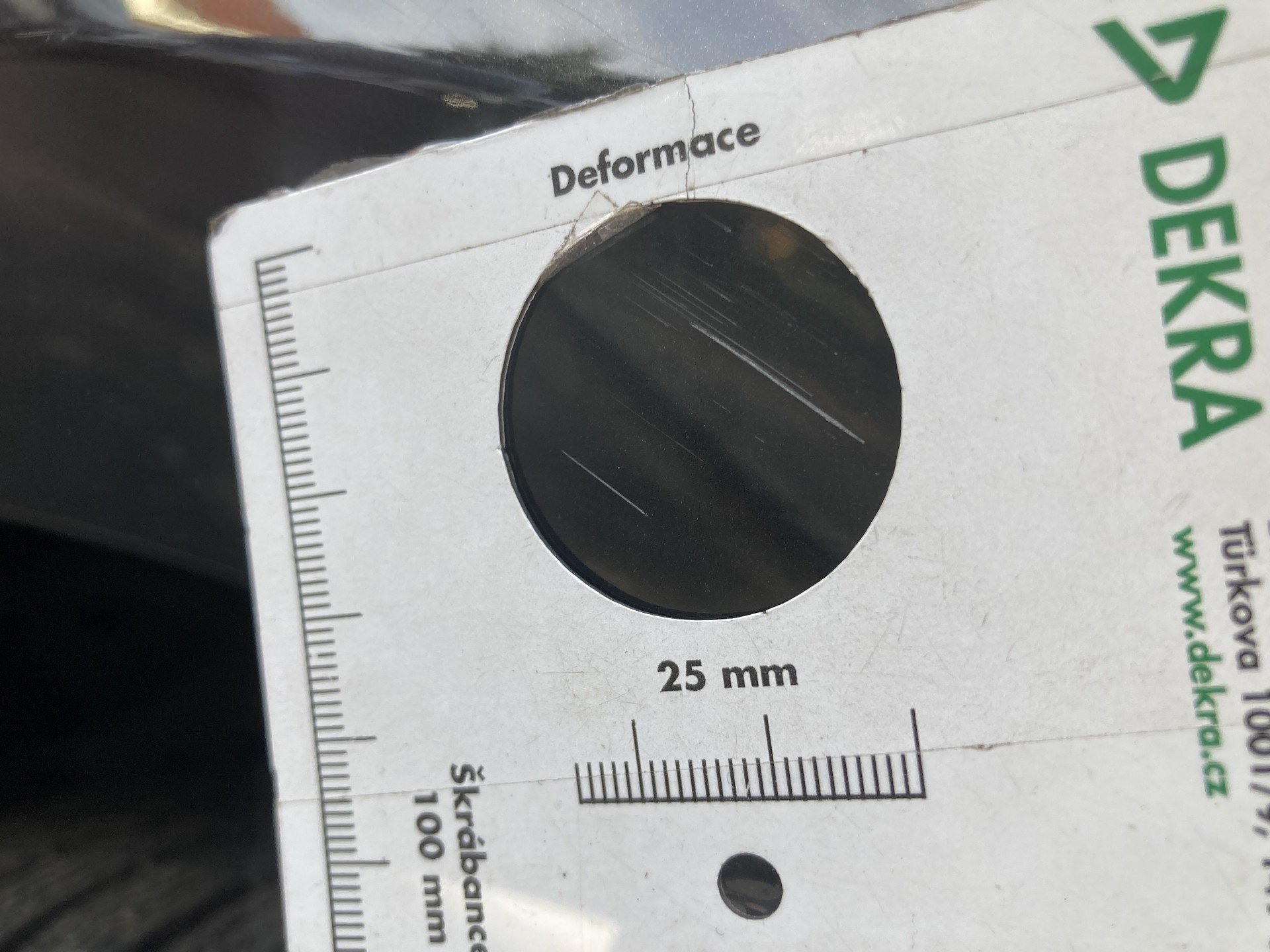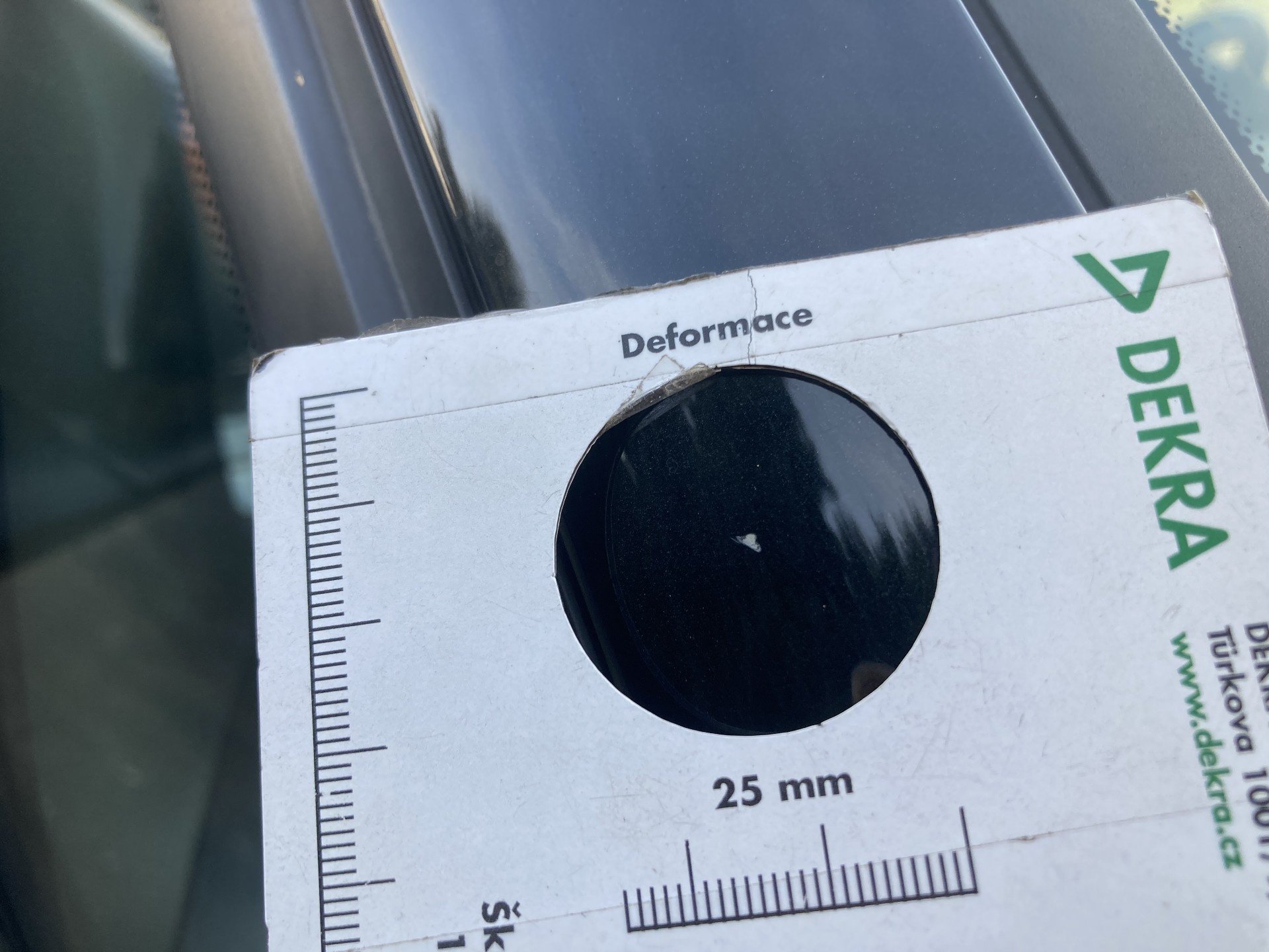 Oděrky a škrábance po obvodu karosérie, přední část karosérie je poškozená od kamínku, odřený přední nárazník, odřené víko motorového prostoru, poškozené čelní sklo, odřená hrana levcýh předních dveří, mírně promáčklé levé zadní dveře - jamka, odřený zadní nárazník, poškozená odrazka zadního nárazníku, mírně promáčklé pravé zadní dveře - jamka, mírně promáčklé pravé přední dveře - jamka, interiér vozidla opotřeben,