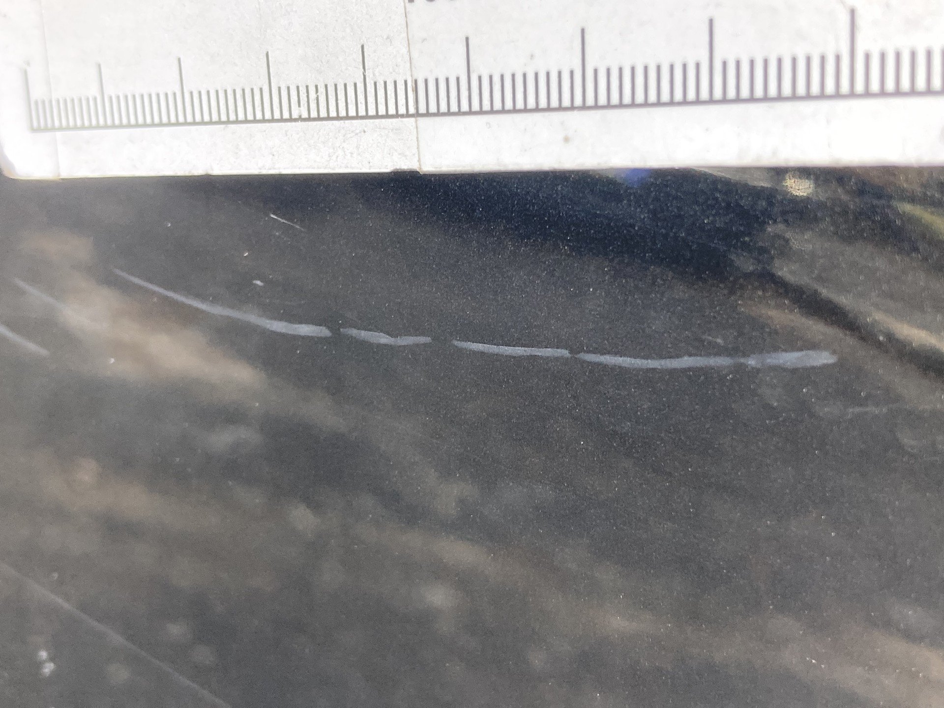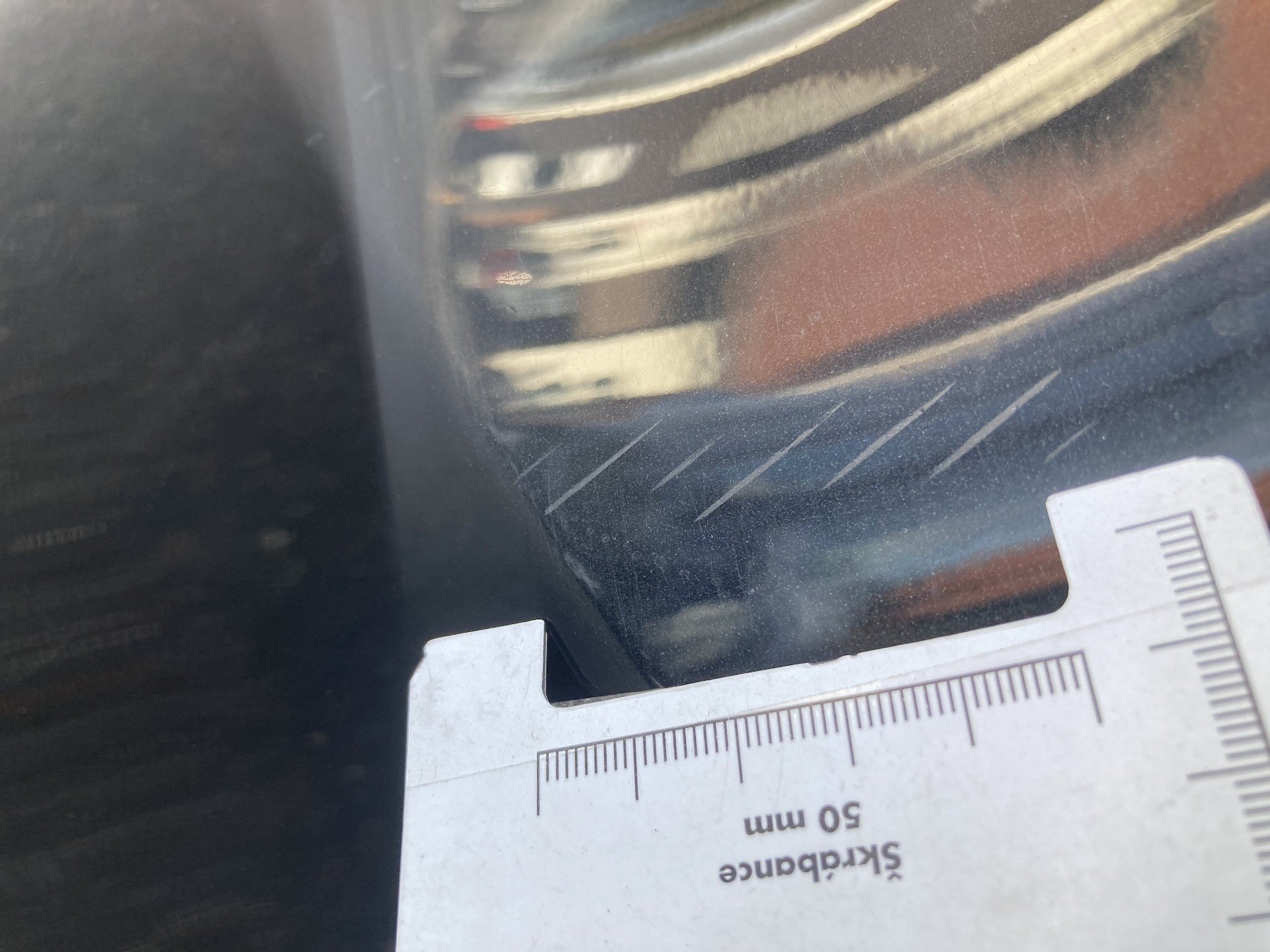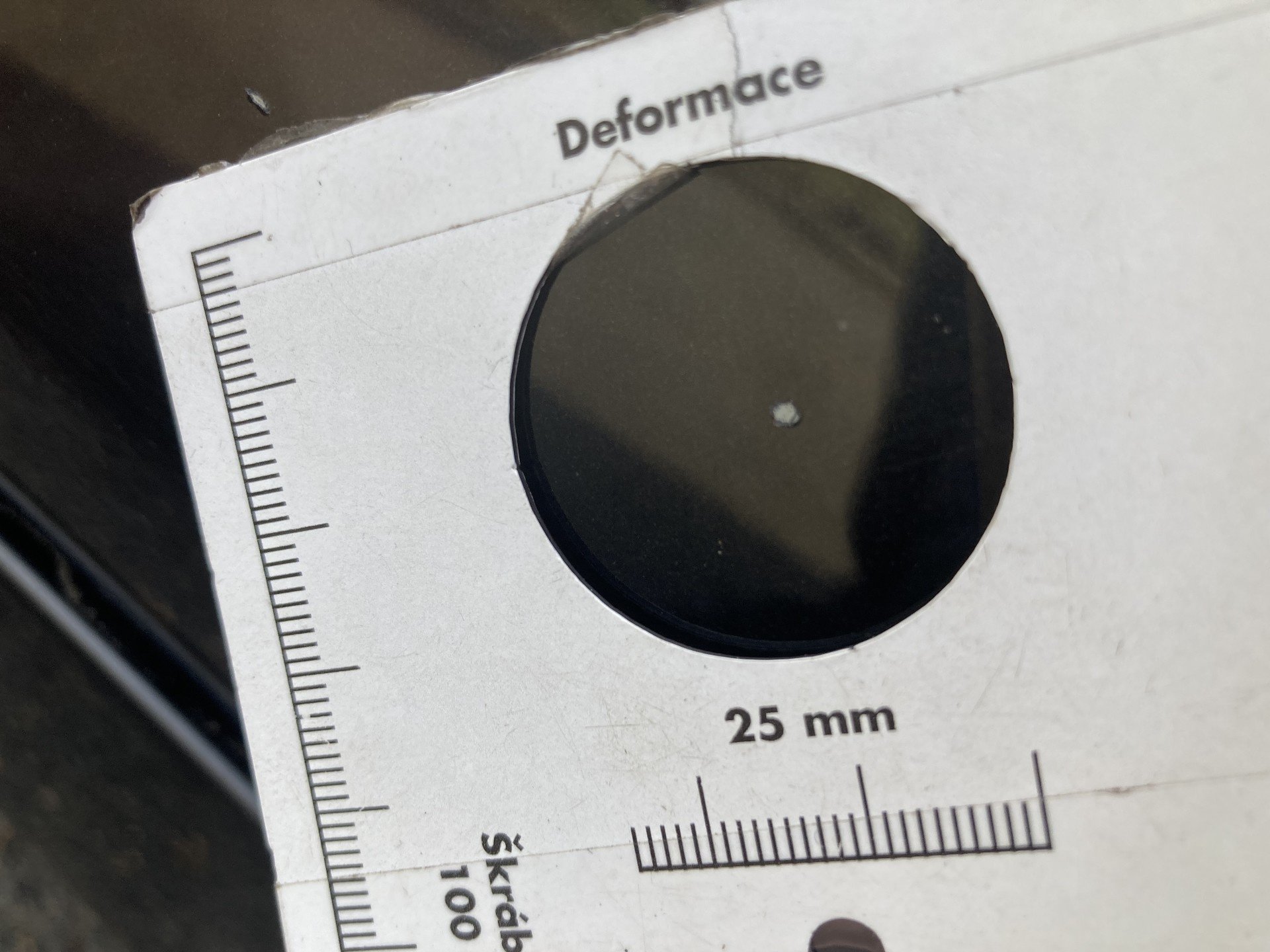 Oděrky a škrábance po obvodu karosérie, přední část karosérie je poškozená od kamínku, odřený přední nárazník, odřené víko motorového prostoru, poškozené čelní sklo, odřená hrana levcýh předních dveří, mírně promáčklé levé zadní dveře - jamka, odřený zadní nárazník, poškozená odrazka zadního nárazníku, mírně promáčklé pravé zadní dveře - jamka, mírně promáčklé pravé přední dveře - jamka, interiér vozidla opotřeben,