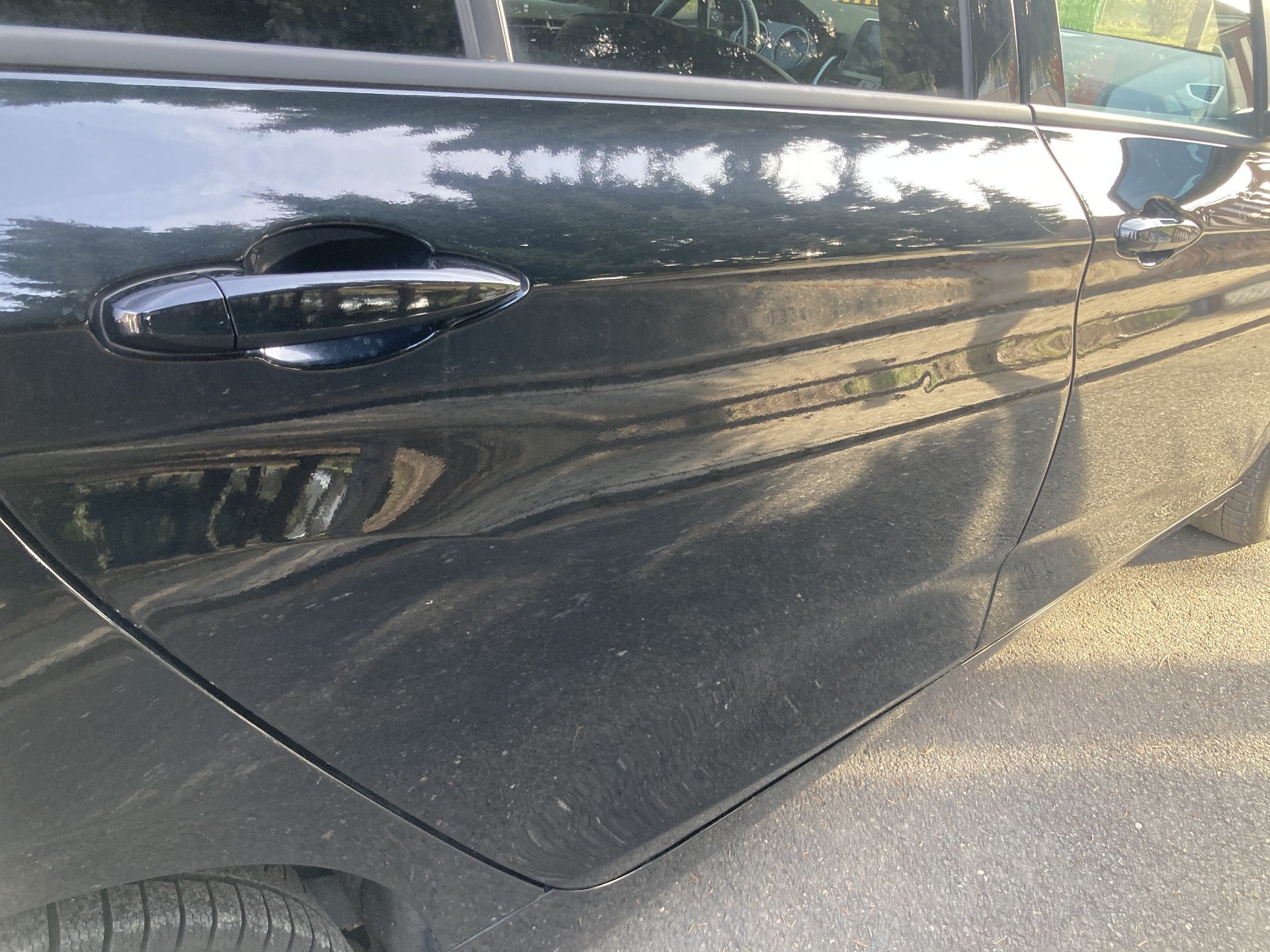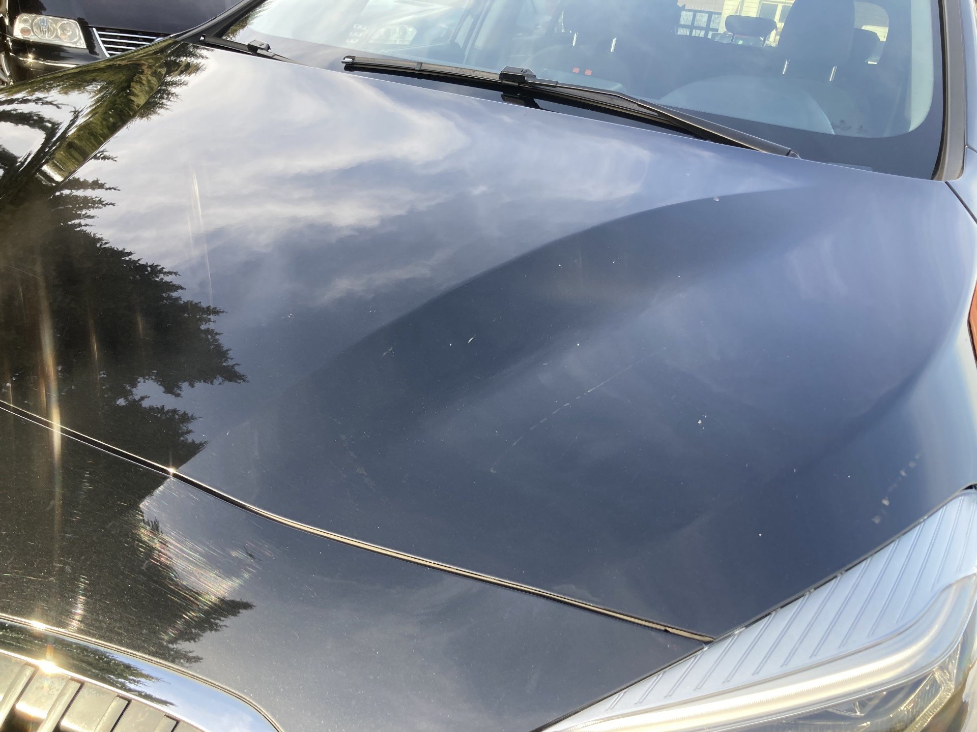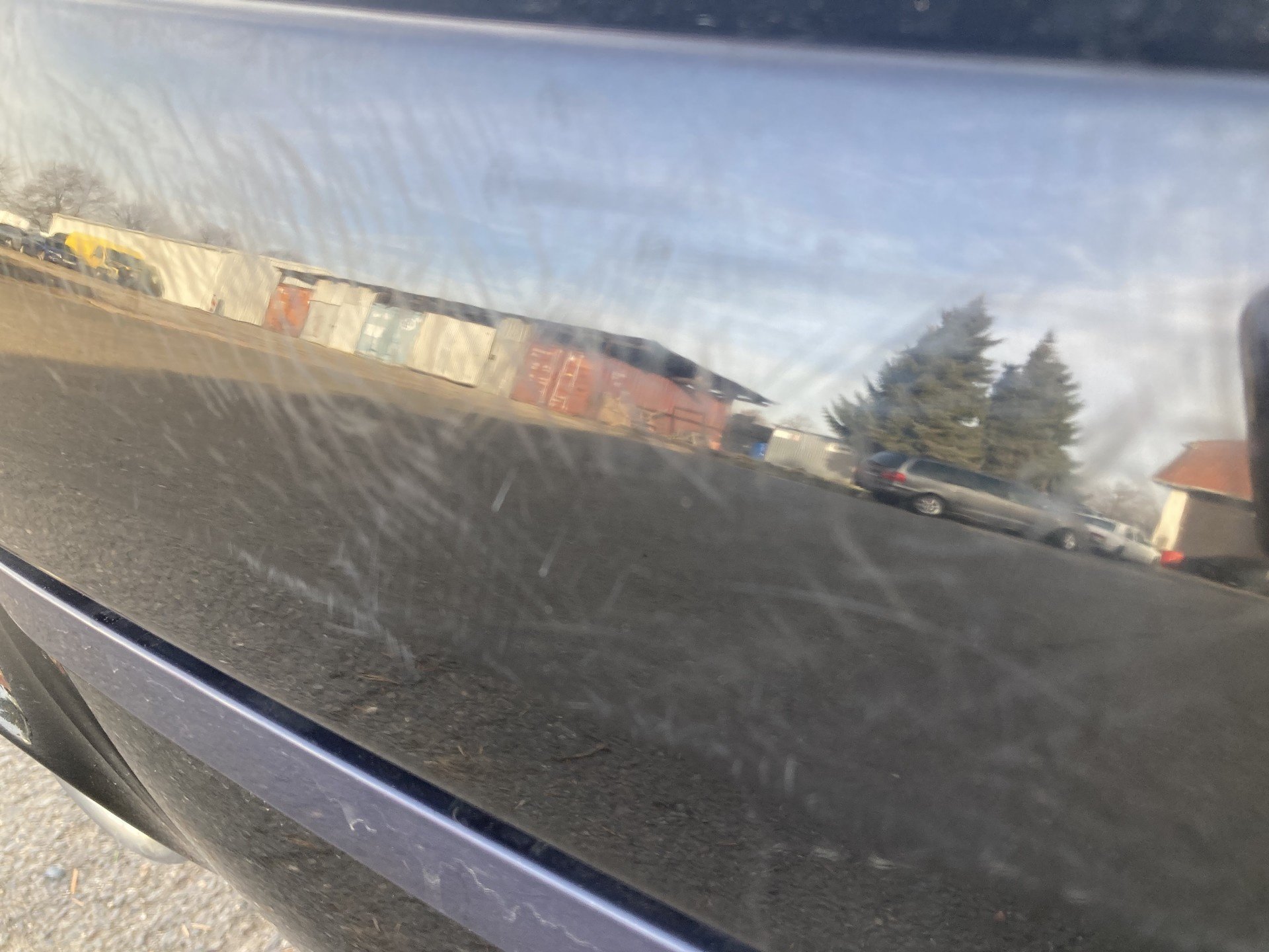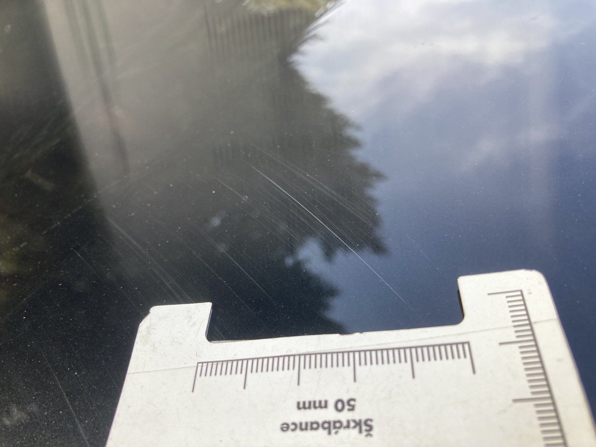 Oděrky a škrábance po obvodu karosérie, přední část karosérie je poškozená od kamínku, odřený přední nárazník, odřené víko motorového prostoru, poškozené čelní sklo, odřená hrana levcýh předních dveří, mírně promáčklé levé zadní dveře - jamka, odřený zadní nárazník, poškozená odrazka zadního nárazníku, mírně promáčklé pravé zadní dveře - jamka, mírně promáčklé pravé přední dveře - jamka, interiér vozidla opotřeben,