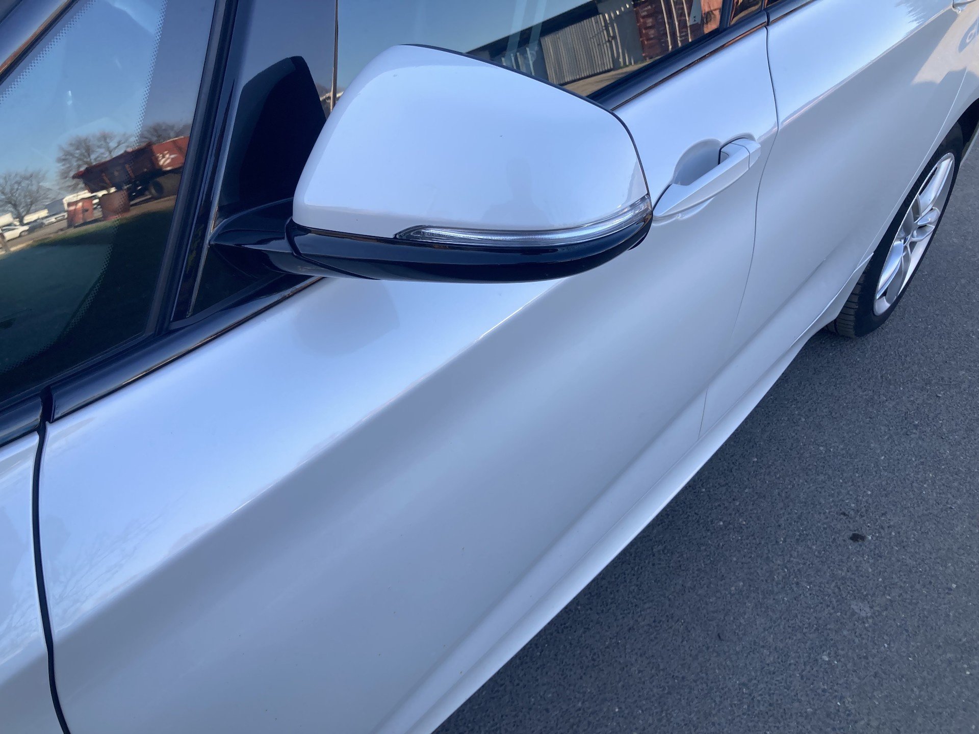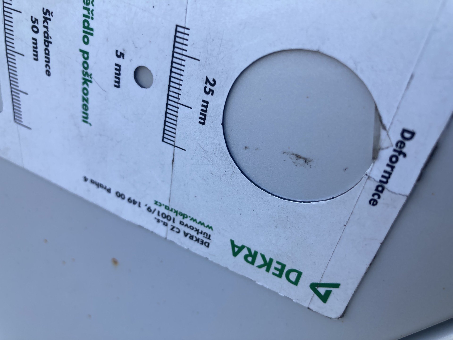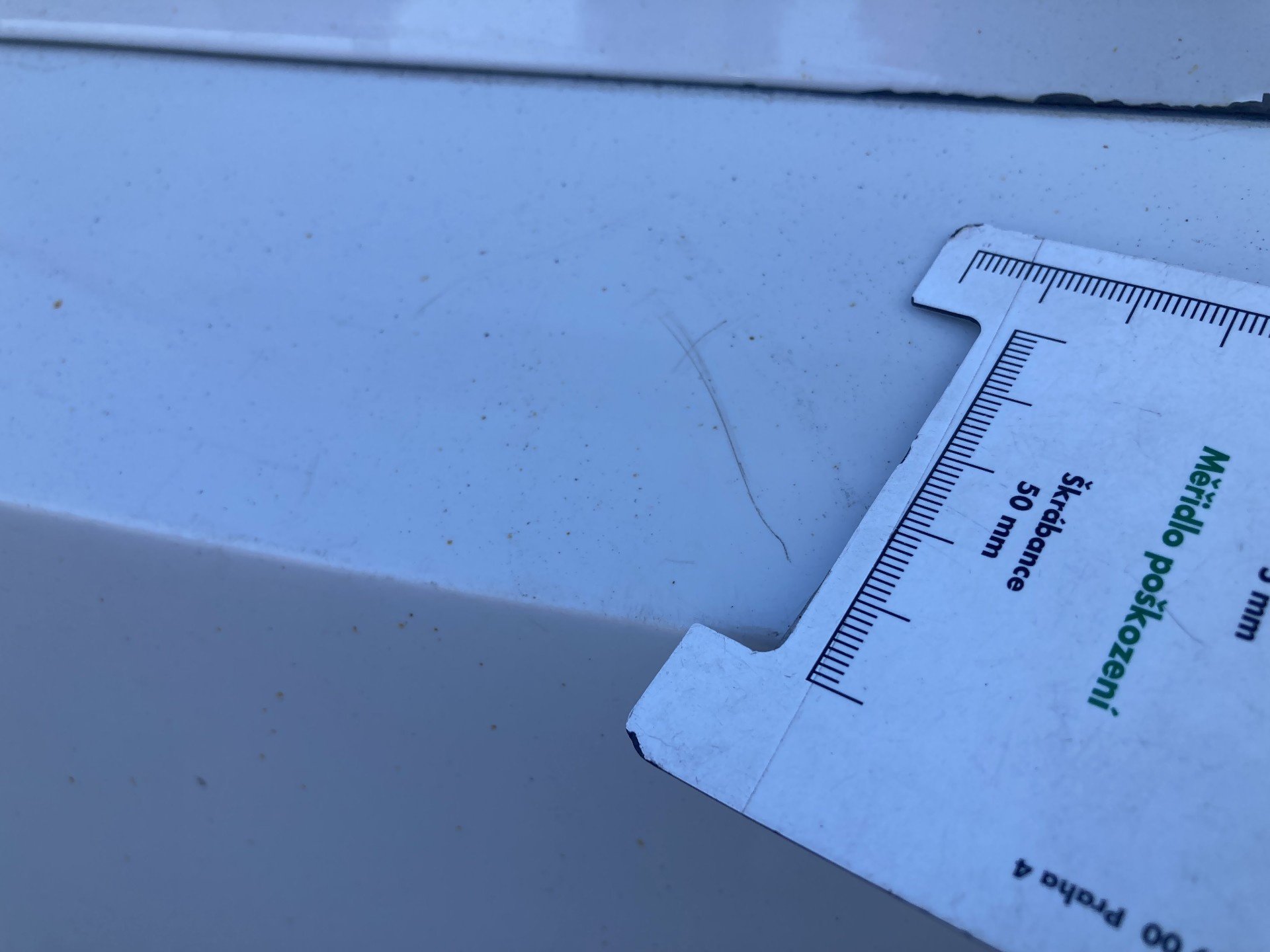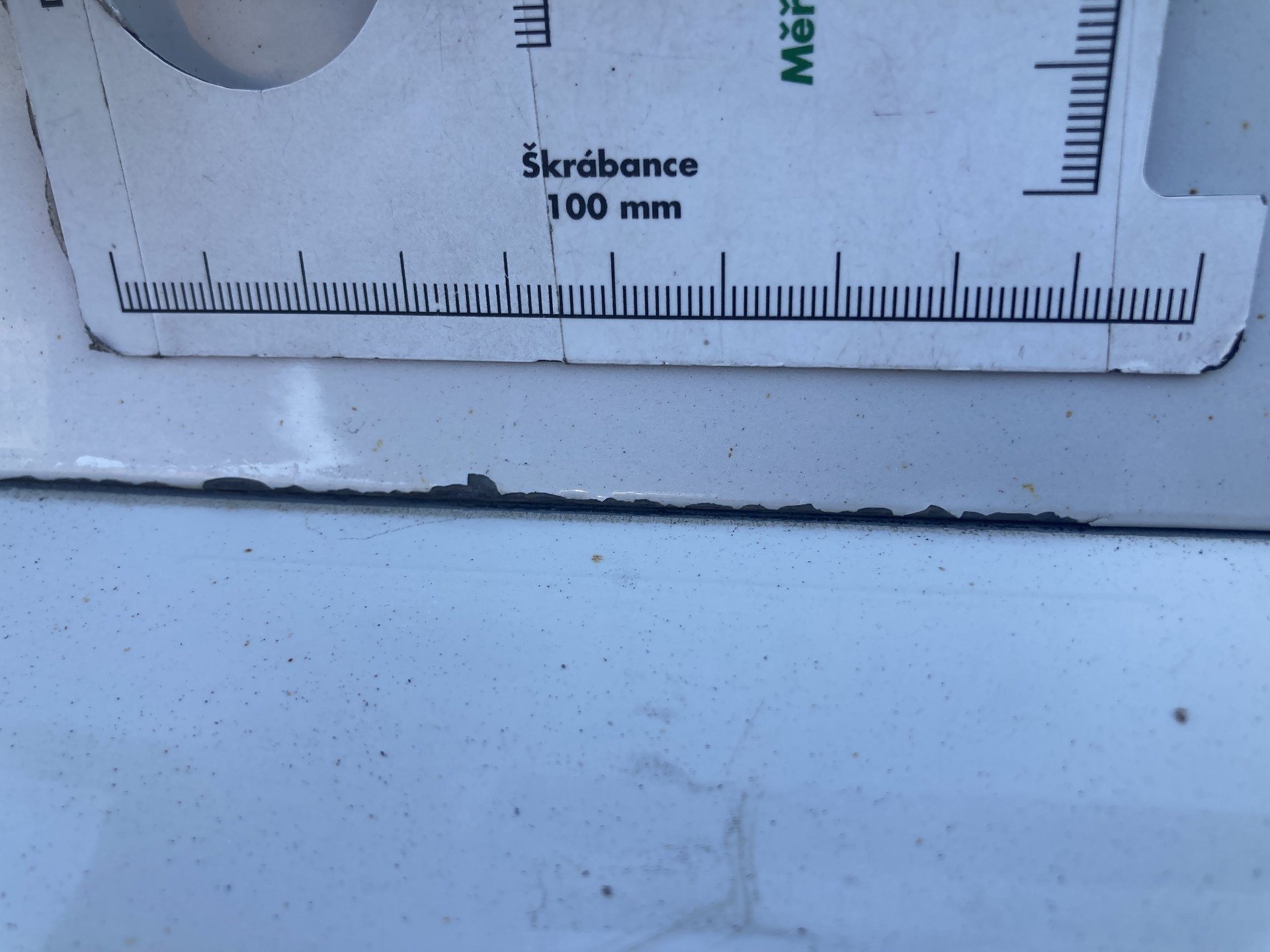 Oděrky a škrábance po obvodu karosérie, přední část karosérie poškozená od kamínku, mírně odřená klika levých předních dveří, mírně odřené levé zadní dveře, odřený zadní nárazník, poškozen lak víka zavzadlového prostoru, interiér vozidla opotřeben, karosérie neses topy po předchozí opravě,