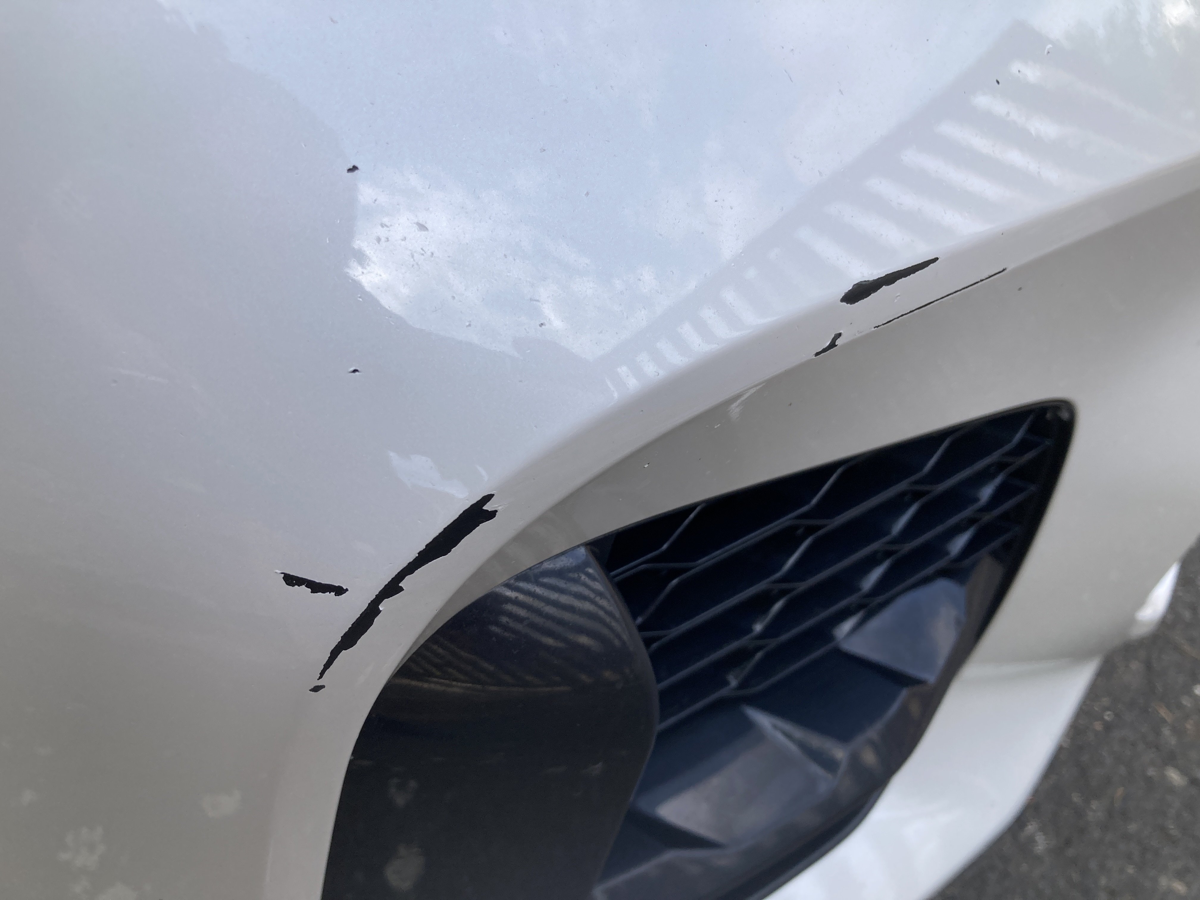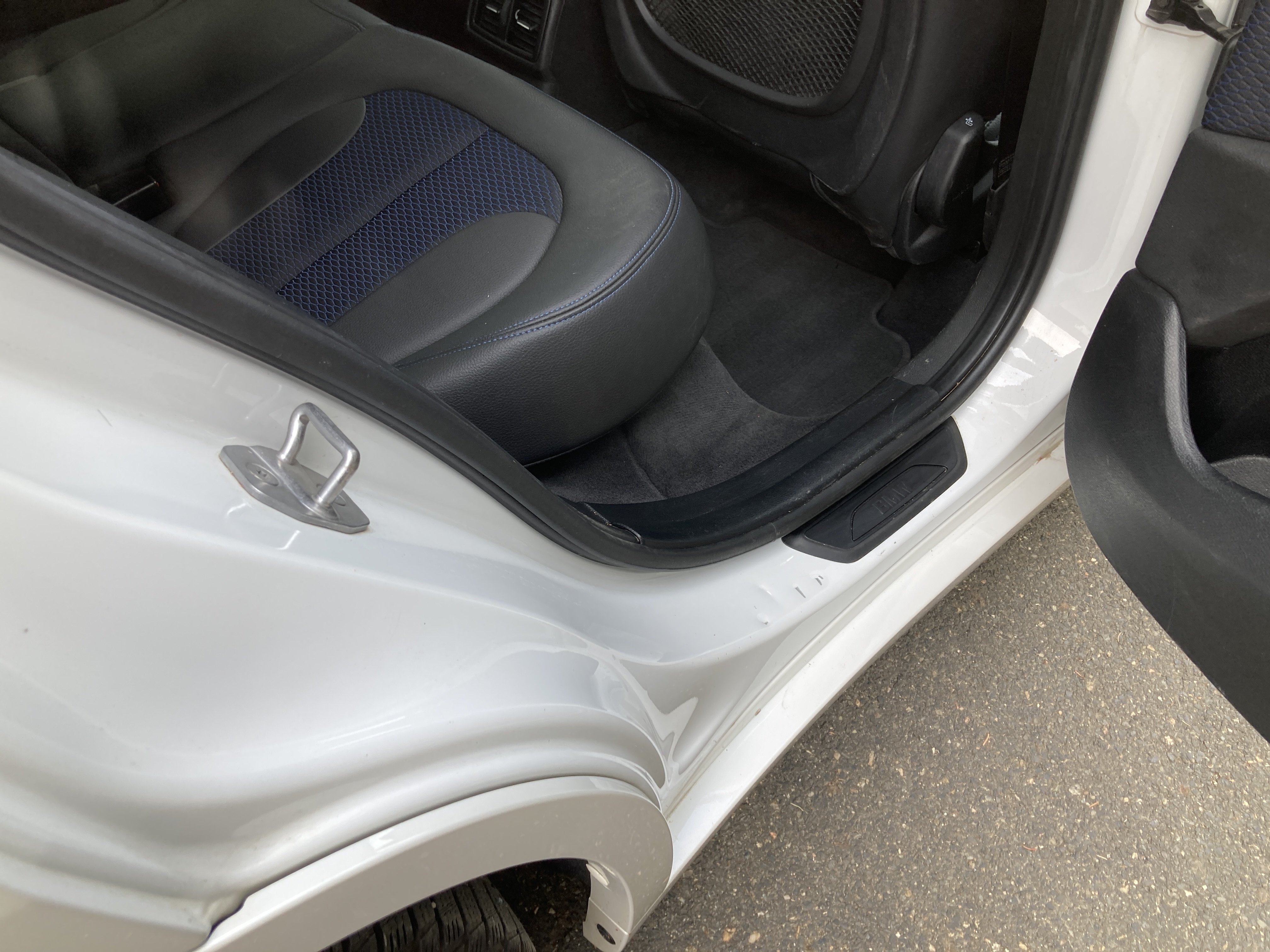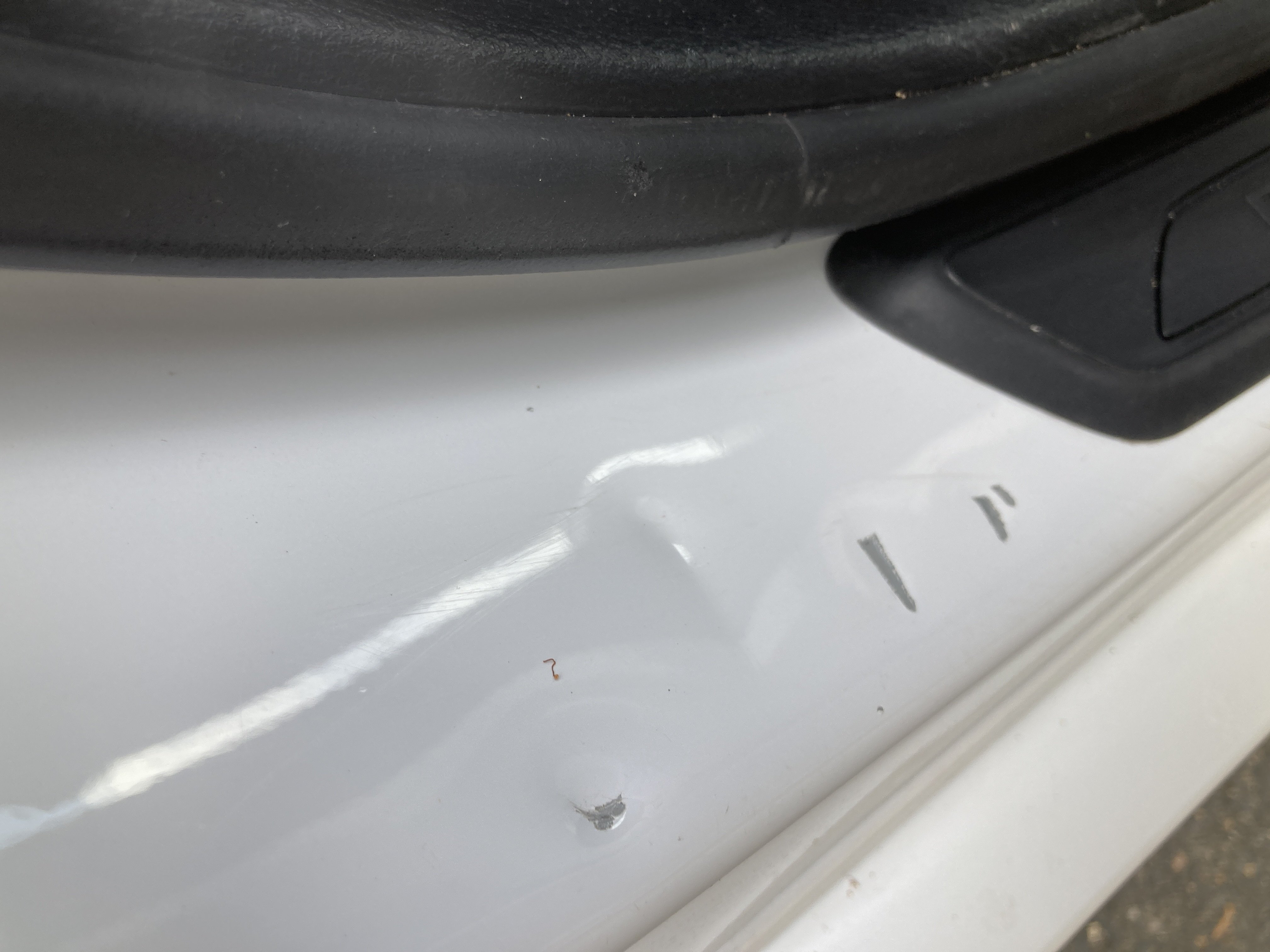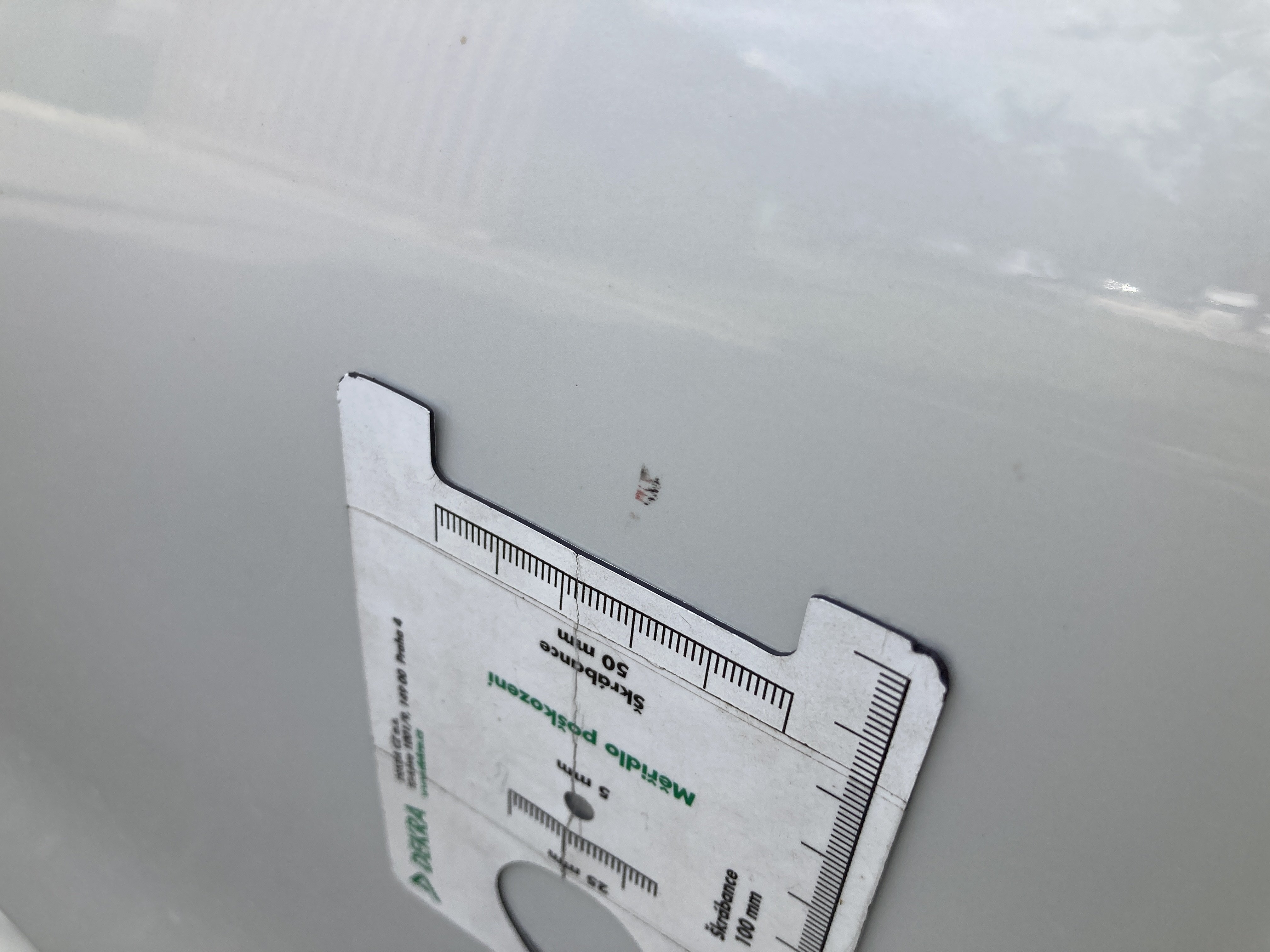 Oděrky a škrábance po obvodu karosérie, přední část karosérie je poškozená od kamínků, odřený přední nárazník, mírně odřené levé přední dveře, odřený zadní nárazník, mírně odřený lem pravého zadního blatníku, odřený a deformovaný pravý práh. interiér vozidla opotřeben,