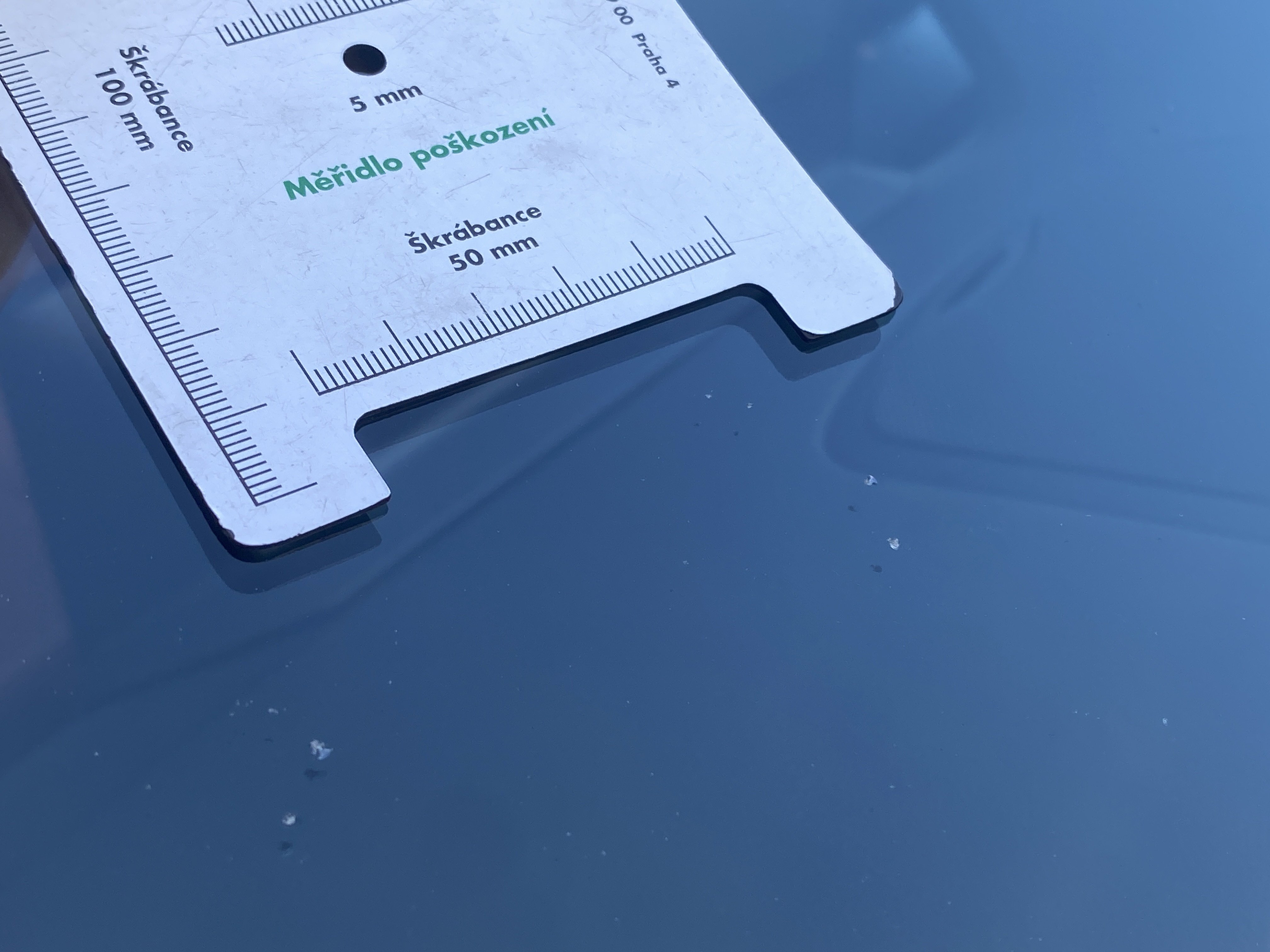 Oděrky a škrábance po obvodu karosérie, přední část karosérie je poškozená od kamínků, mírně odřený pravý přední blatník, odřená hrana levých předních dveří, mírně poškozené čelní sklo, interiér vozidla opotřeben,