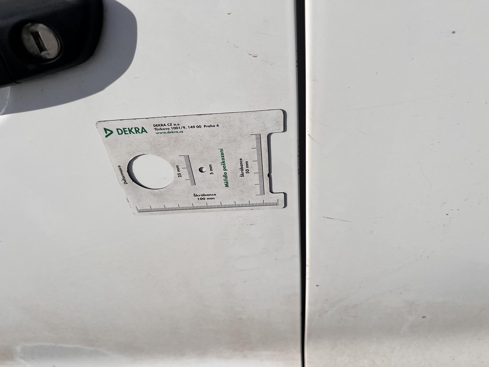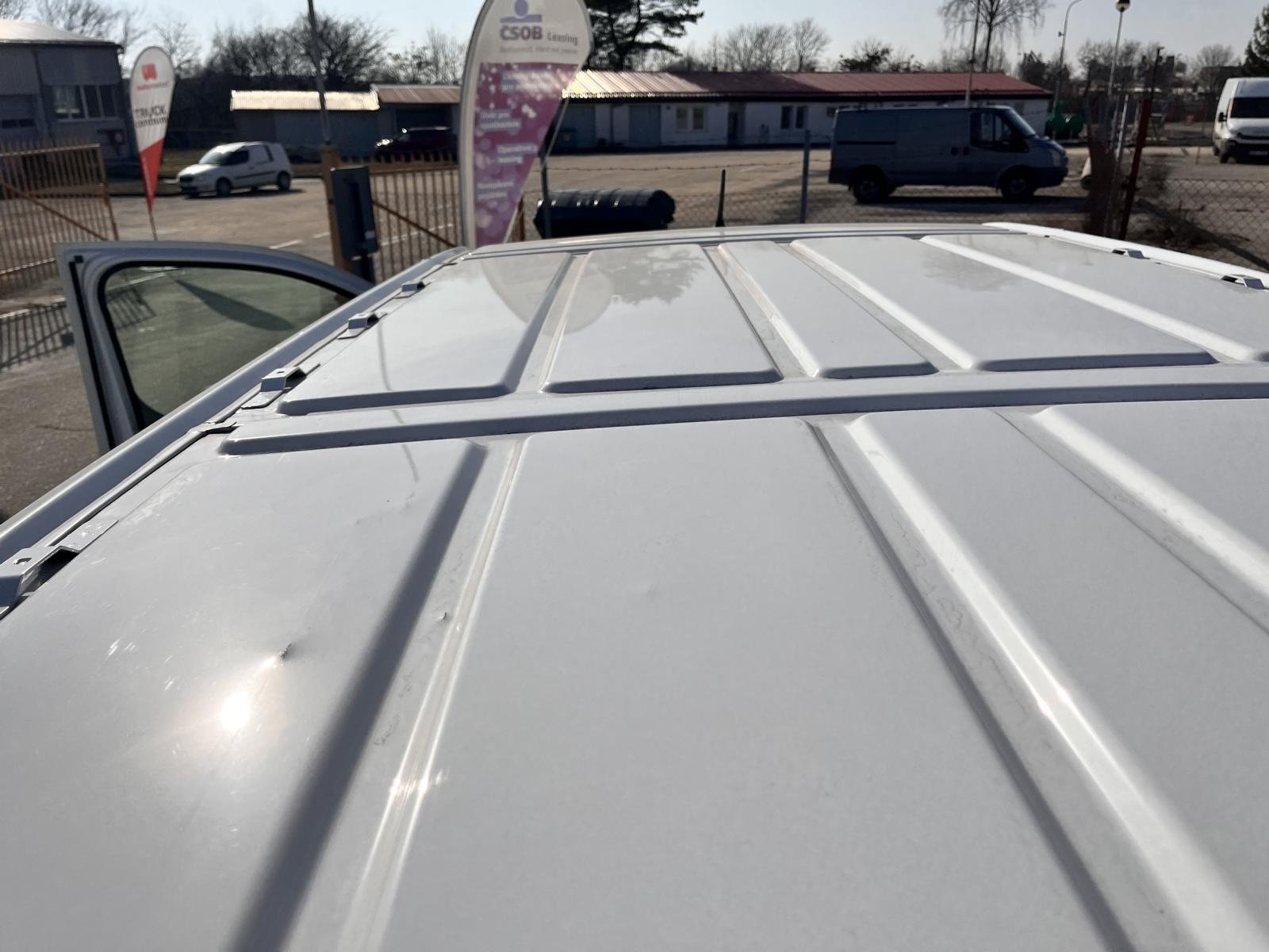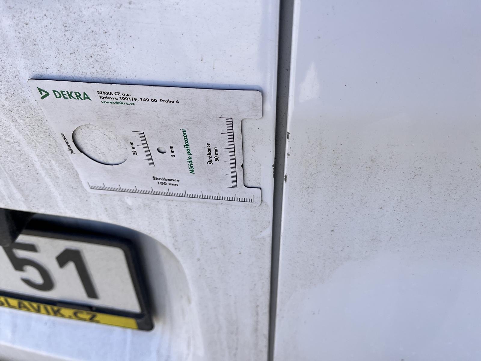 Oděrky a škrábance po obvodu karosérie, přední část karosérie je poškozená od kamínků, deformace střechy, odřené levé zadní dveře nákladového prostoru, odřené pravé zadní dveře nákladového prostoru, odřené levé přední dveře, odřený zadní nárazník, interiér vozidla opotěben, deformace nákladového prostoru,