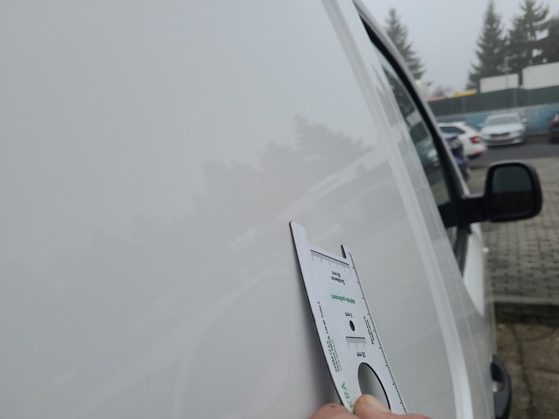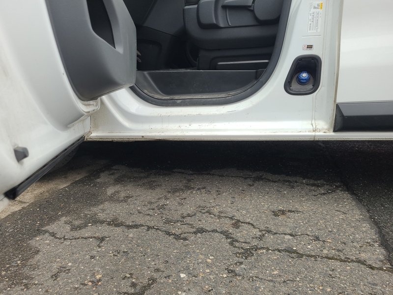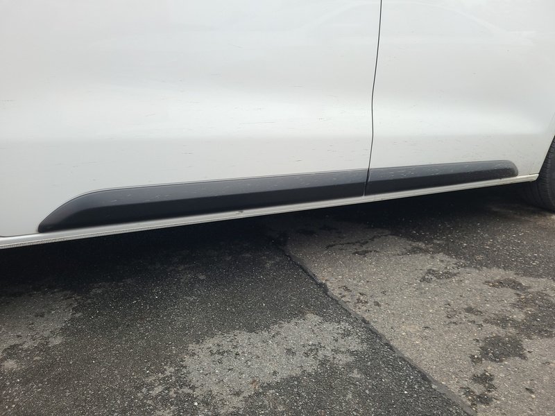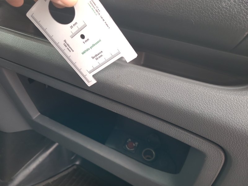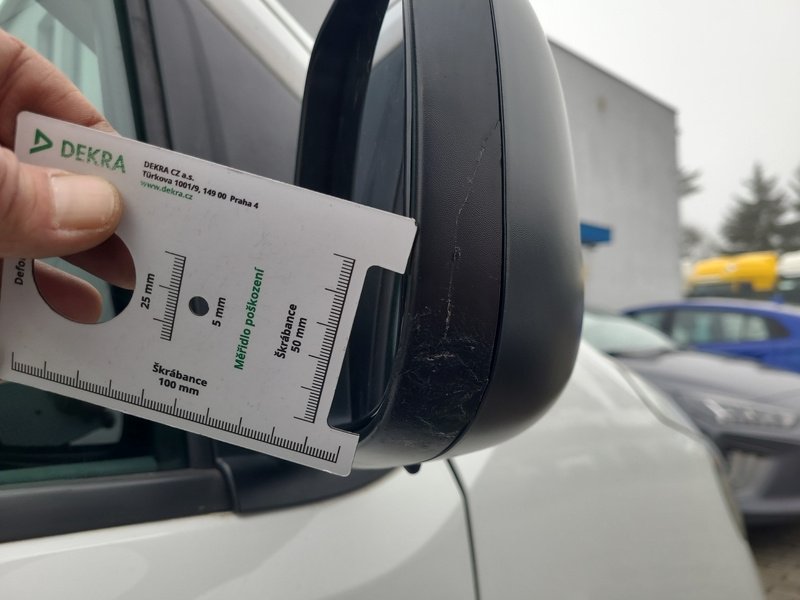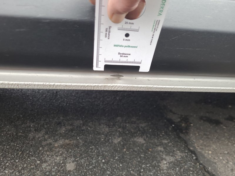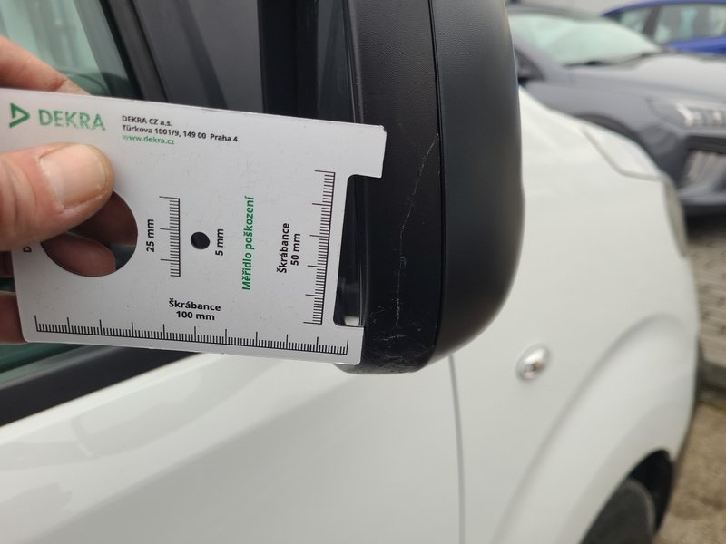Oděrky a škrábance po obvodu karosérie, přední část karosérie je poškozená od kamínků, deformace levého práhu, odřený zadní nárazník, odřená střecha, odřený přední nárazník, odřené pravé přední dveře, odřený kryt levého zpětného zrcátka, odřené levé přední dveře, mírně promáčklá levá zadní bočnice, mírně promáčklý pravý práh - jamka, odřené pravé posuvné dveře, interiér vozidla opotřeben, deformace nákladového prostoru,