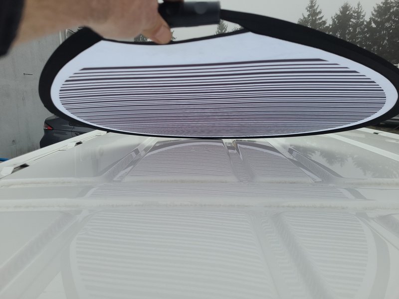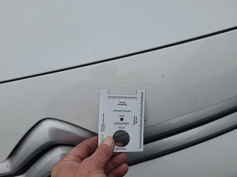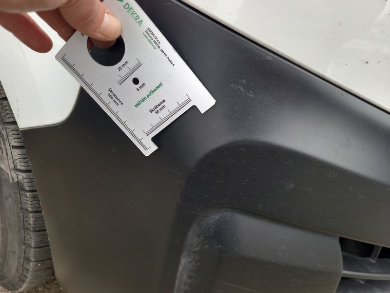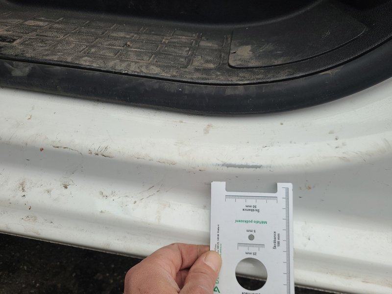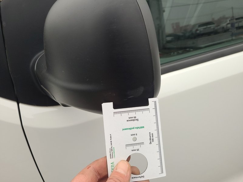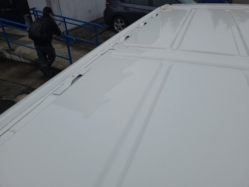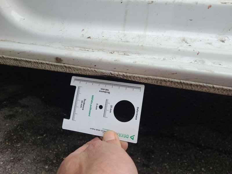 Oděrky a škrábance po obvodu karosérie, přední část karosérie je poškozená od kamínků, deformace levého práhu, odřený zadní nárazník, odřená střecha, odřený přední nárazník, odřené pravé přední dveře, odřený kryt levého zpětného zrcátka, odřené levé přední dveře, mírně promáčklá levá zadní bočnice, mírně promáčklý pravý práh - jamka, odřené pravé posuvné dveře, interiér vozidla opotřeben, deformace nákladového prostoru,