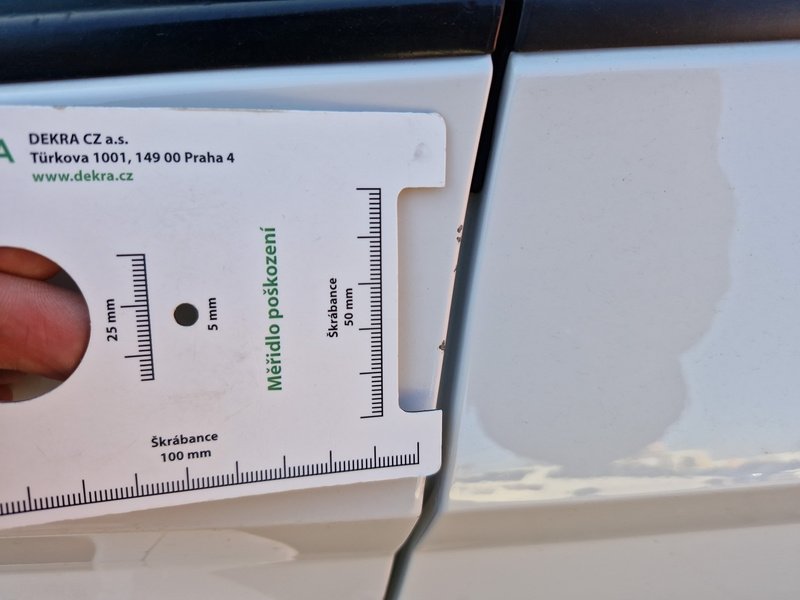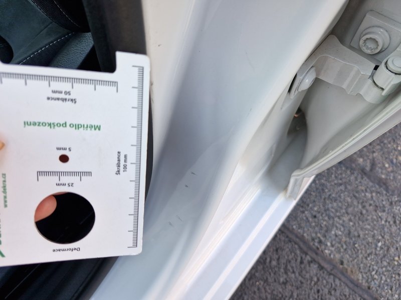 Oděrky a škrábance po obvodu karosérie, přední část karosérie je poškozená od kamínků, odřený přední nárazník, odřené levé přední dveře, mírně promáčklá levá zadní bočnice - jamka, odřený levý B sloupek, odřený zadní nárazník, deformace pravé zadní bočnice, mírně promáčklé pravé zadní dveře - jamka, interiér vozidla opotřeben,