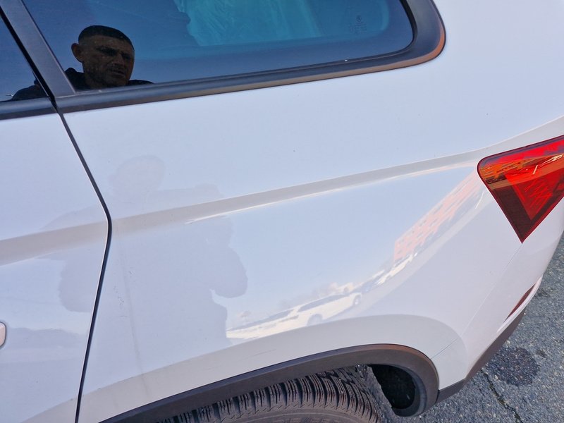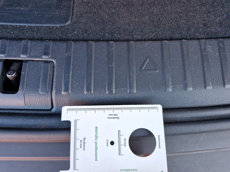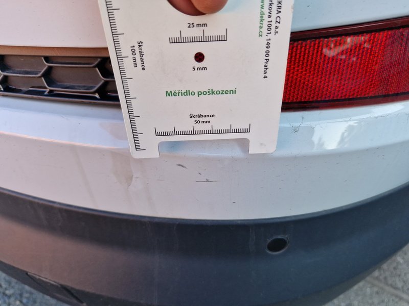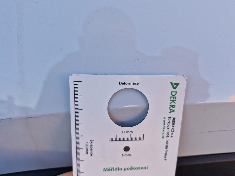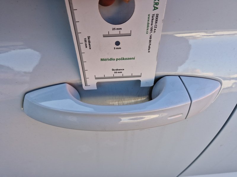Oděrky a škrábance po obvodu karosérie, přední část karosérie je poškozená od kamínků, odřený spojler přednýho nárazníku, mírně odřené levé přední dveře - jamka, mírně promáčklé levé zadní dveře - jamka, mírně promáčklá levá zadní bočnice - jamka, odřený zadní nárazník, odřený spojler zadního nárazníku, mírně promáčklé pravé přední dveře - jamka, interiér vozidla opotřeben,