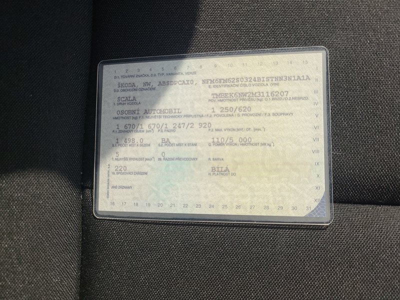 | Značka a typ | Škoda Scala 1.5 TSi Ambition 6MT, Benzín 110 kW |