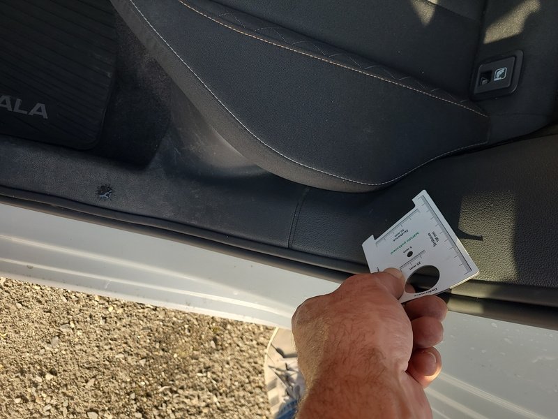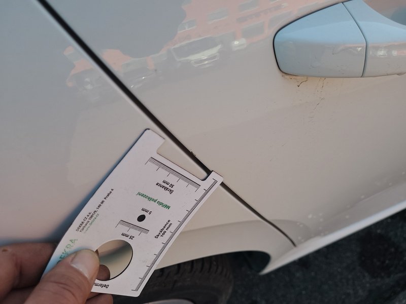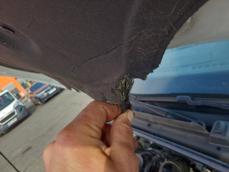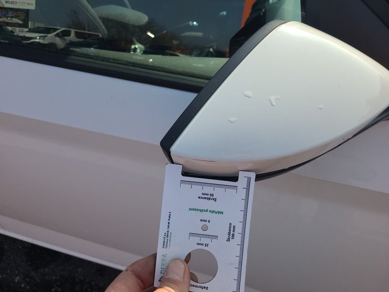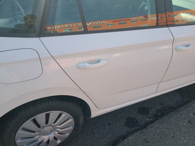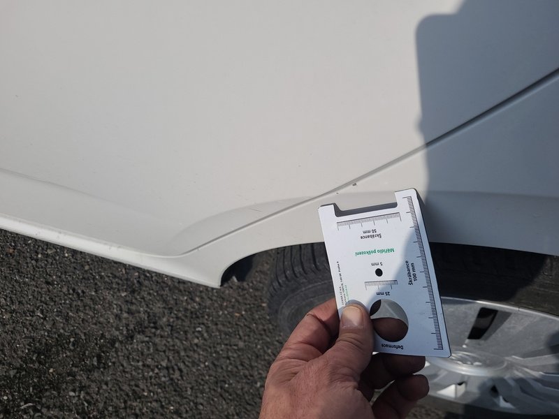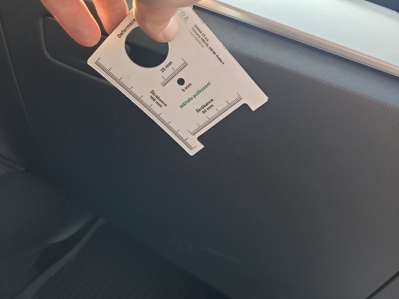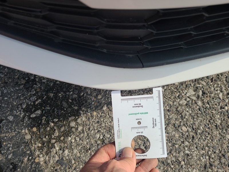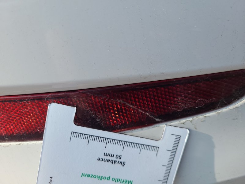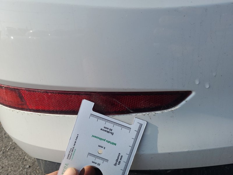 Oděrky a škrábance po obvodu karosérie, přední část karosérie je poškozená od kamínků, odřený přední nárazník, odřená levá zadní bočnice, poškozená levá zadní odrazka, odřené pravé zadní dveře, odřený kryt pravého zpětného zrcátka, poškozená hluková izolace víka motorového prostoru, poškozené SOS volání, interiér vozidla opotřeben,