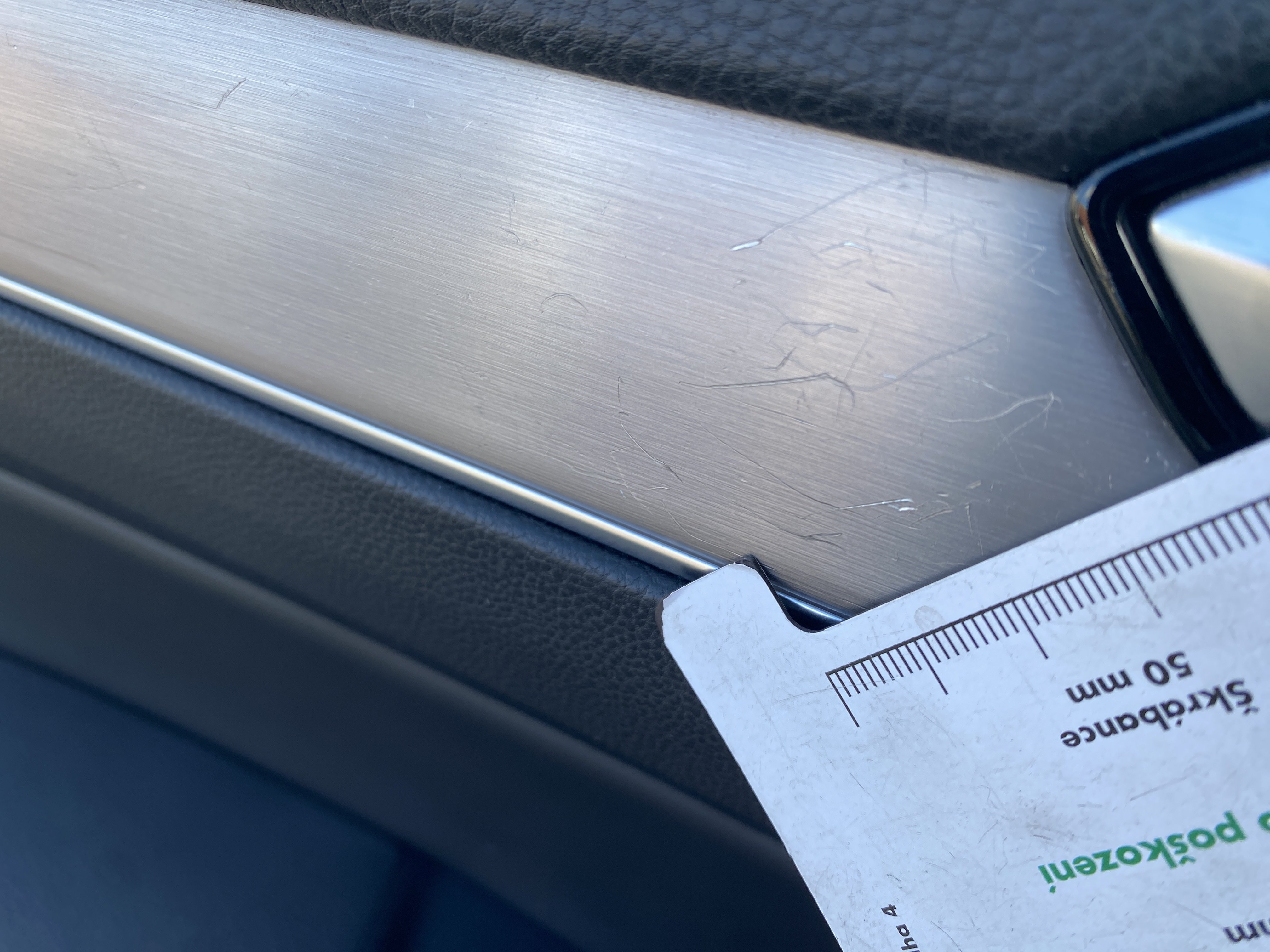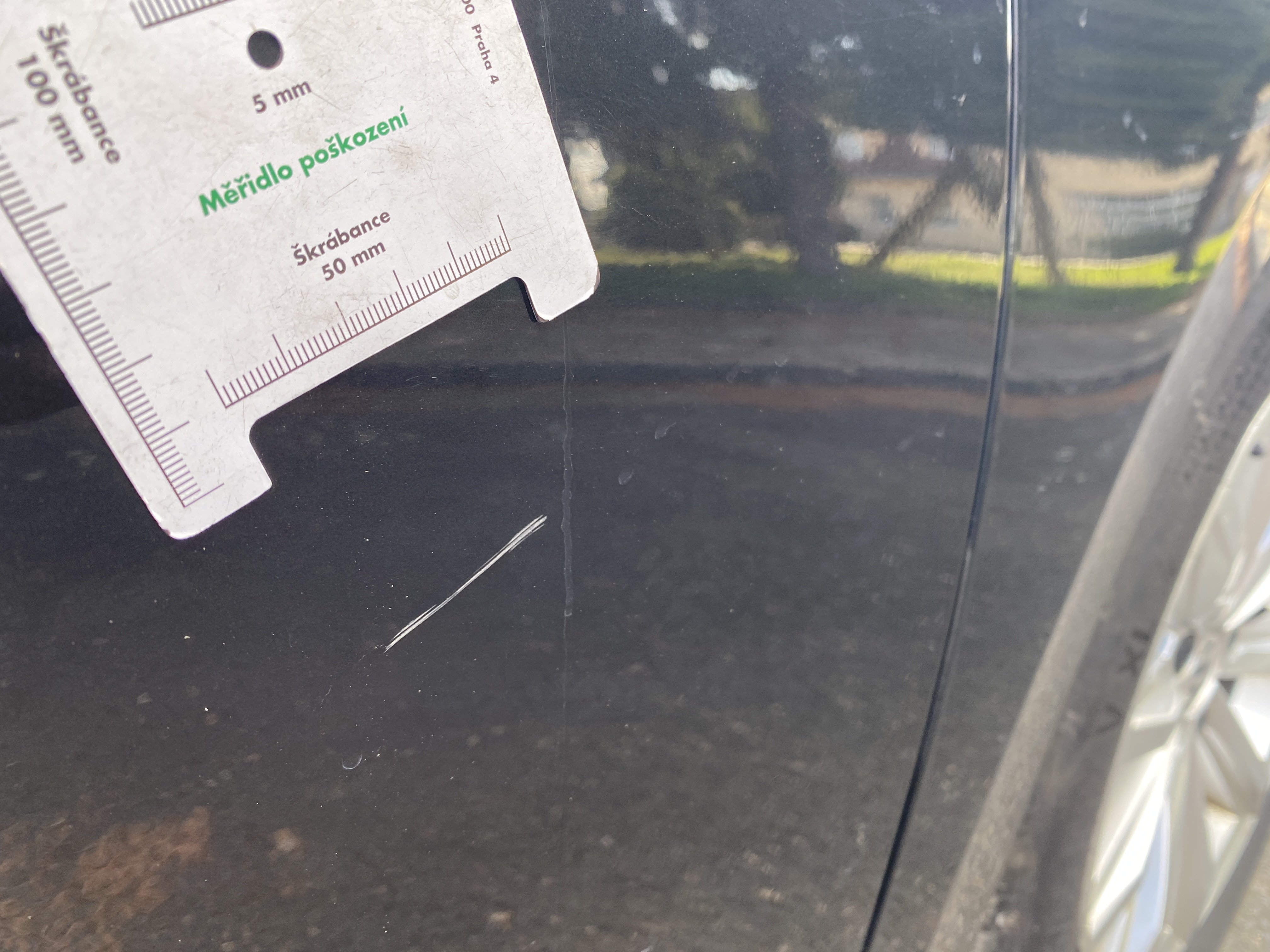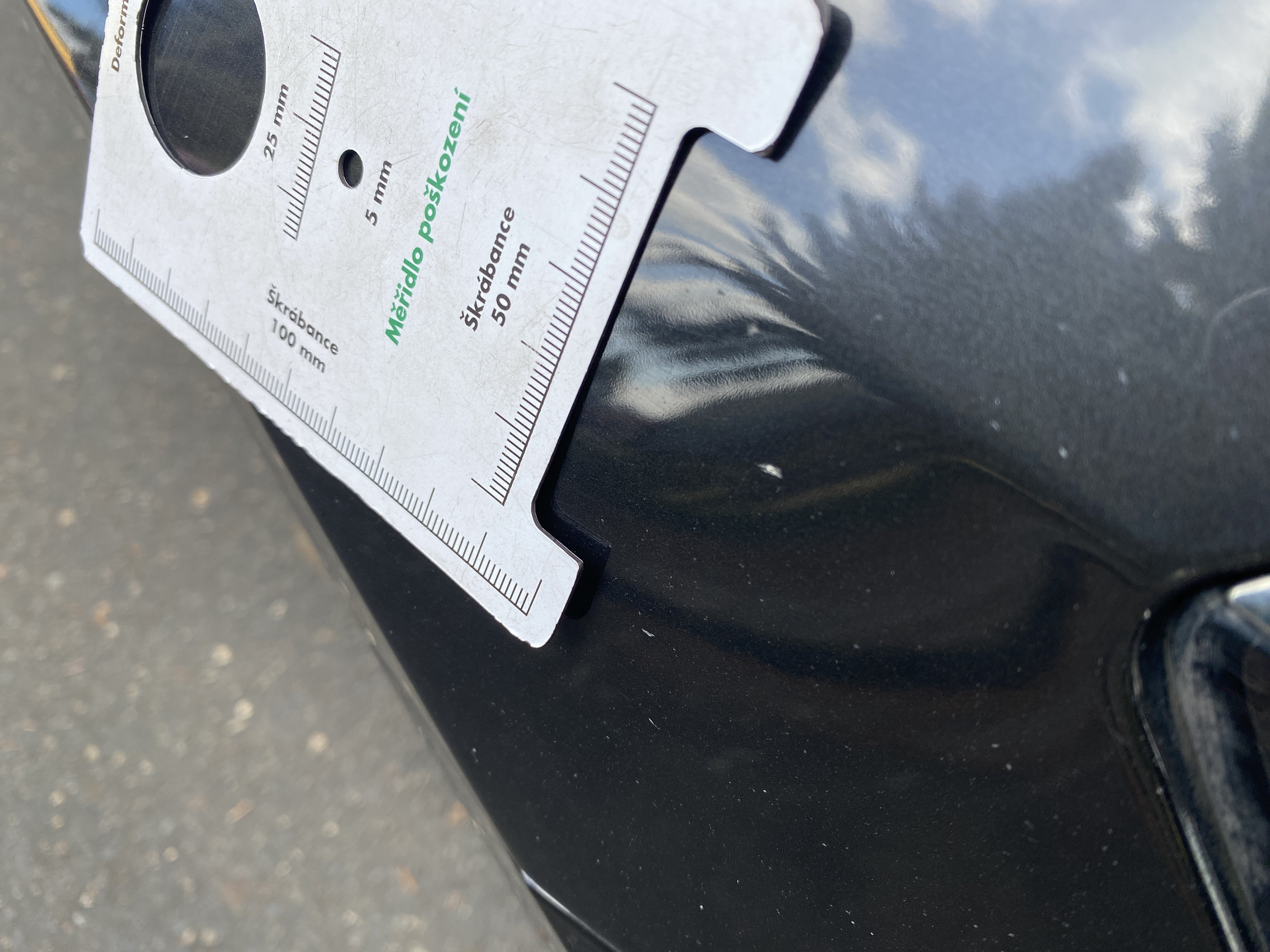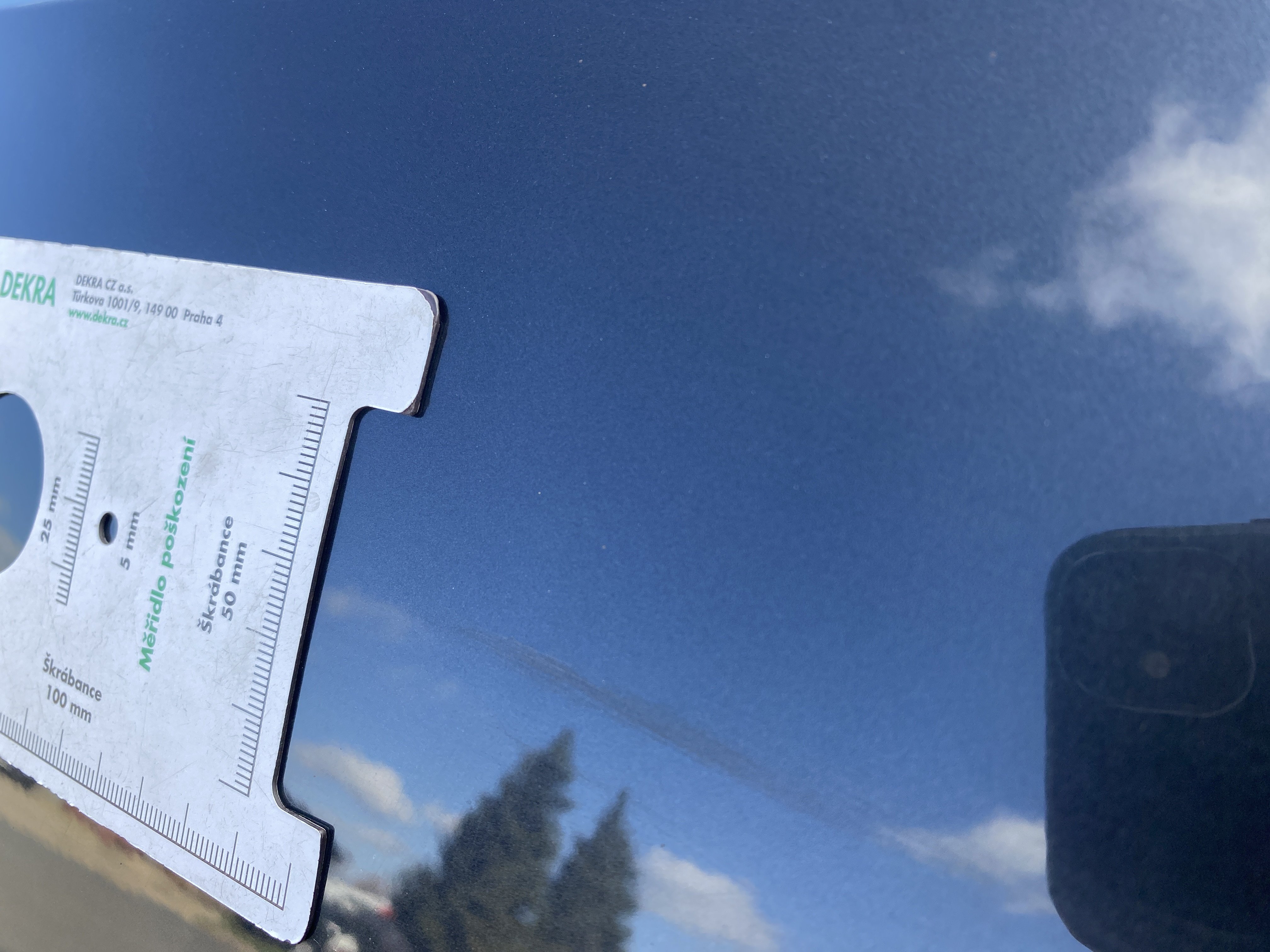 Oděrky a škrábance po obvodu karosérie, přední část karosérie je poškozená od kamínků, odřený přední nárazník, odřené a mírně promáčklé víko motorového porstoru - jamka, mírně odřený lem levého předního blatníku, promáčklý levý rám střechy - jamka, odřený zadní nárazník, mírně odřené víko zavzadlového porstoru, promáčklý spojler víka zavazadlového prostoru - jamka, odřený pravý zadní blatník, odřený pravý zadní blatník, odřené pravé zadní dveře, mírně promáčklé pravé přední dveře - jamka, odřené pravé přední dveře, interiér vozidla poškozen,
