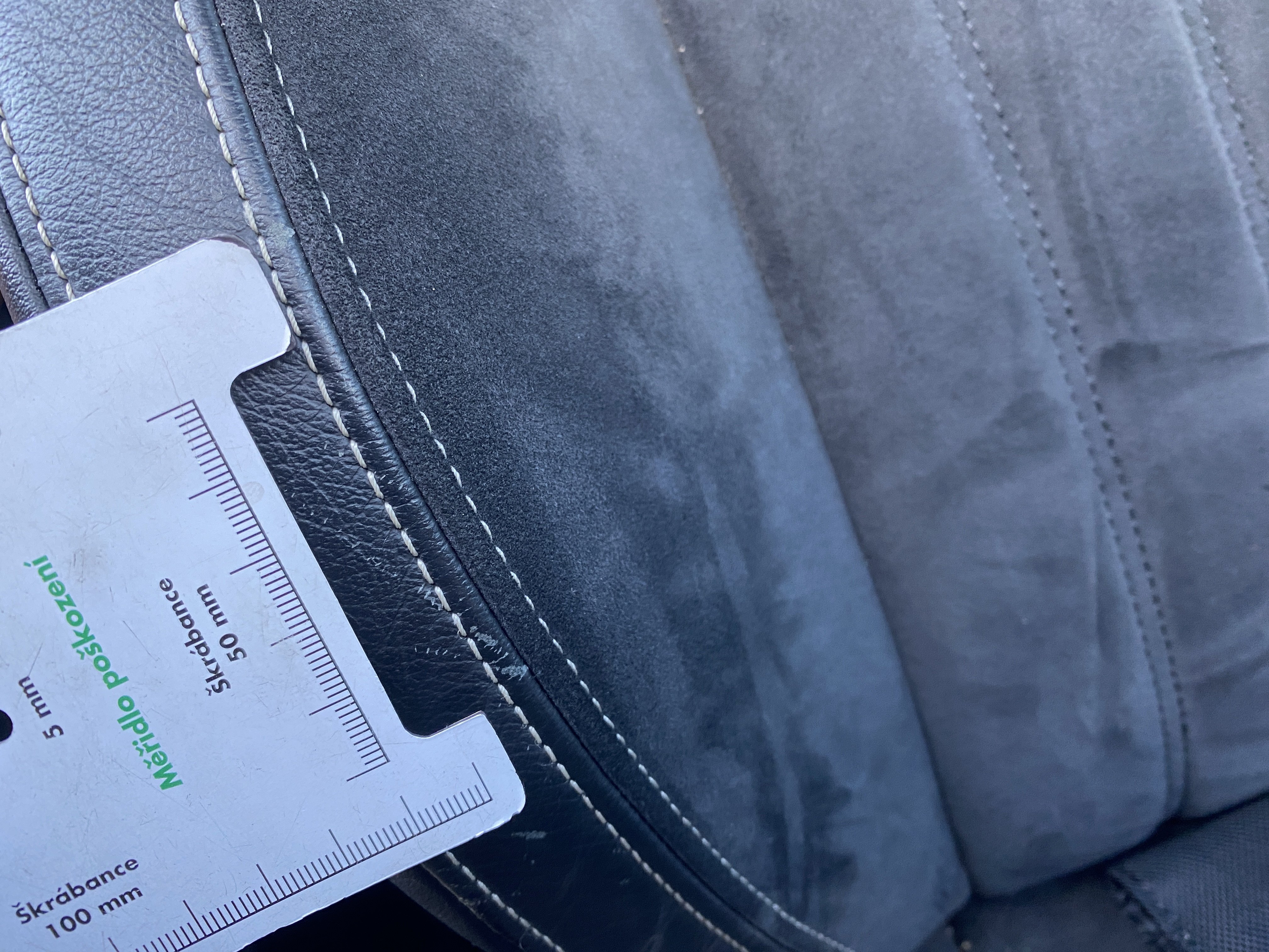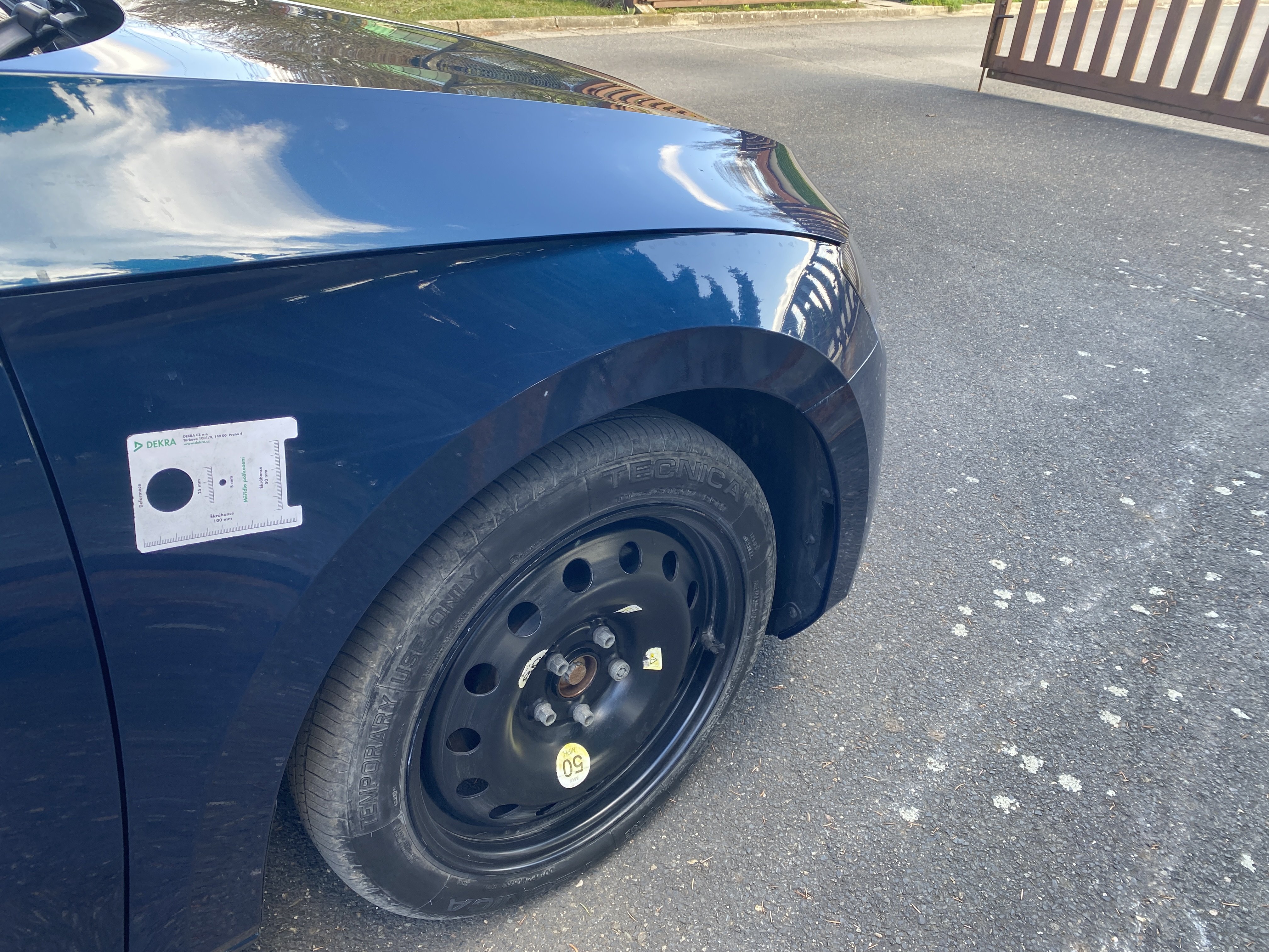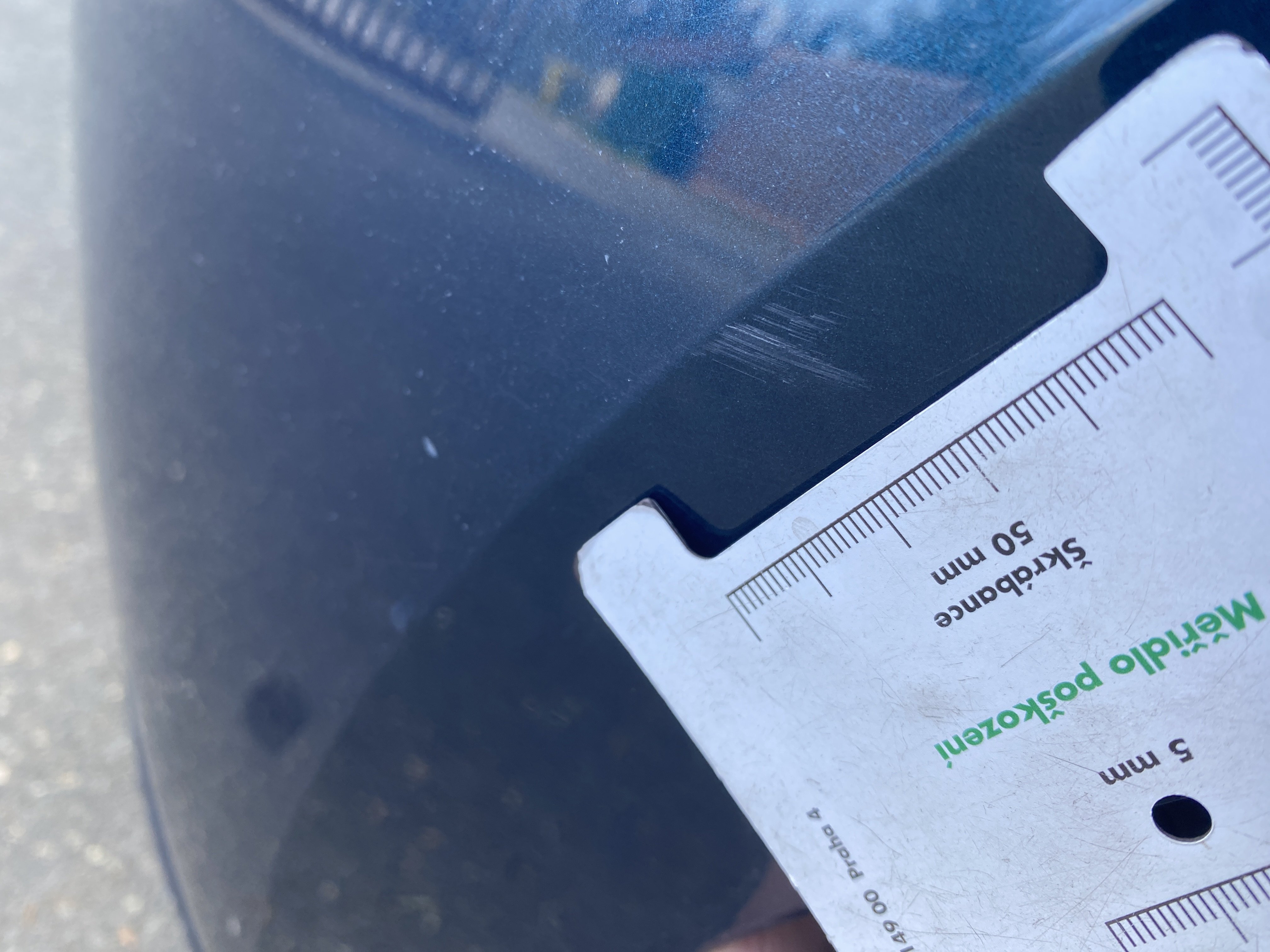 Oděrky a škrábance po obvodu karosérie, přední část karosérie je poškozená od kamínků, poškozená pravá přední pneumatika, mírně odřený pravý přední blatník, odřený přední nárazník, mírně odřené víko motorového prostoru, mírně promáčklý levý přední blatník - jamka, poškozené čelní sklo, mírně odřený levý zadní blatník, odřený levý rám střechy, odřený zadní nárazník, odřený pravý zadní blatník, odřené pravé zadní dveře, odřené pravé přední dveře, odřený kryt pravého zpětného zrcátka, svítí kontrolka travel assist, interiér vozidla opotřeben,