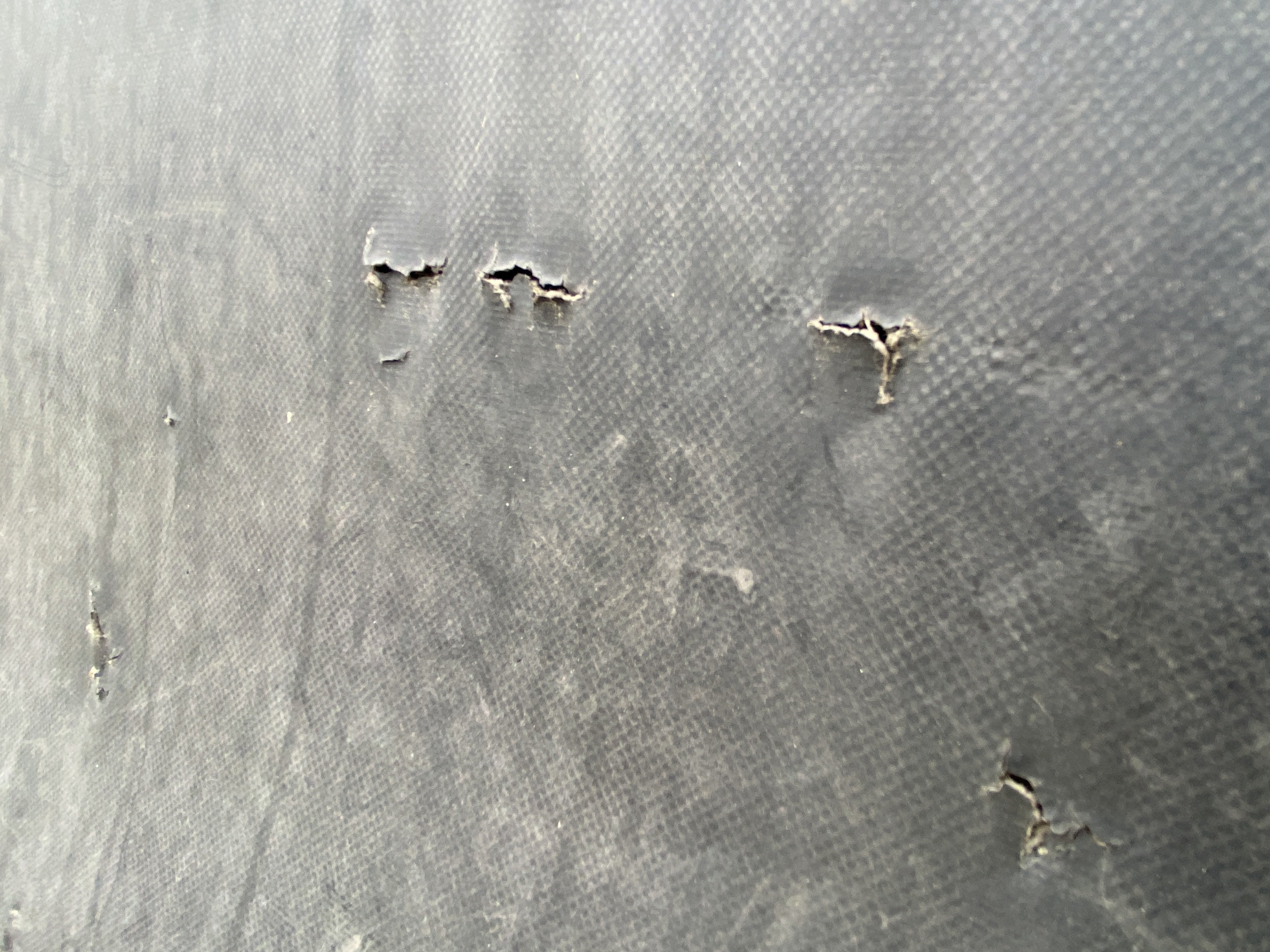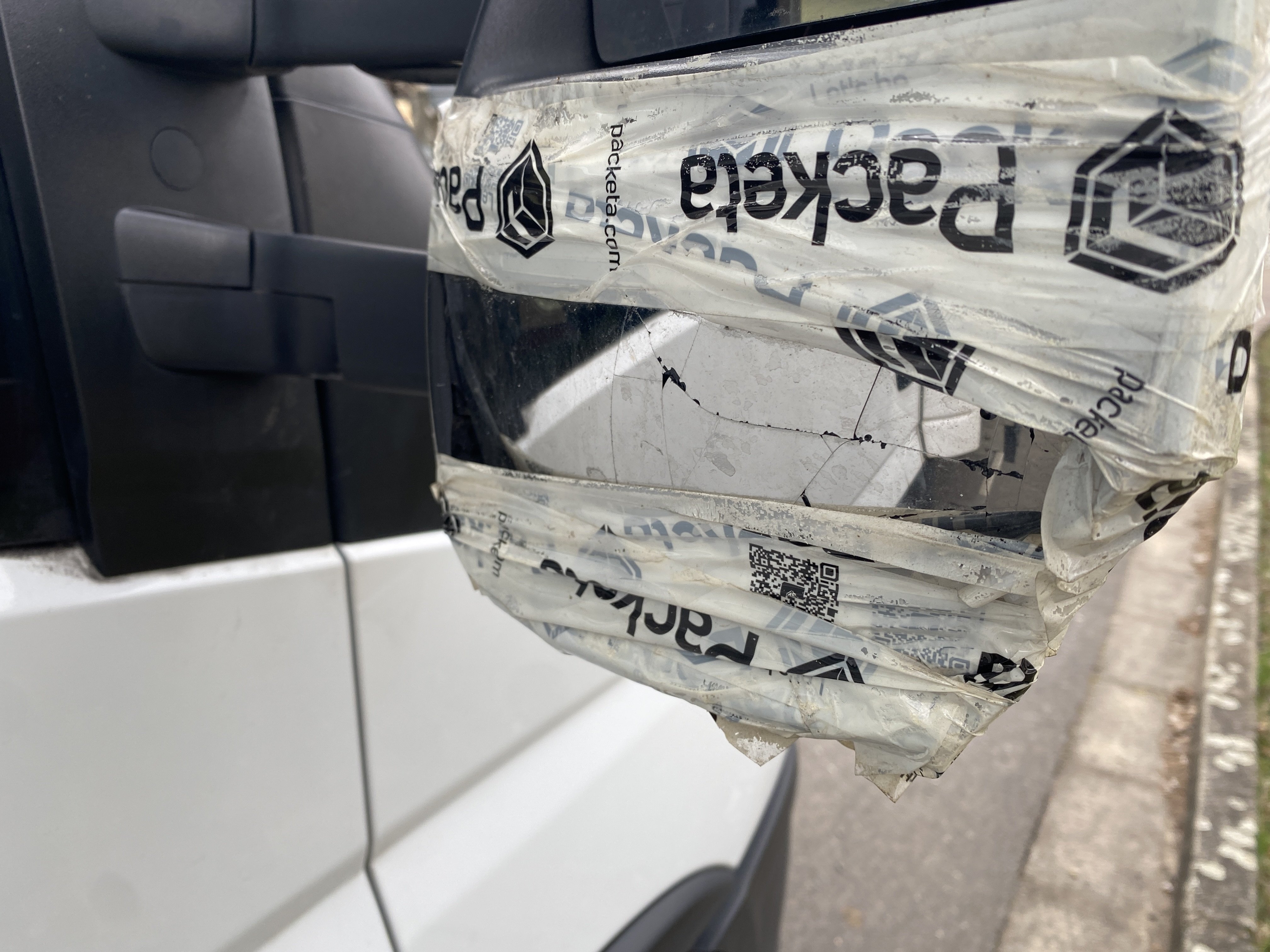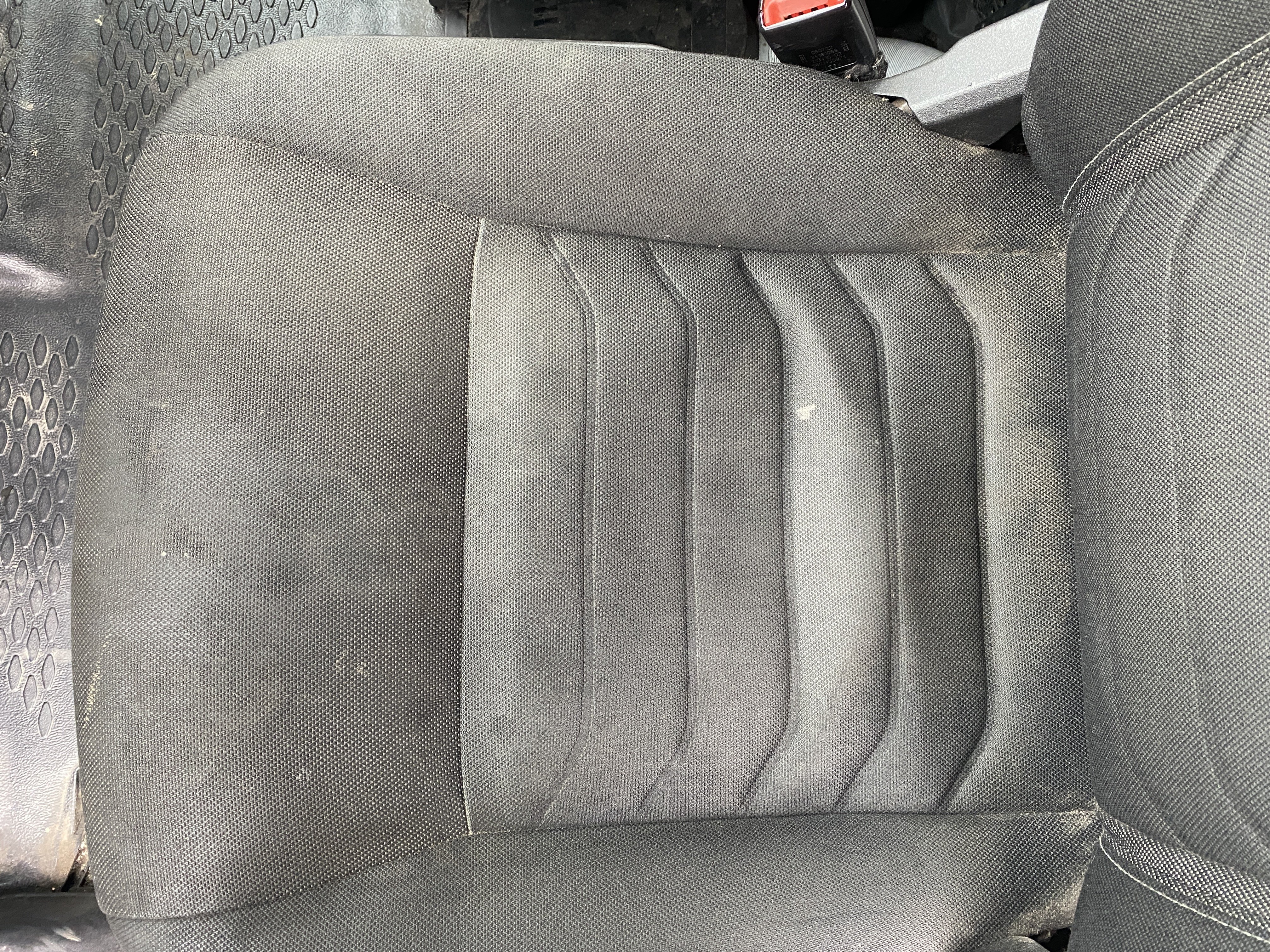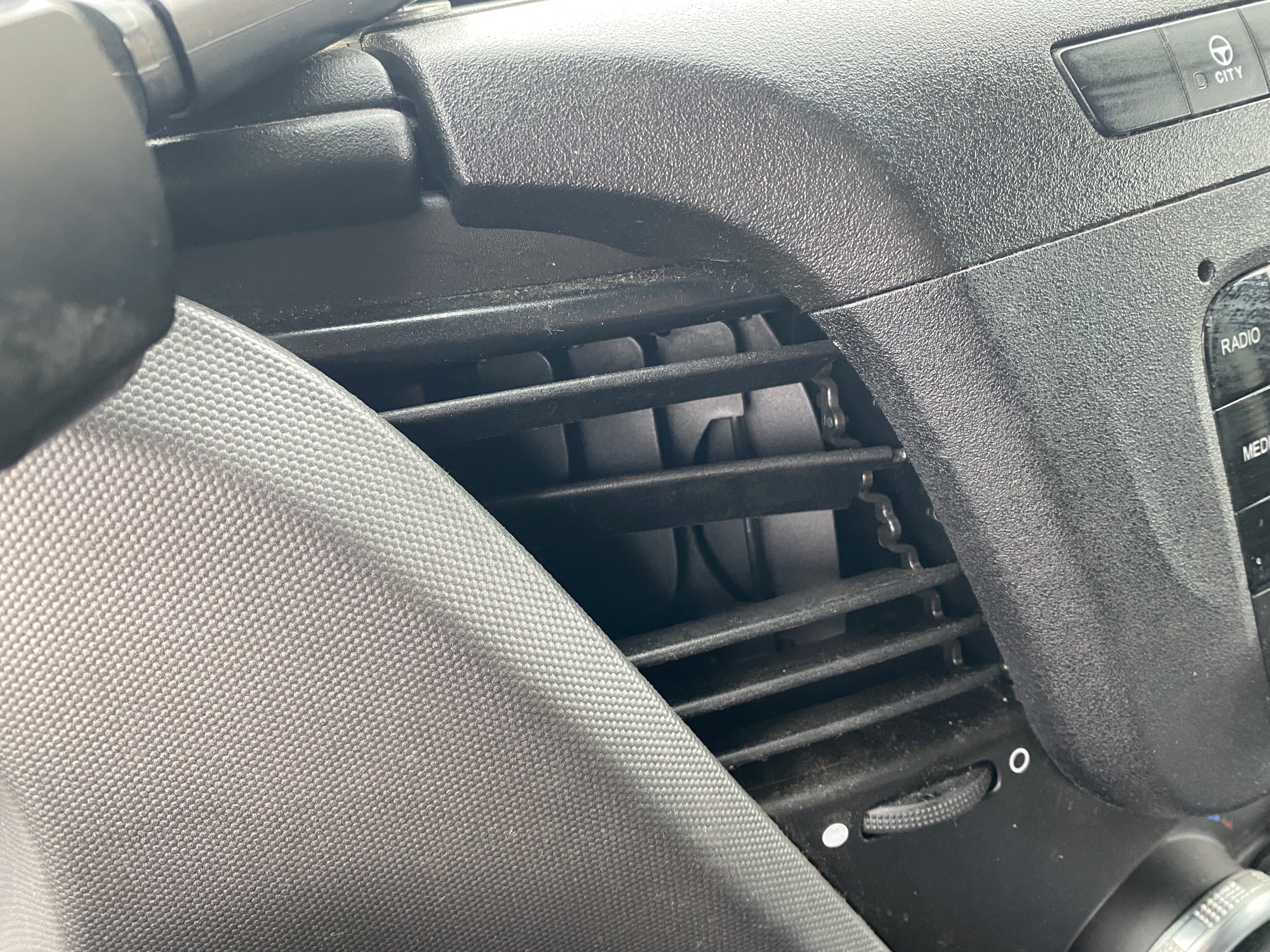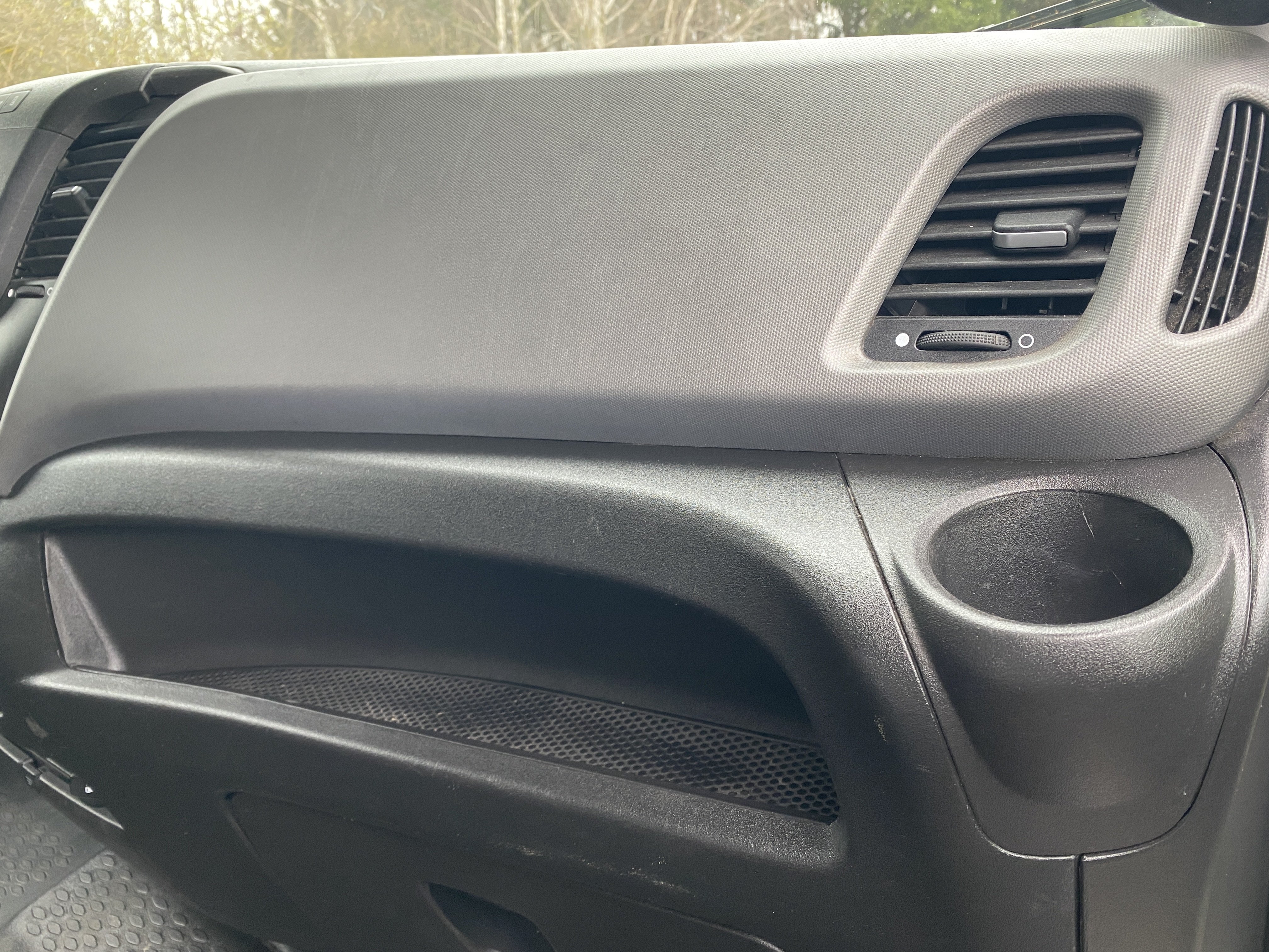 Oděrky a škrábance po obvodu karosérie, přední část karosérie je poškozená od kamínků, odřený pravý přední blatník, odřený přední nárazník, odřené víko motorového prostoru, poškozené čelní sklo, chybí plastový kryt levého zpětného zrcátka, odřené levé přední dveře, poškozená a roztžená plachta levé bočnice vozu, poškozené zadní čelo karoserie, roztržená plachta pravé bočnice vozu, chybí plastové víko bočního úložného prostoru, odřené pravé přední dveře, prasklý plastový kryt pravého zpětného zrcátka, prasklé sklo pravého zpětného zrcátka, poškozený sedák sedadla spolujezdce, poškozená elektroinstalace sedadla spolujezdce, ulomená přihrádka úložného prostoru spolujezdce, chybí plastový kryt baterie, chybí kryt pojistkové skříně, svítí kontrolka ABS, palubní počítač hklásí servisní intrval, svítí kontrolka ASR, svítí kontrolka ESP, poškozen akumulátor, interiér vozidla poškozen,