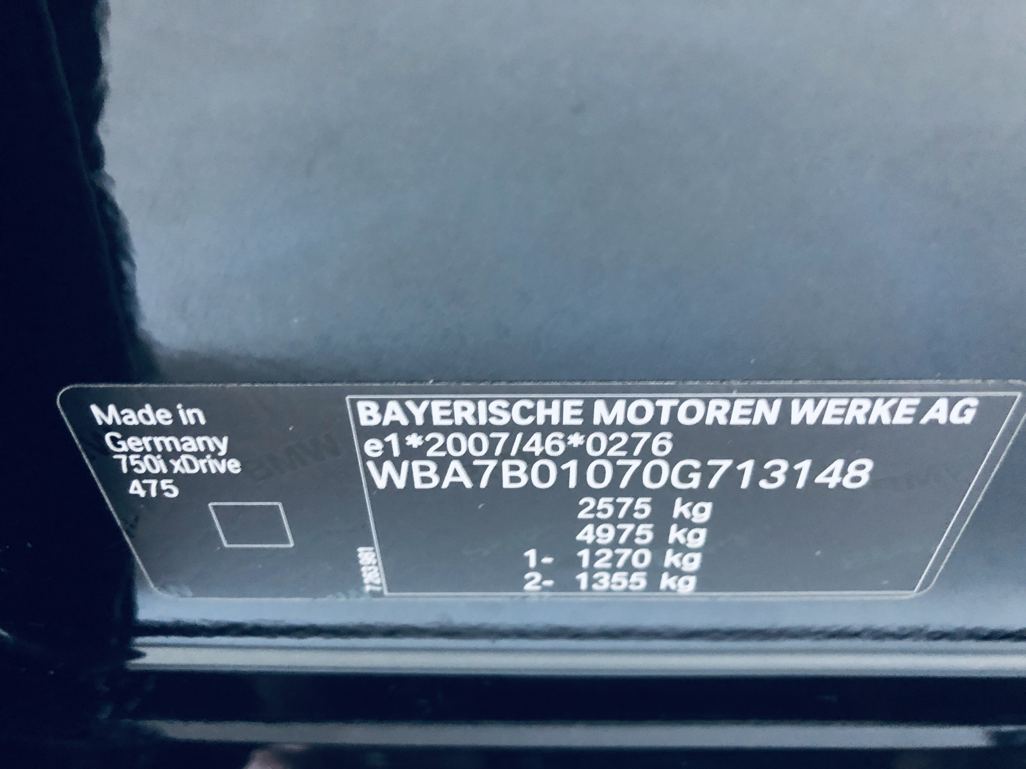 | VIN | WBA7B01070G713148 |