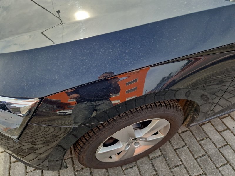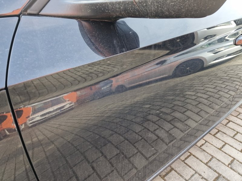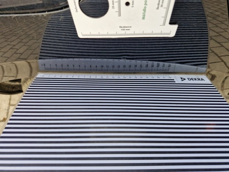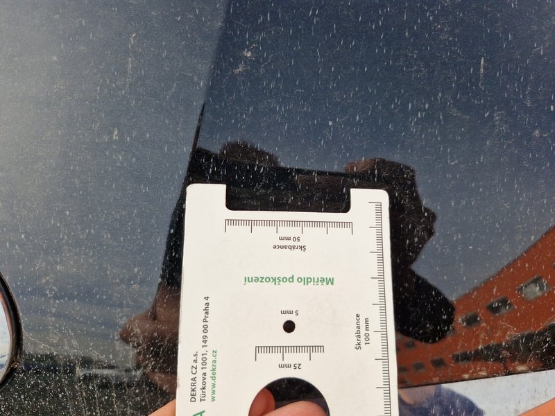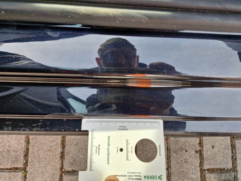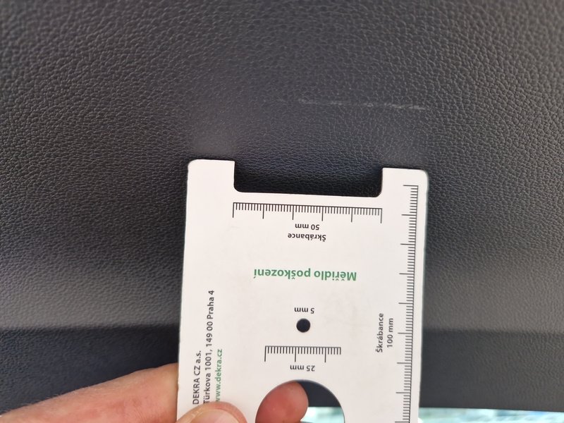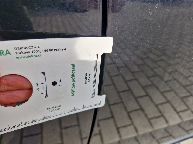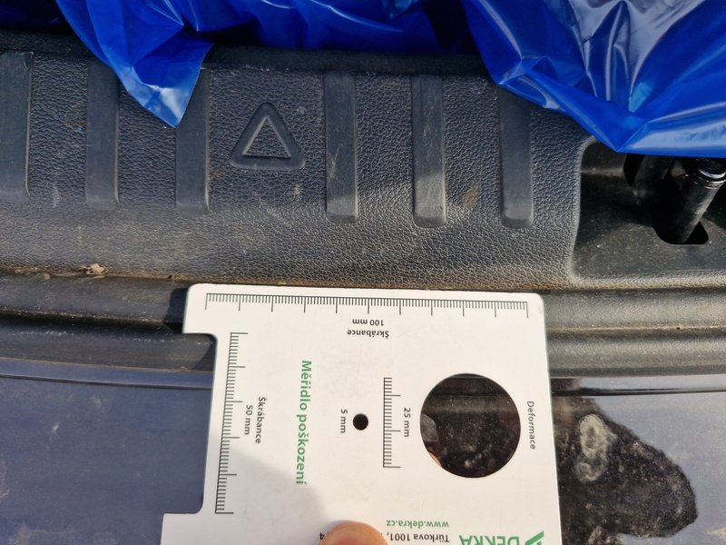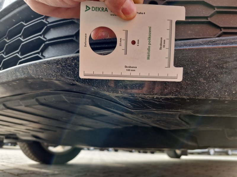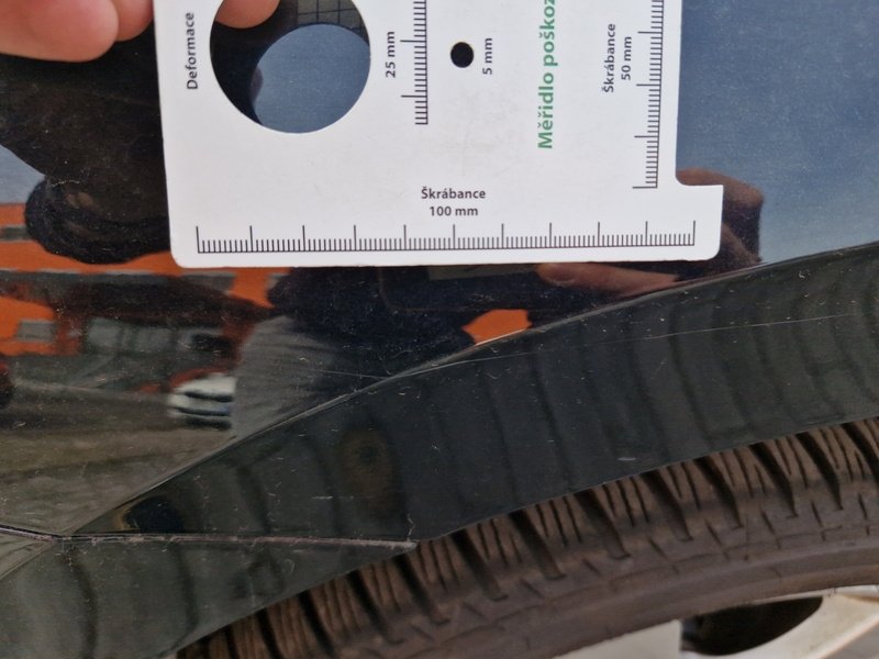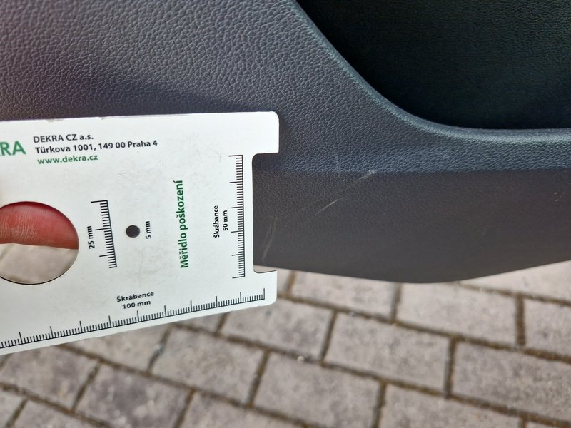 Oděrky a škrábance po obvodu karosérie, přední část karosérie je poškozená od kamínků, odřený přední nárazník, odřený levý přední blatník, odřené levé přední dveře, odřený levý práh, odřené pravé přední dveře, deformace pravé zadní bočnice, interiér vozidla opotřeben,