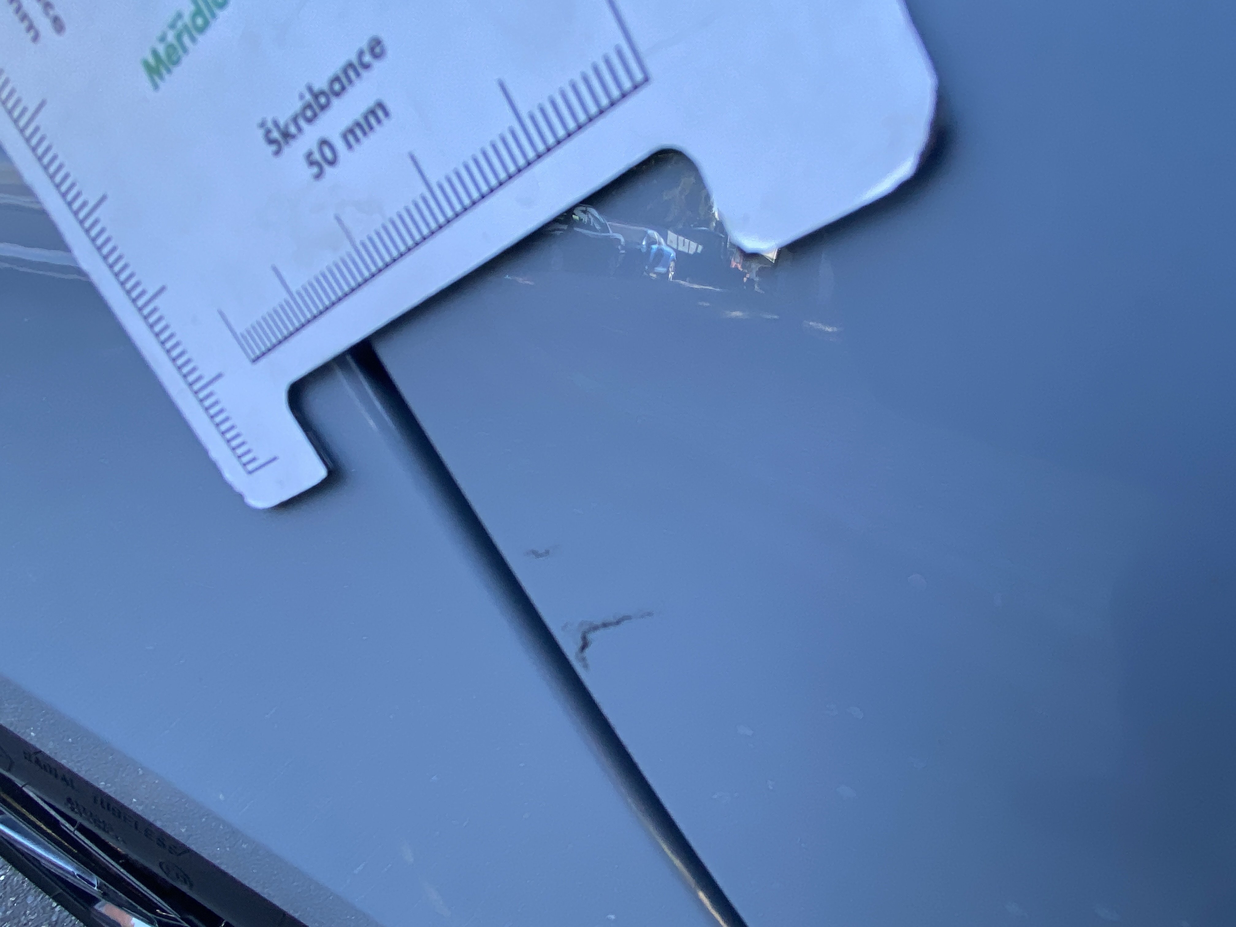 Oděrky a škrábance po obvodu karosérie, přední část karosérie je poškozená od kamínků, mírně odřené pravé zadní dveře, mírně poškozené čelní sklo, interiér vozidla opotřeben,