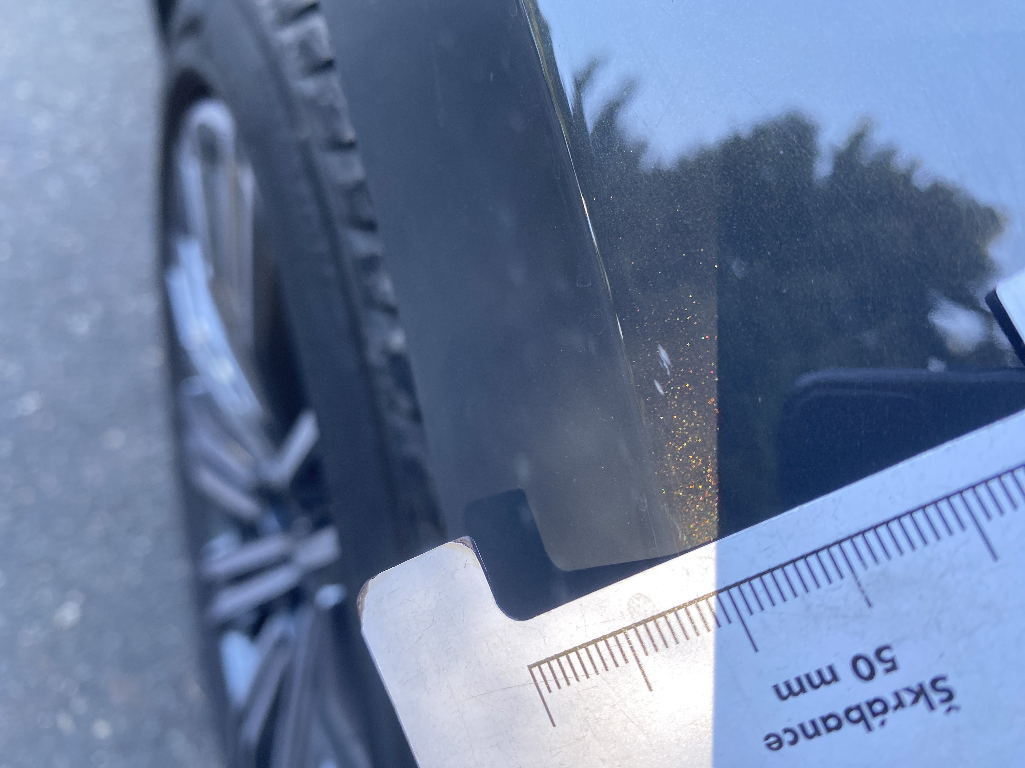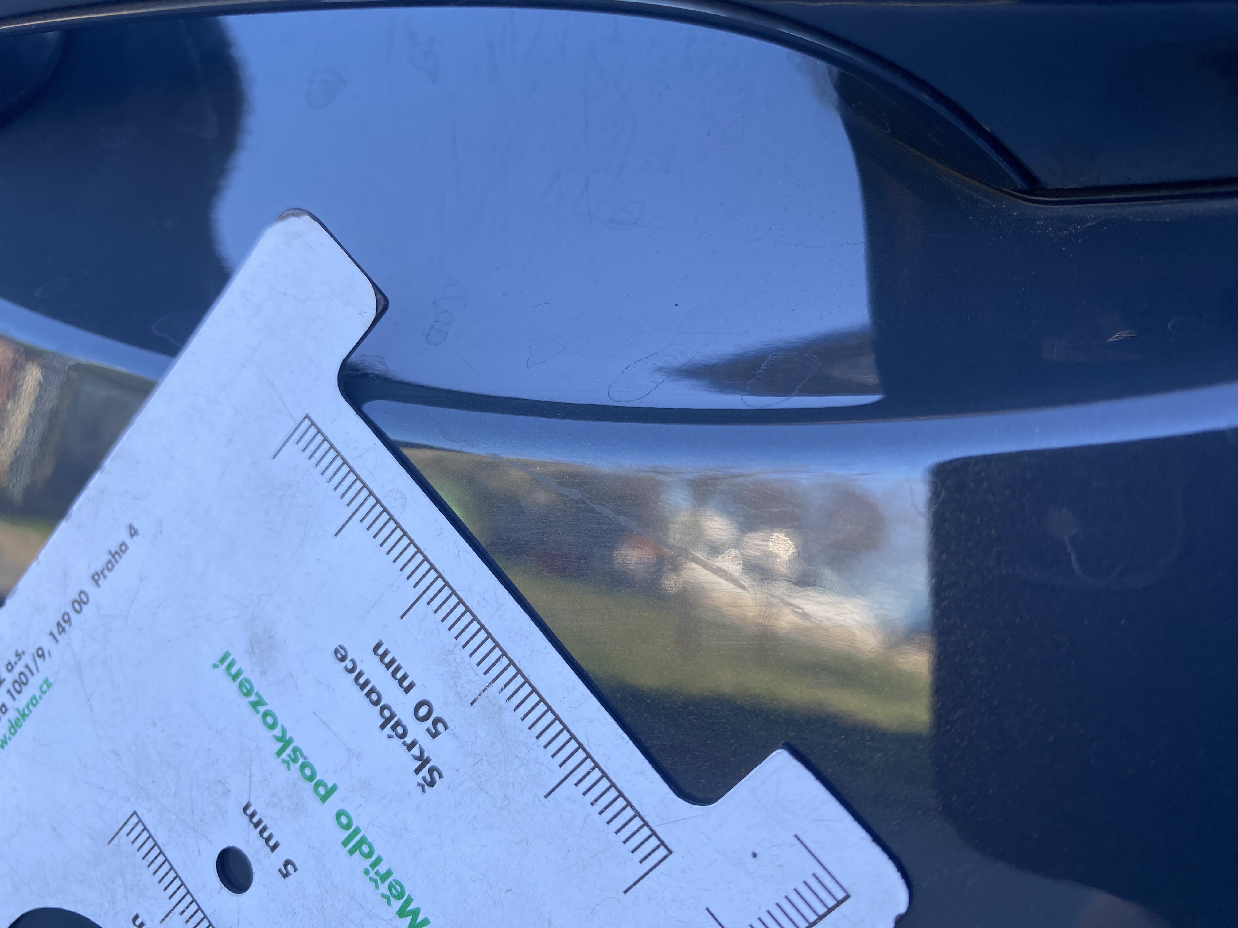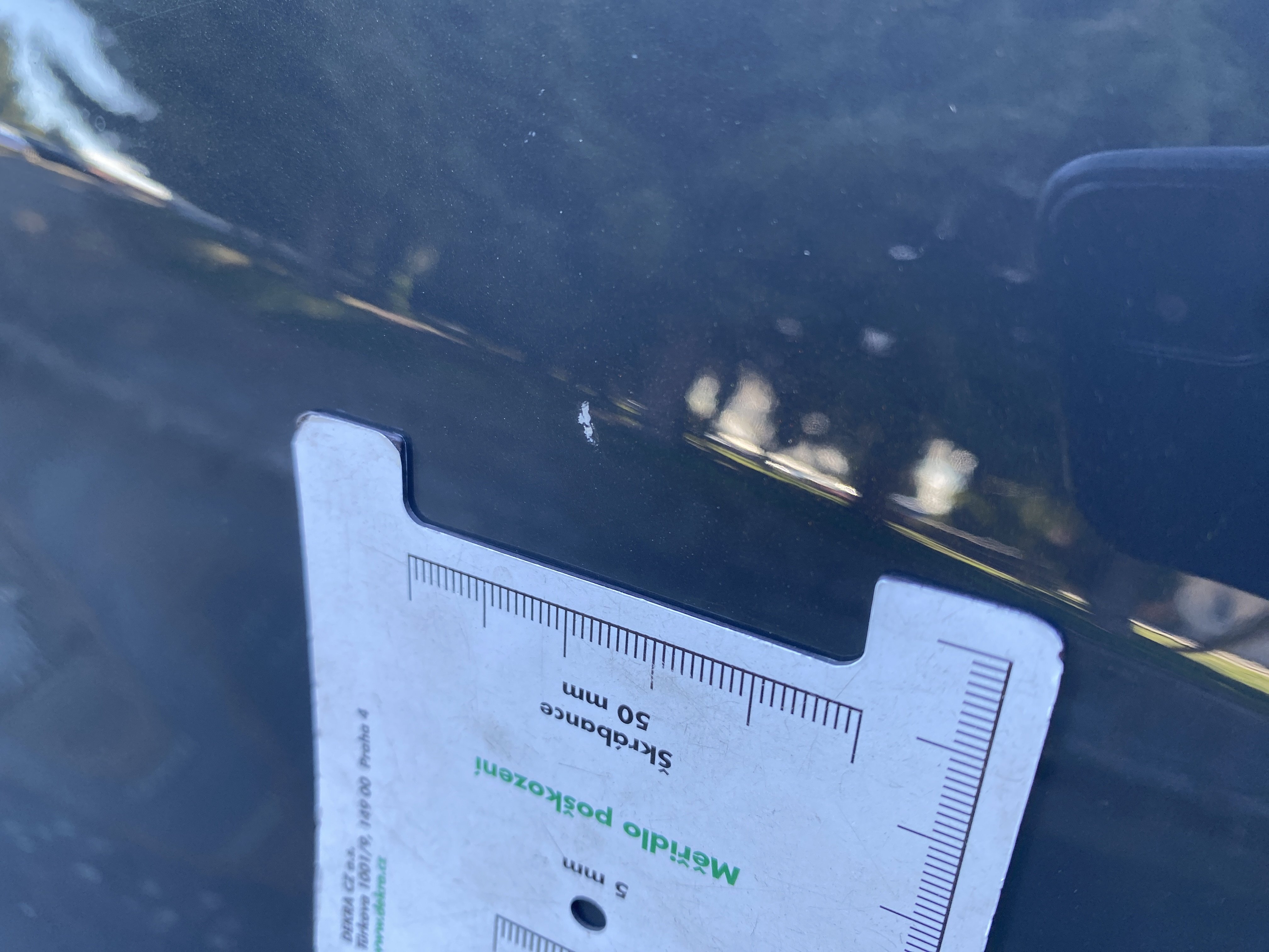 Oděrky a škrábance po obvodu karosérie, přední část karosérie je poškozená od kamínků, mírně odřený pravý přední blatník, odřený přední nárazník, mírně odřené levé přední dveře, mírně odřené levé zadní dveře, mírně promáčklý levý zadní blatník - jamka, mírně odřené víko zavzadlového prostoru, poškozené čelní sklo, odřená střecha, interiér vozidla opotřeben,