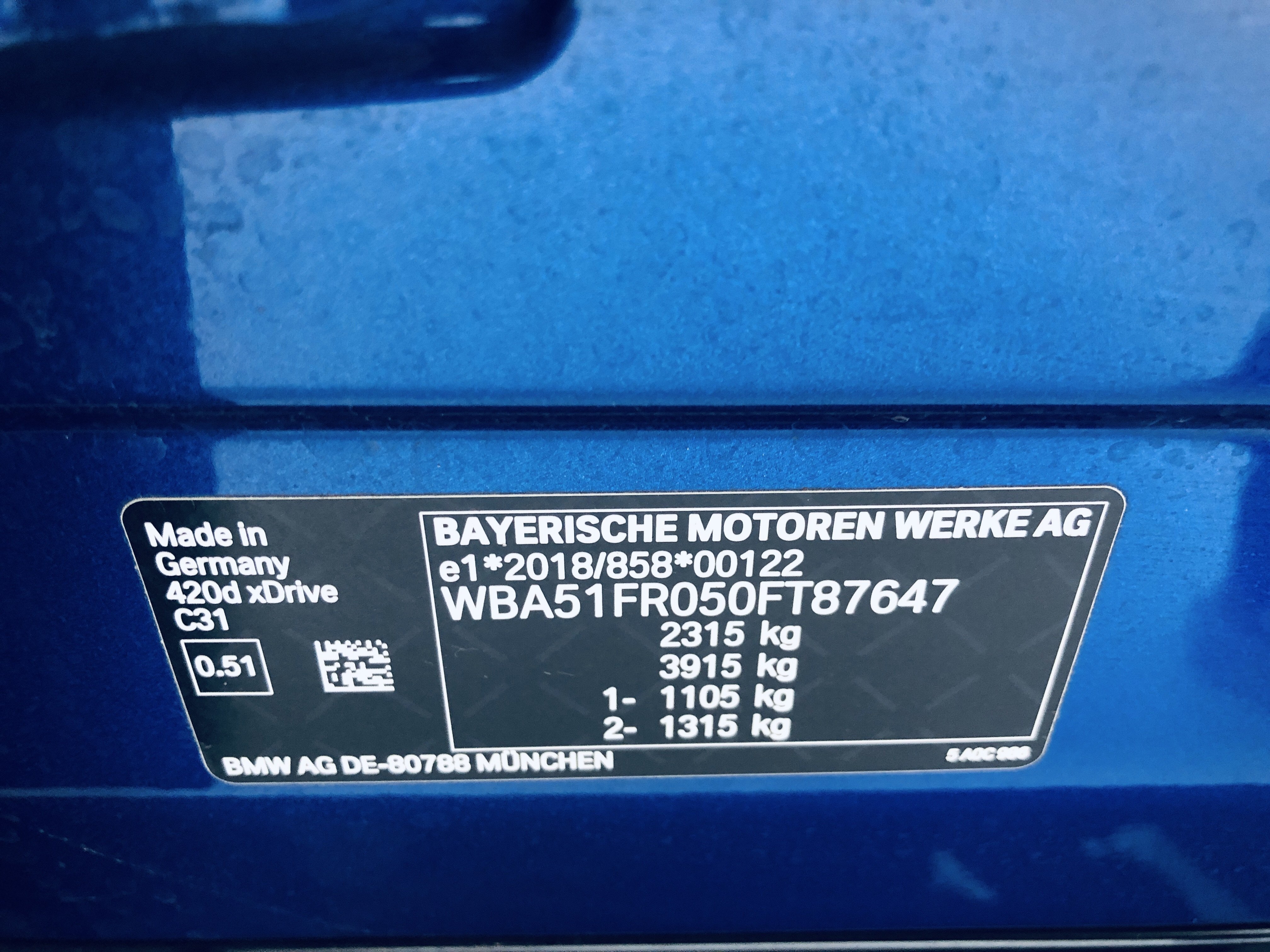 | VIN | WBA51FR050FT87647 |