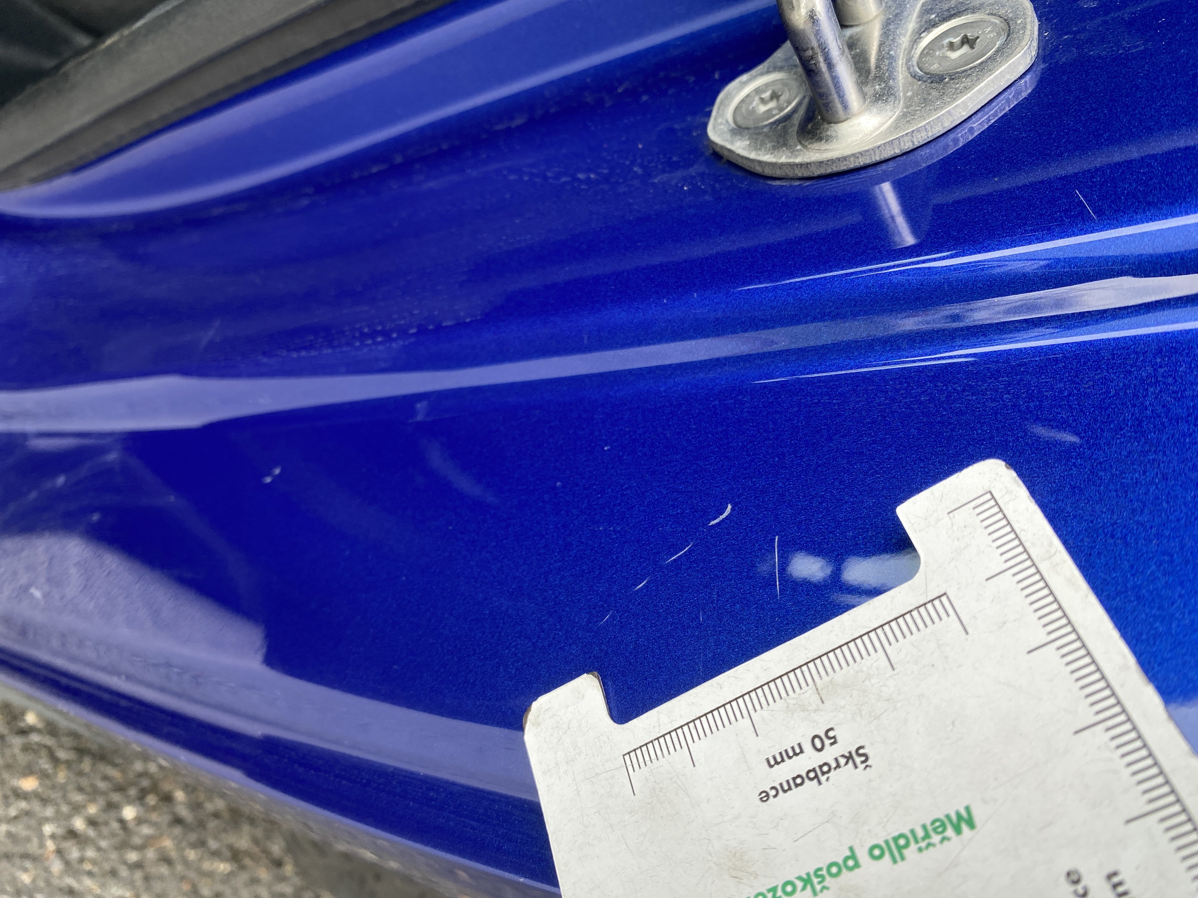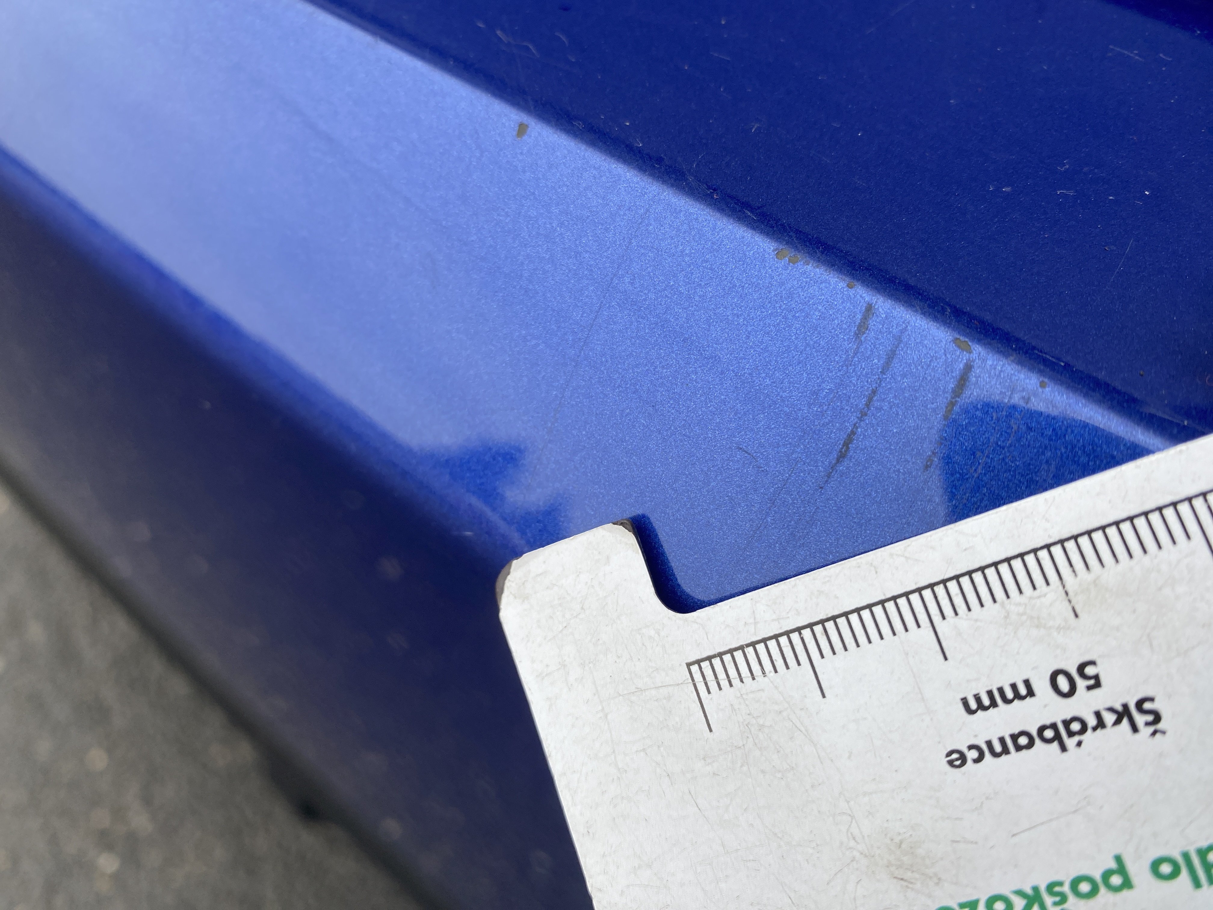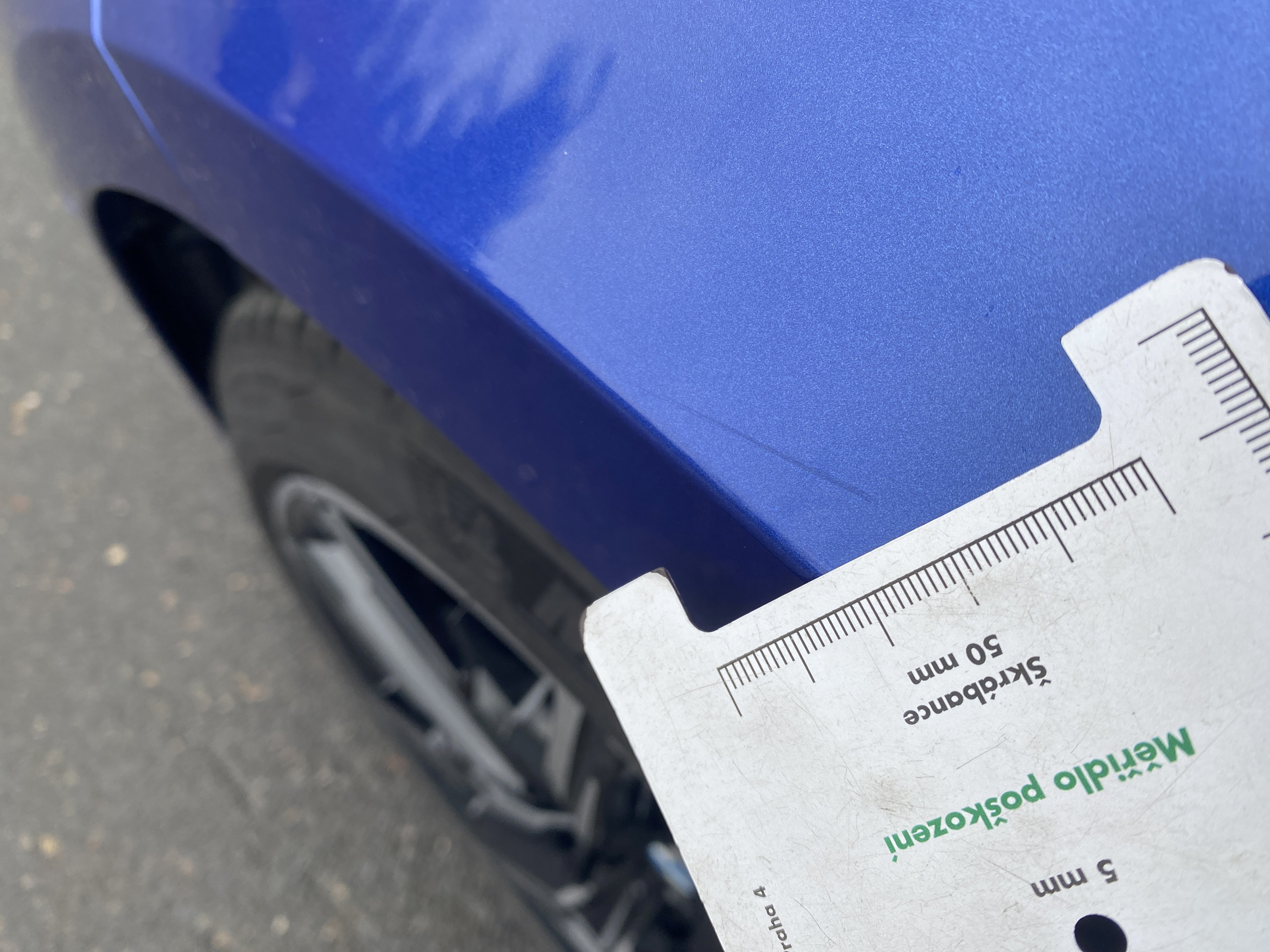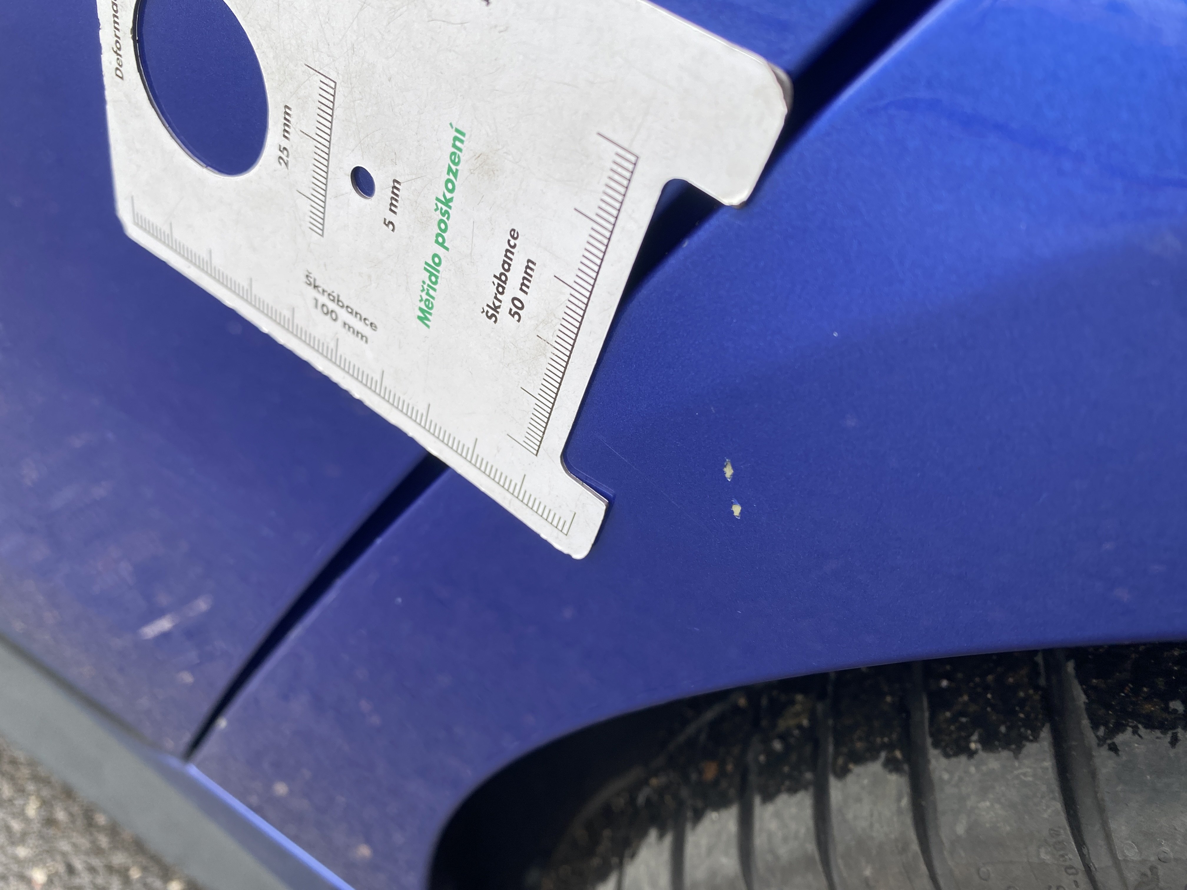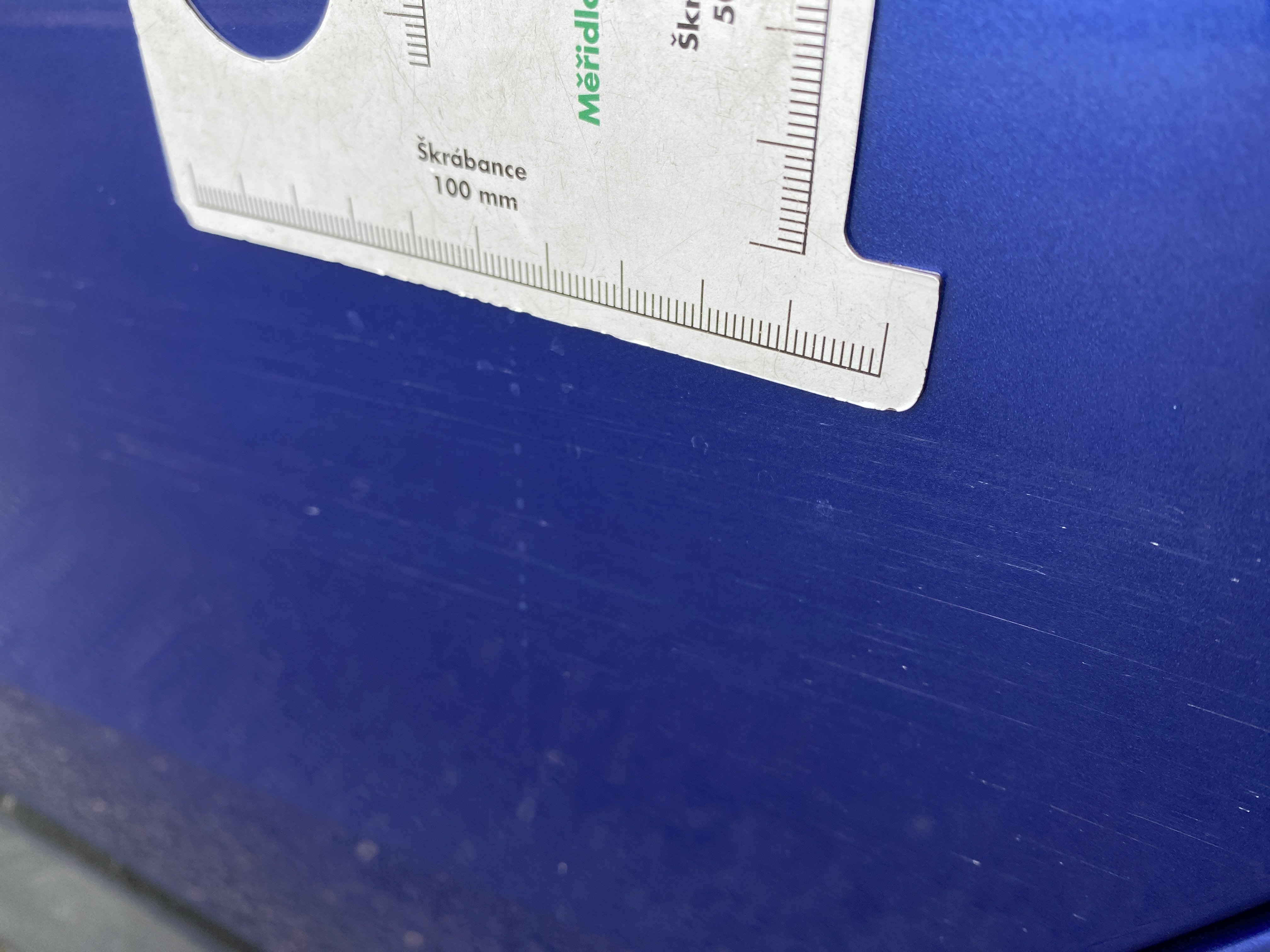 Oděrky a škrábance po obvodu karosérie, přední část karosérie je poškozená od kamínků, mírně odřený levý přední blatník, odřené levé zadní dveře, mírně odřený lem levého zadního blatníku, odřený zadní nárazník, mírně odřené pravé přední dveře, odřený kryt pravého zpětného zrcátka, mírně poškozené čelní sklo, interiér vozidla opotřeben,