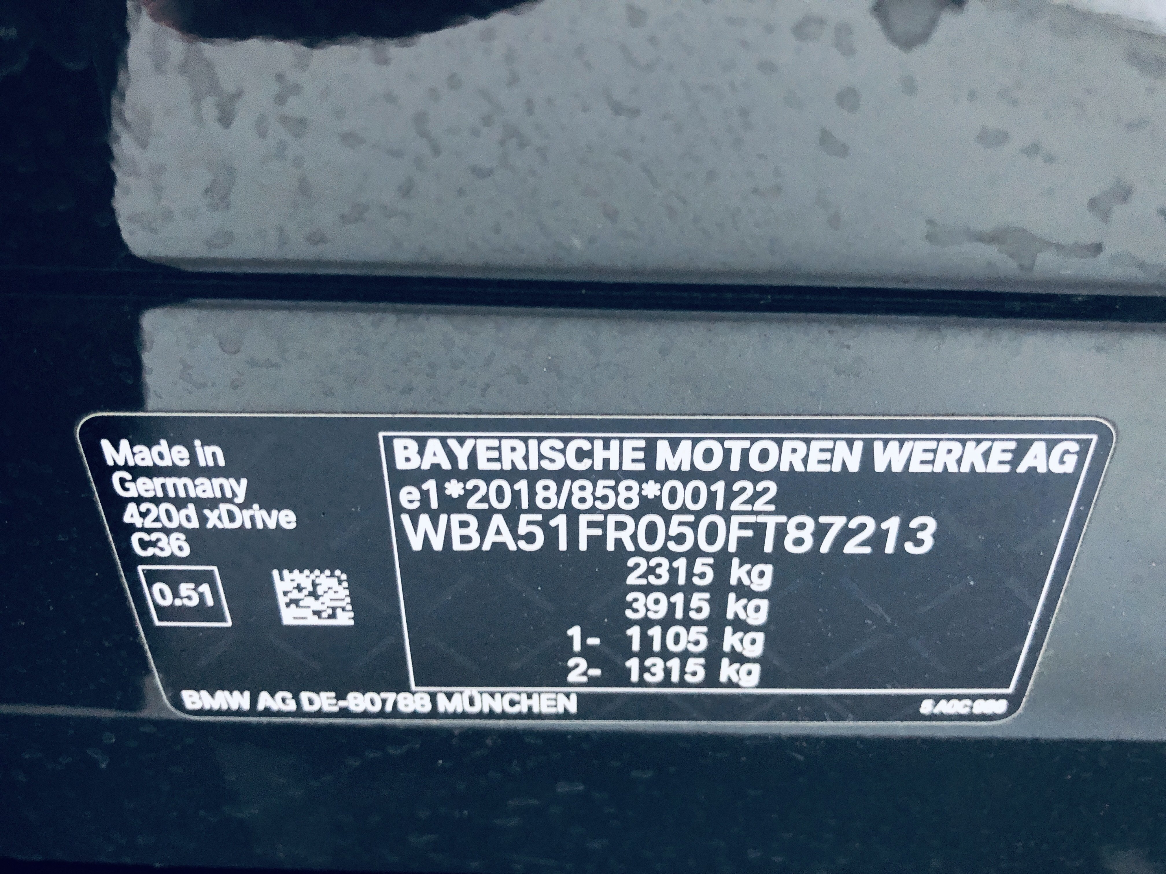 | VIN | WBA51FR050FT87213 |
