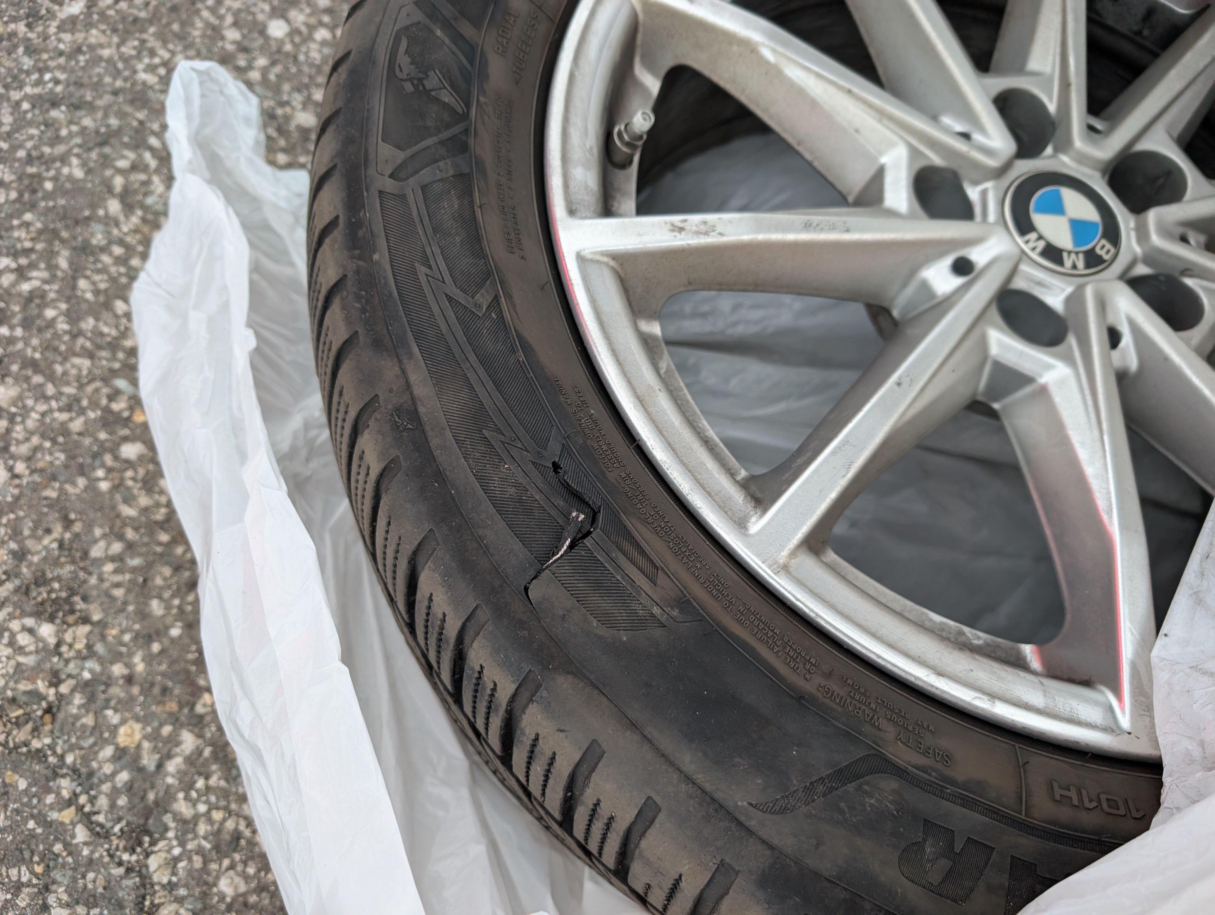 4x zimné pneumatiky na diskoch, uložené vo vozidle.