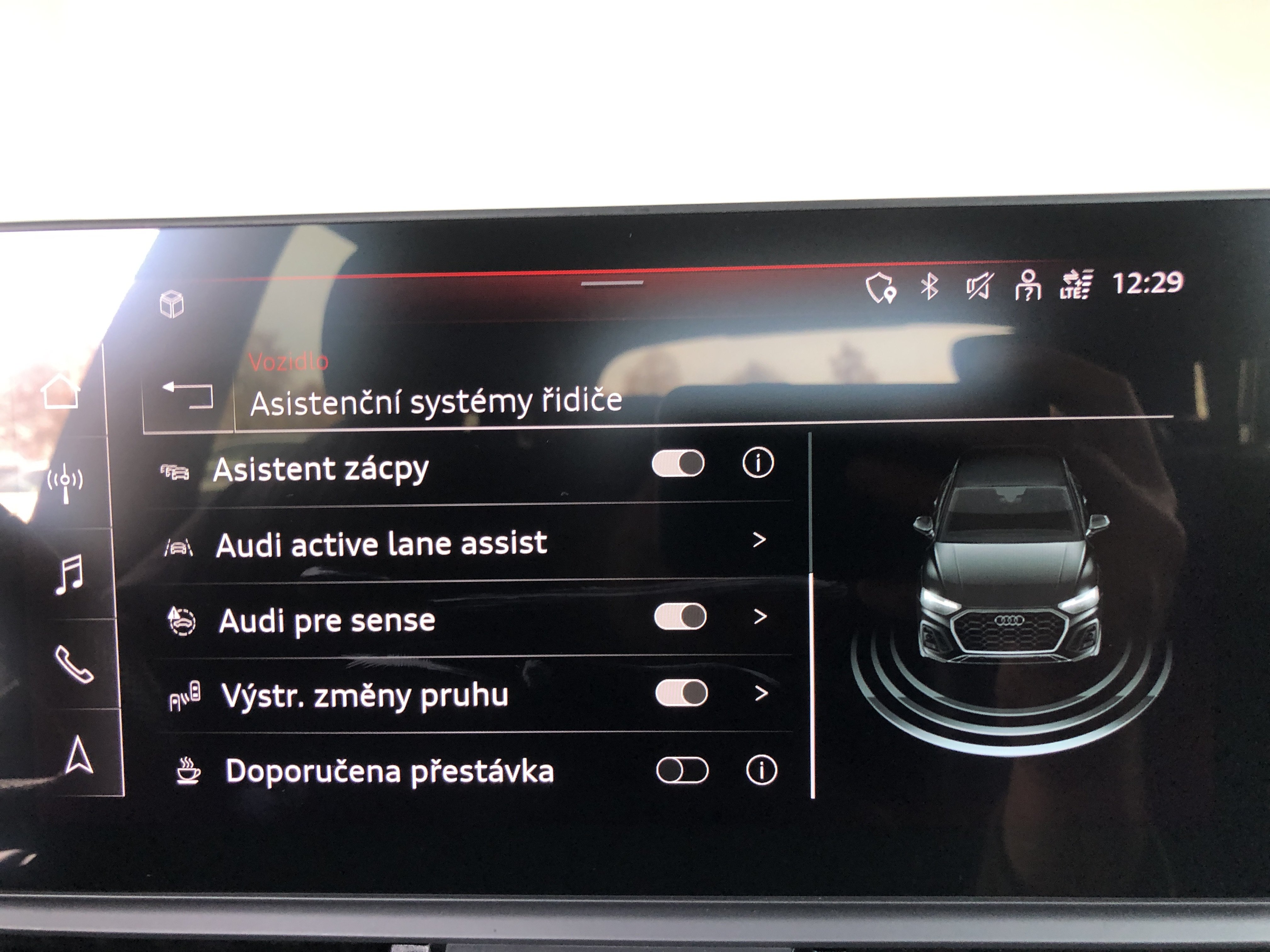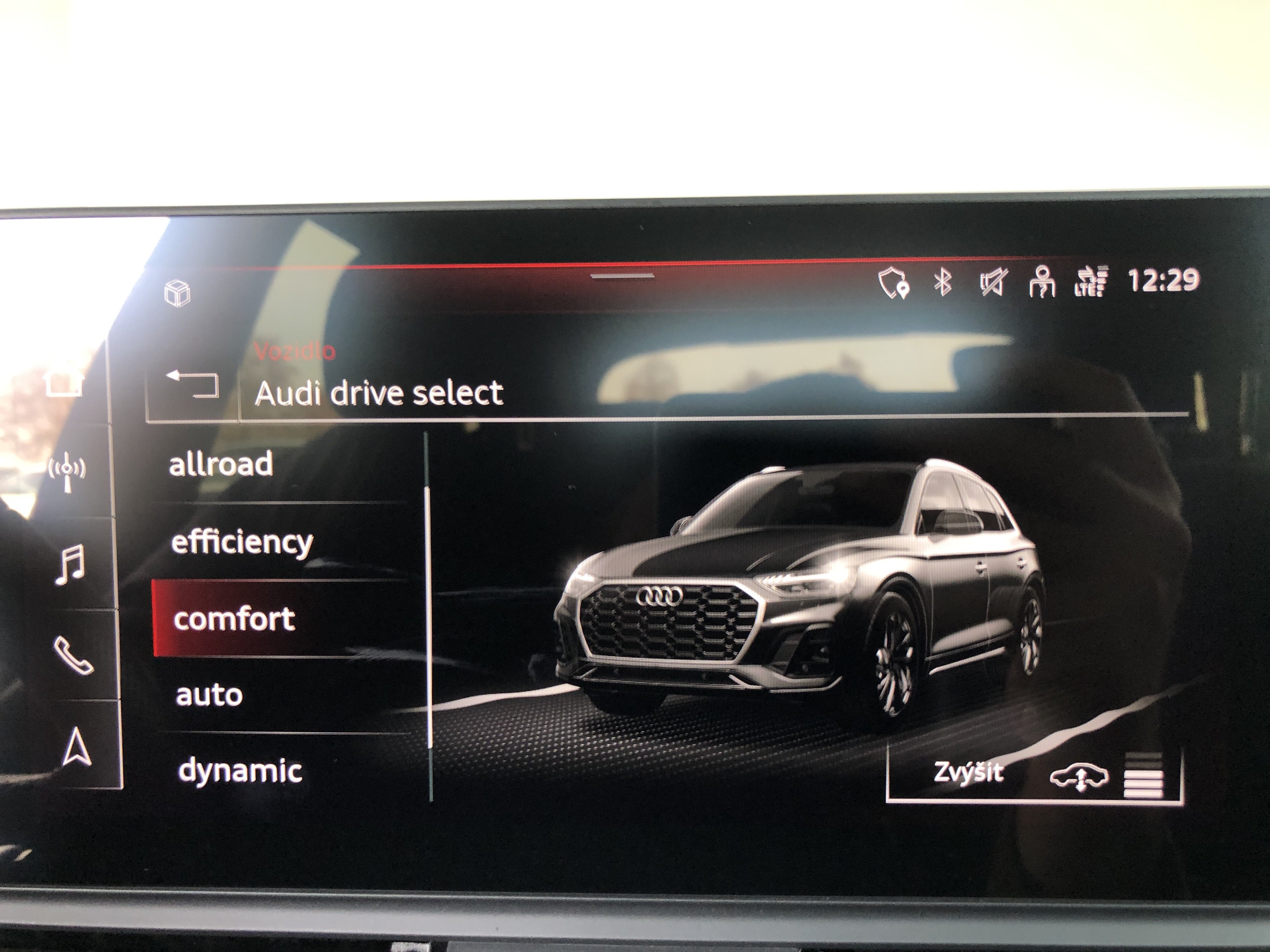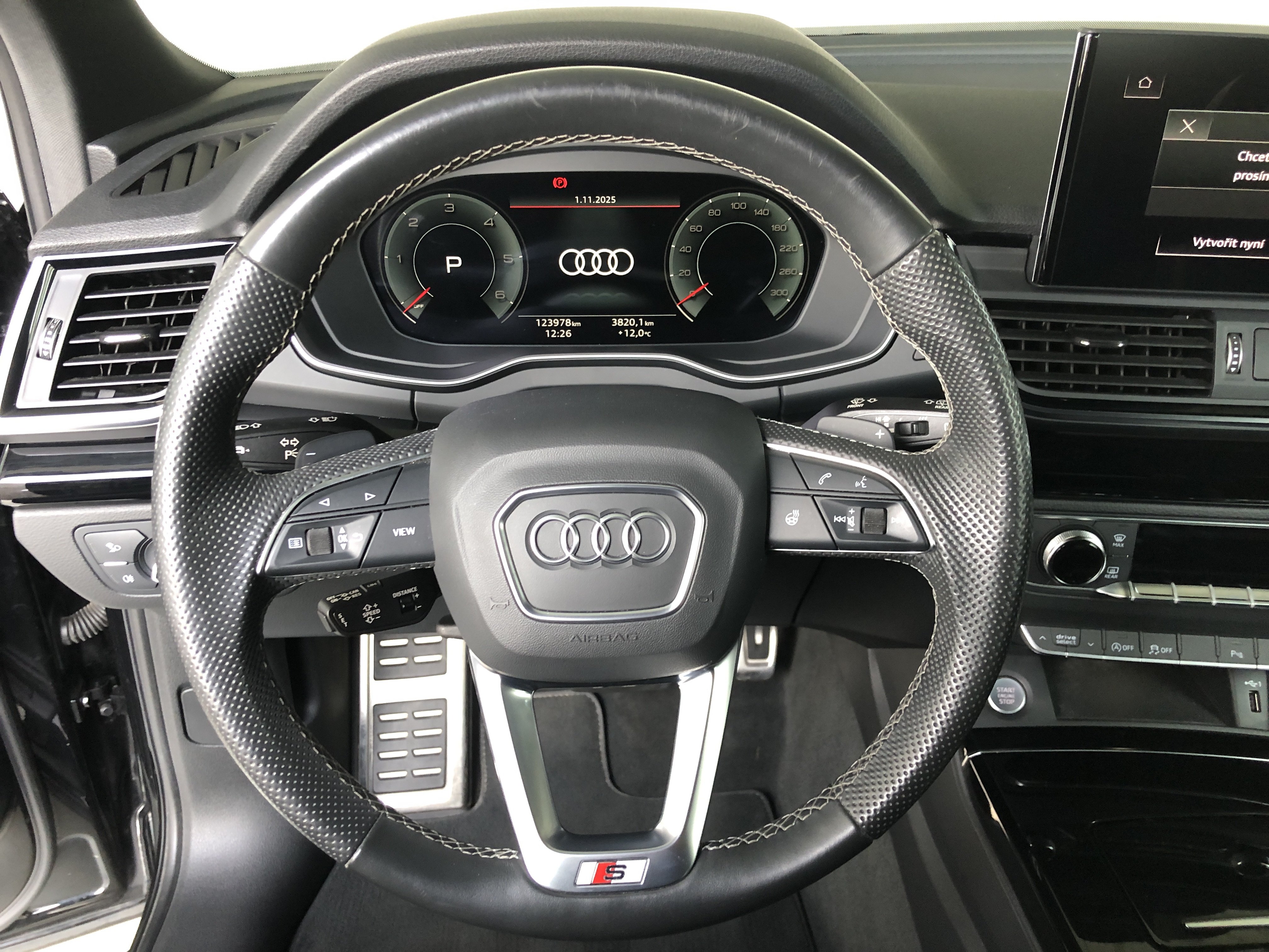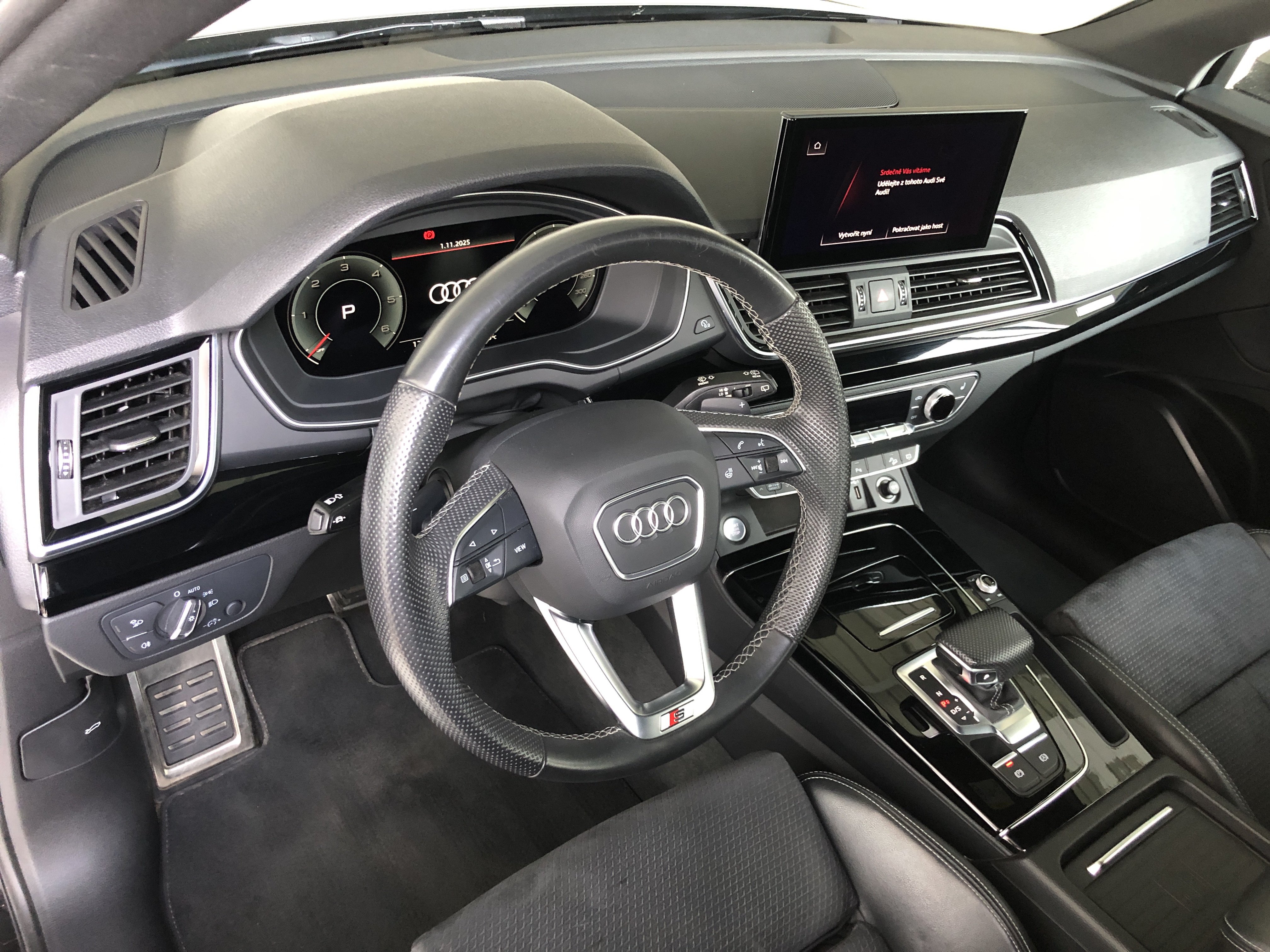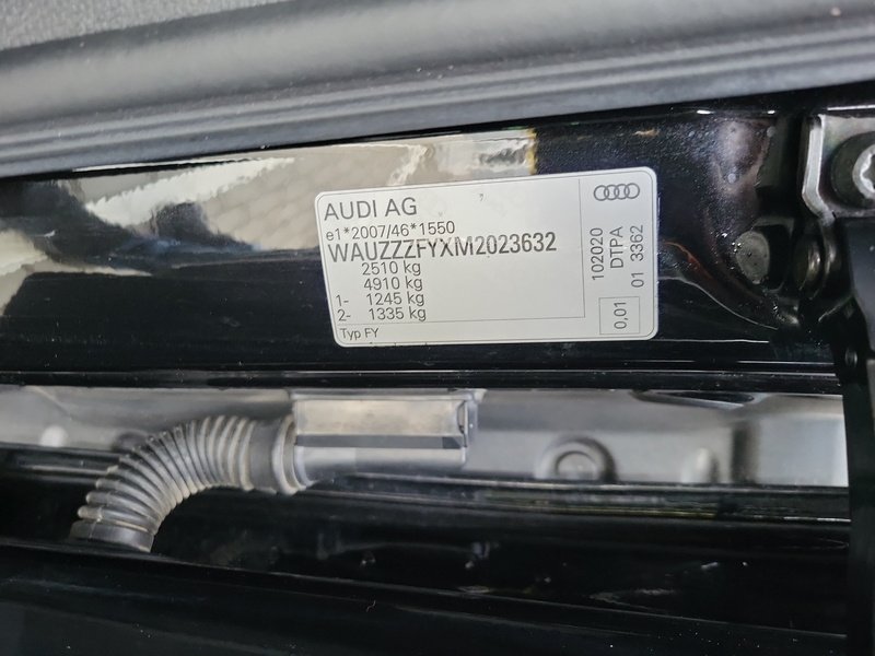 Speciální výbava: Audi connect (internetové služby), Audi connect klíč, Audi Smartphone Interface, Bluethooth-handsfree sada s rozpoznávání řeči (Audi Phone Box), klimatizace komfort-autom. 3-zónový, komfortní klíč s ovl. senzorem dveře za. výklop.-odemykání včetně (otevřít + zavřít)(komfortní klíč s ovl. senzorem dveře za. výklop.-odemykání, tlačítko Start-Stop, víko zavaz. prostoru el. ovládaný (otevřít + zavřít)), Matrix-LED světlomety s dynamický Osvětlení okolí a OLED svítilny za.(Matrix svítilny za. OLED s ozn.koncového světla 1, zařízení pro čištění světlometu (Ostřik. zaříz.), Multifunkční kamera), metalíza-lakování, nosič střeš. podél. černá, nádrž paliv.: 70 Ltr.(Nádrž na močovinu (SCR): 24 Ltr.), osvětlení Ambiente (Multicolor-LED), paket Asistence Město(Pomocný systém řidiče: asistent pro změnu jízdního pruhu (Side Assist) s signalizace výstupu a systém upozorňující blíží, zařízení park. vpředu a za., optický (APS Plus), Pomocný systém řidiče: systém ochrany cestujících (Audi pre sense basic) včetně Audi pre sense rear, kamera zpětná, Pomocný systém řidiče: systém upozorňující blížící se vozidlo zezadu záď vozidla), paket Interiér S line(lišty nástupní s vložka hliníková a označení modelu, osvětl., vybavení interiéru: vložky ozd. díly ozd. černá lesklý, pedály a opěra nožní v ocel ušlech., obložení stropu látka, černá, sportovní sedadla vpředu, volant (kůže - 3-paprsky) s multifunkce plus a funkce řazení), paket Optik černá plus(lišty okenní ozd. černá), podvozek (adaptive air suspension), Pomocný systém řidiče: adaptivní systém řízení rychlosti jízdy (Adaptive Cruise Control) s adaptivní tempomat, Pomocný systém řidiče: asistent pro jízdu v pruhu (active lane assist)(Pomocný systém řidiče: rozpoznávání dopravních značek), Pomocný systém řidiče: startovací asistent (hold asistent (Audi)), potah sedadla / čalounění: vlákno frekvence / kůže sestava s ražené logo v opěradla sedadel př., prosklení za. tón. (privátní prosklení), přístroj sdružený digitální (virtual cockpit plus), rozhraní Multimedia MMI Navigation Plus s MMI Touch(informační systém řidiče (FIS) s barevným displejem), ráfek z leh. slitiny 8x20 (5-ramenný Offroad-design, titanová optika matný, leštěný), Sound systém DSP / Audi Sound systém, volant vyhř. (kůže - 3-paprsky) s multifunkce plus(funkce řazení (ovládacími páčkami řazení/tlačítkami) na volant), vybavení interiéru: vložky ozd. klavírní lak, černá, vyhřív. sedadla vpředu, zrcátko vněj. černá