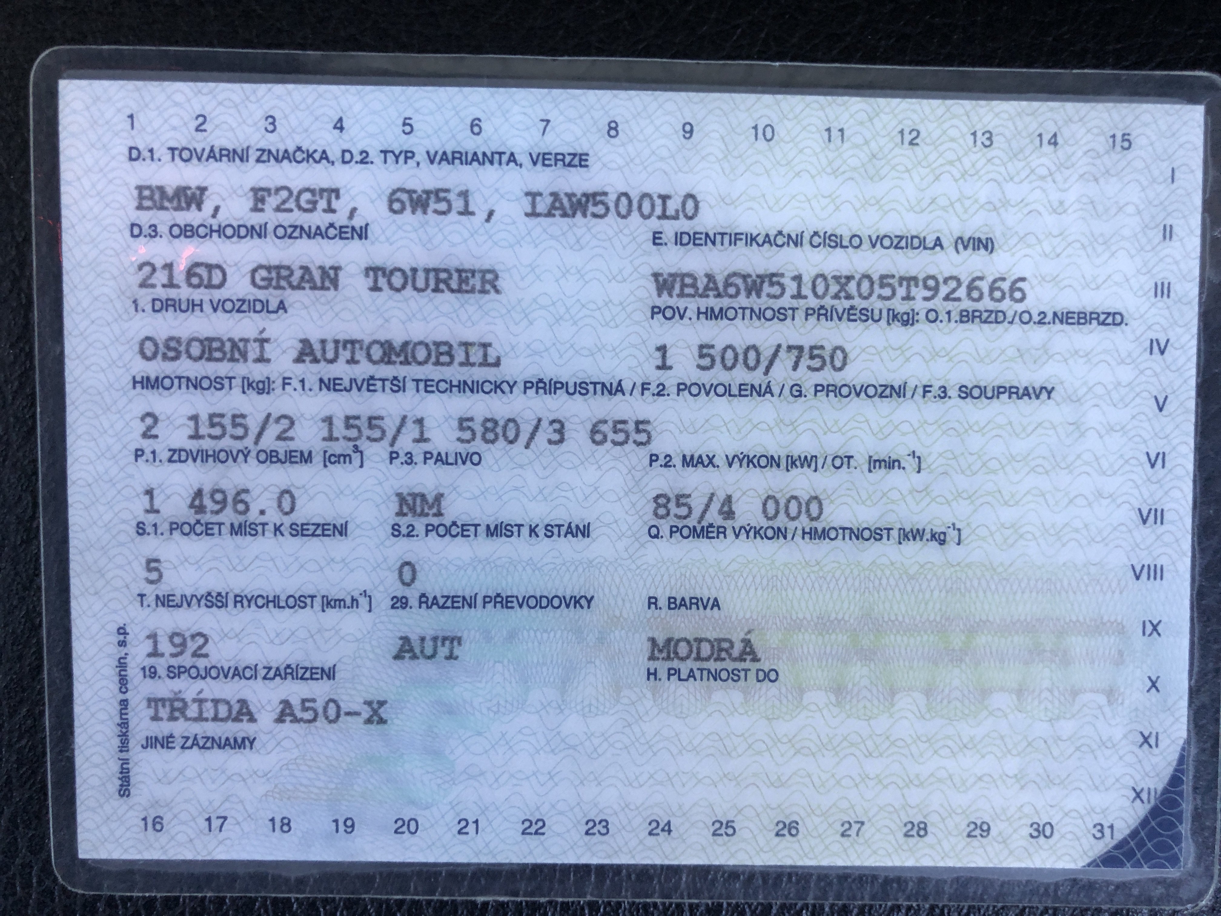 | Brand and type | BMW 216d Gran Tourer Luxury Line - Automat, Diesel 85 kW |