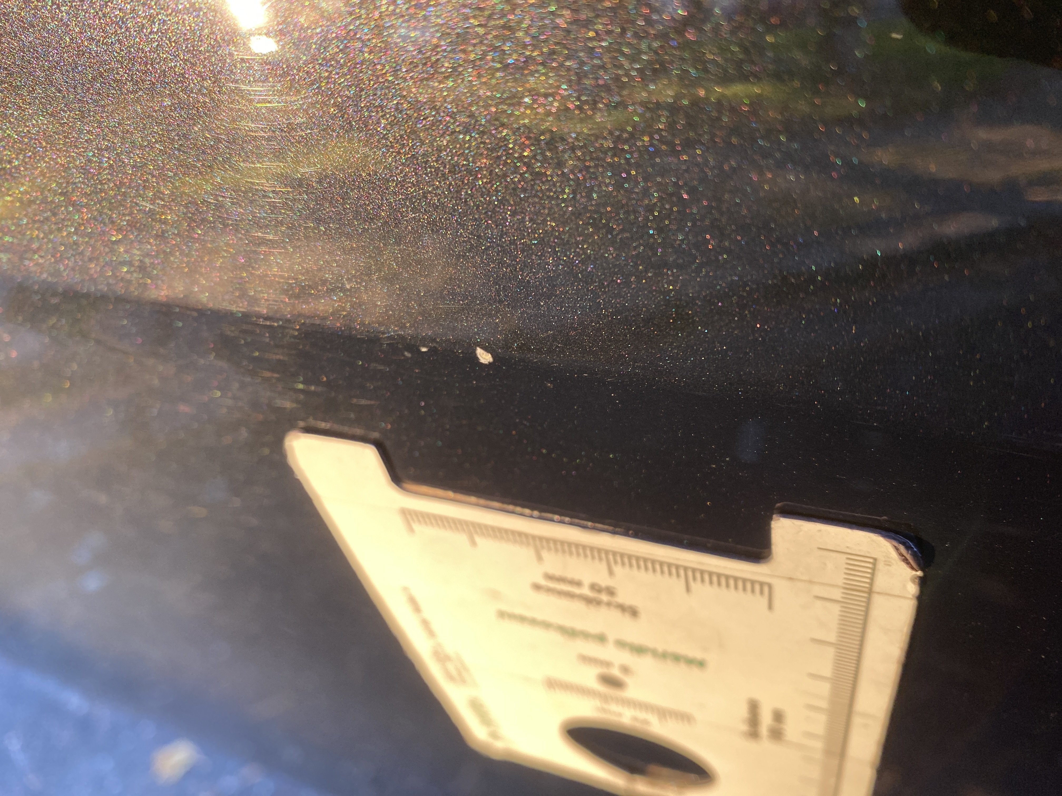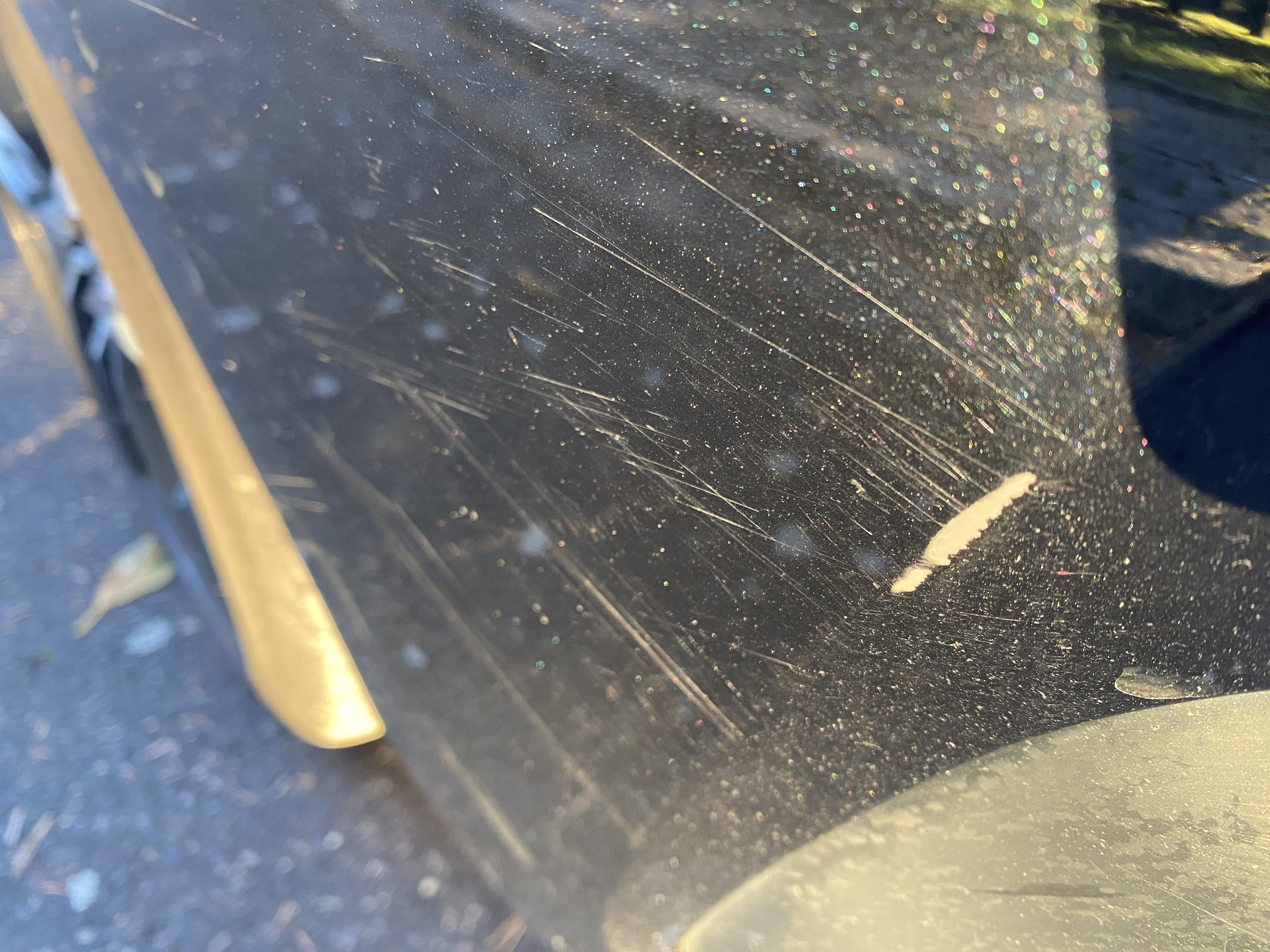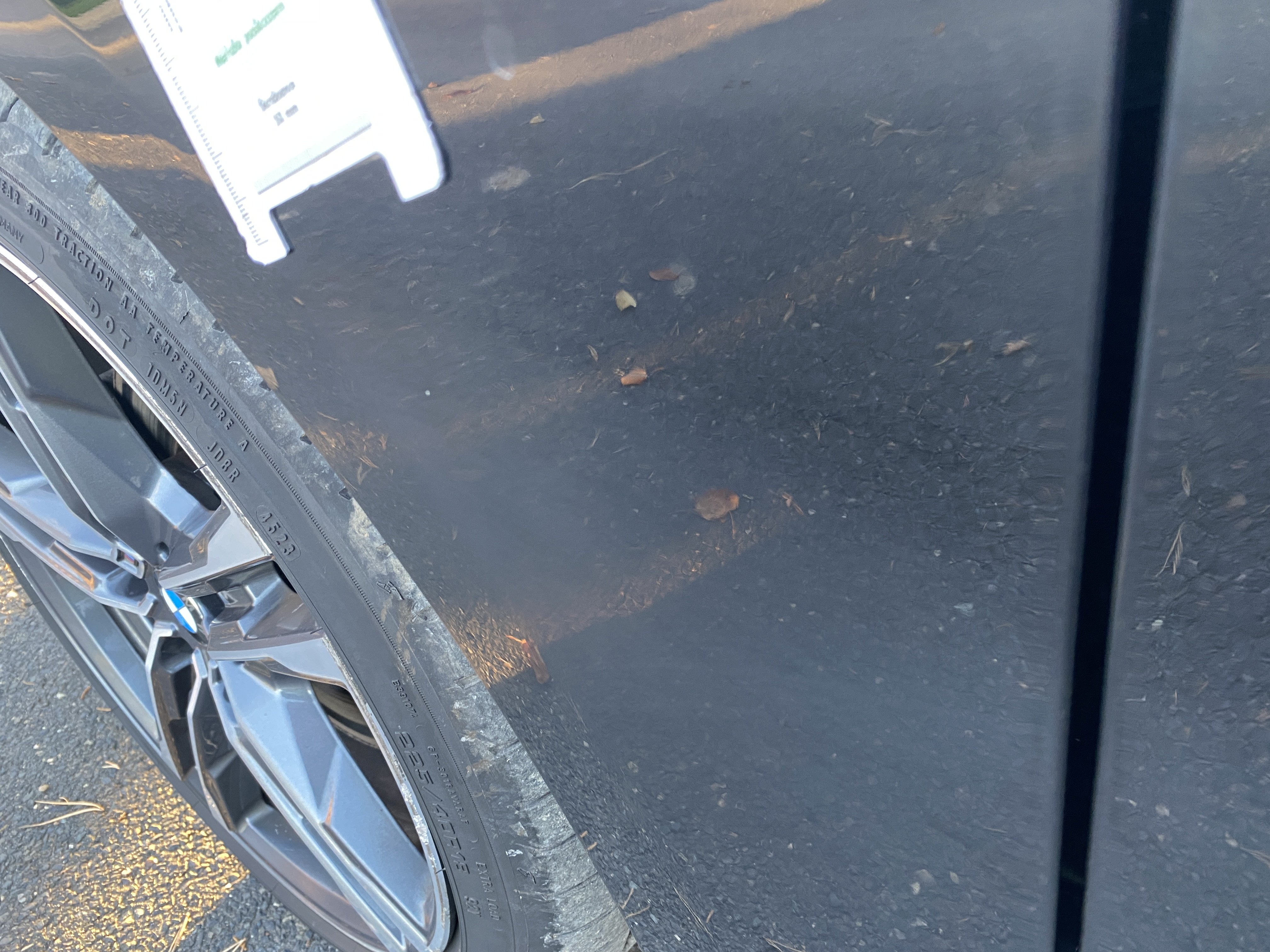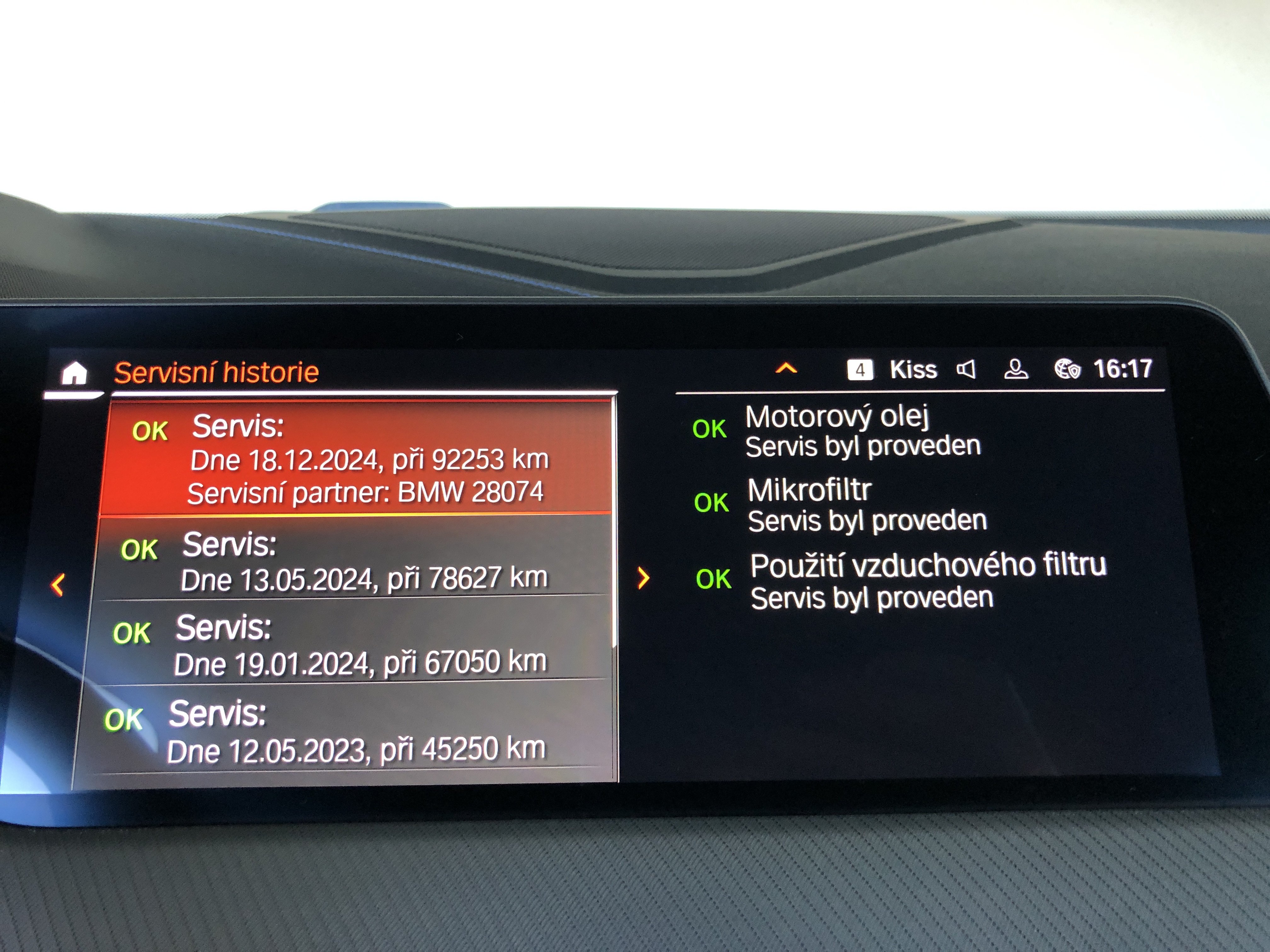 Oděrky a škrábance po obvodu karosérie, přední část karosérie je poškozená od kamínků, odřený přední nárazník, mírně odřený kryt levého zpětného zrcátka, odřené levé zadní dveře, odřené víko zavazadlového prostoru, odřený lem pravého zadního blatníku, mírně odřené pravé přední dveře, mírně poškozené čelní sklo, mírně promáčklé víko motorového prostoru - jamka, interiér vozidla opotřeben,