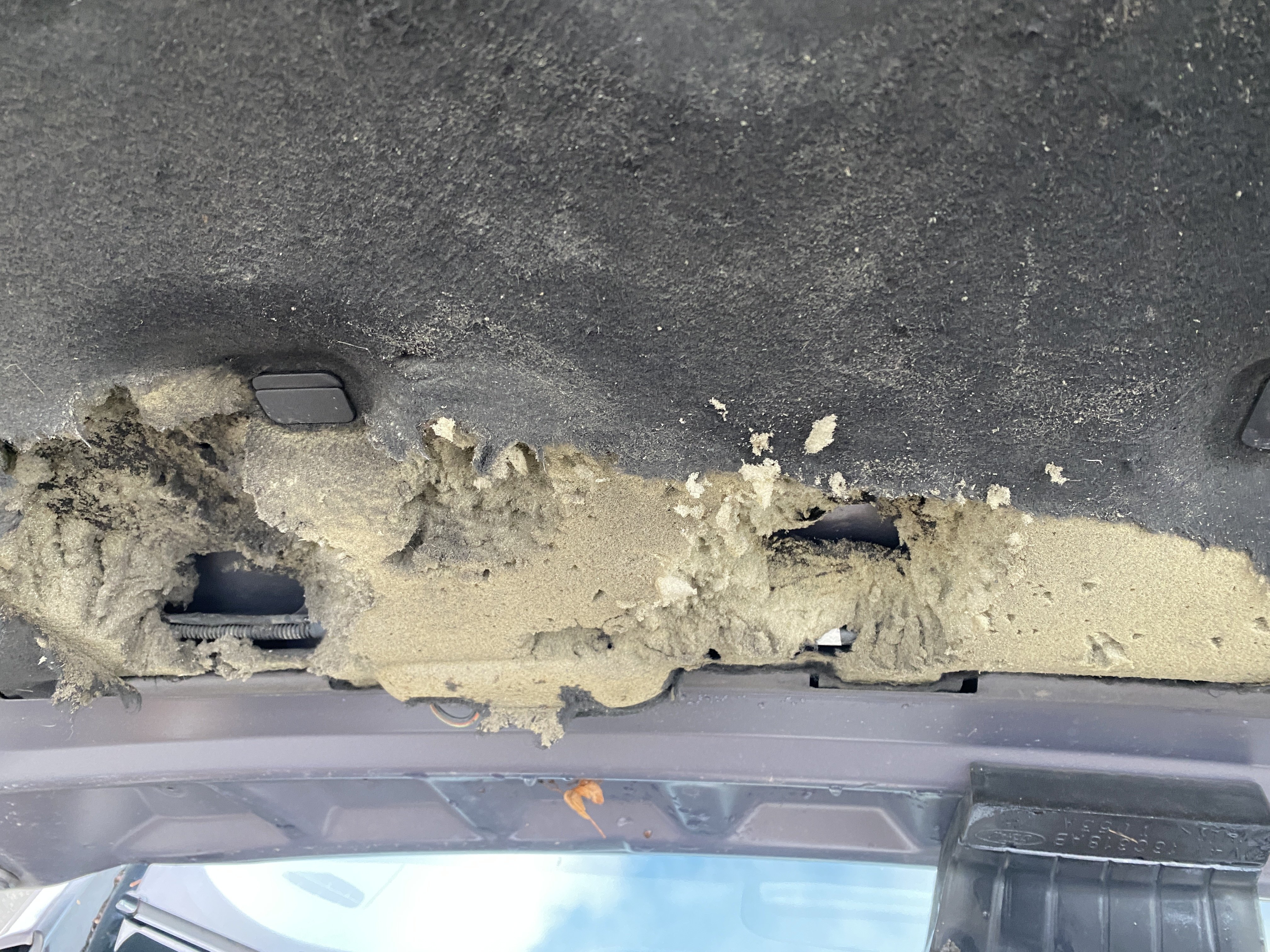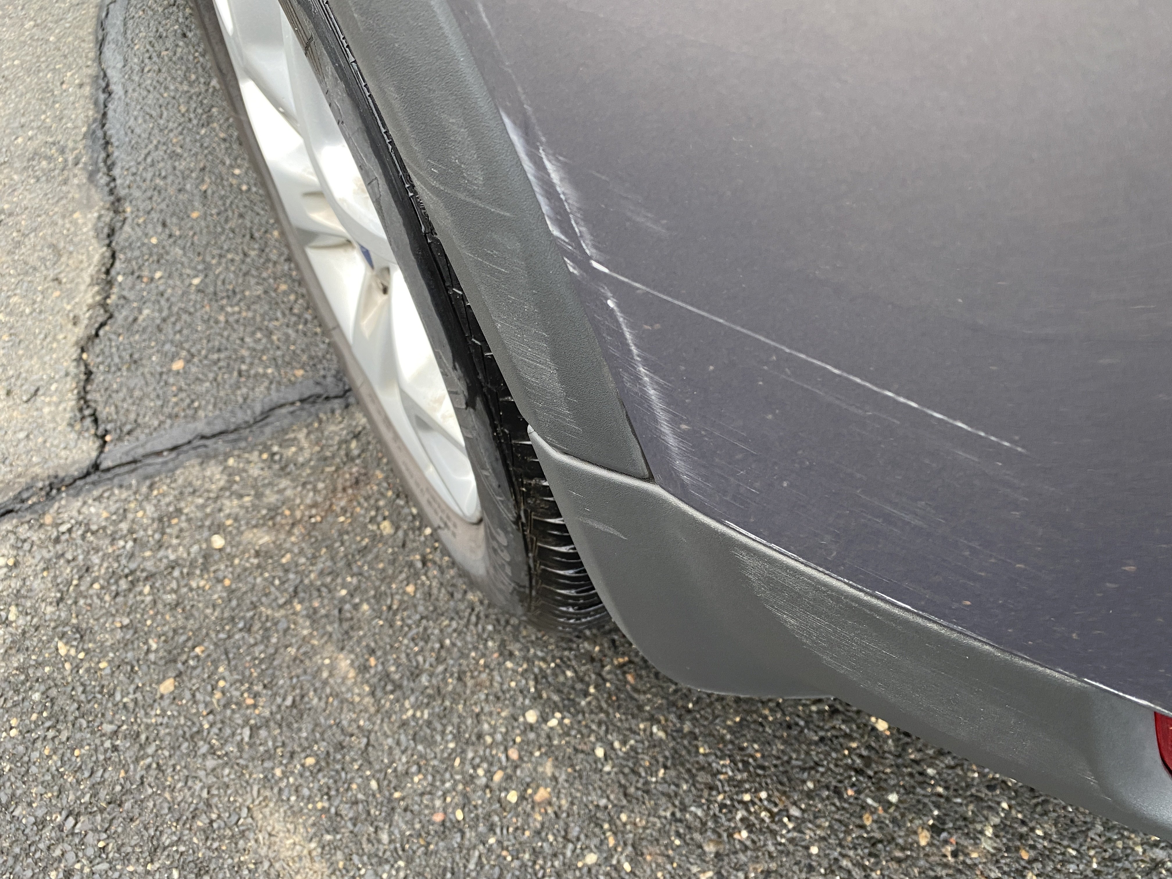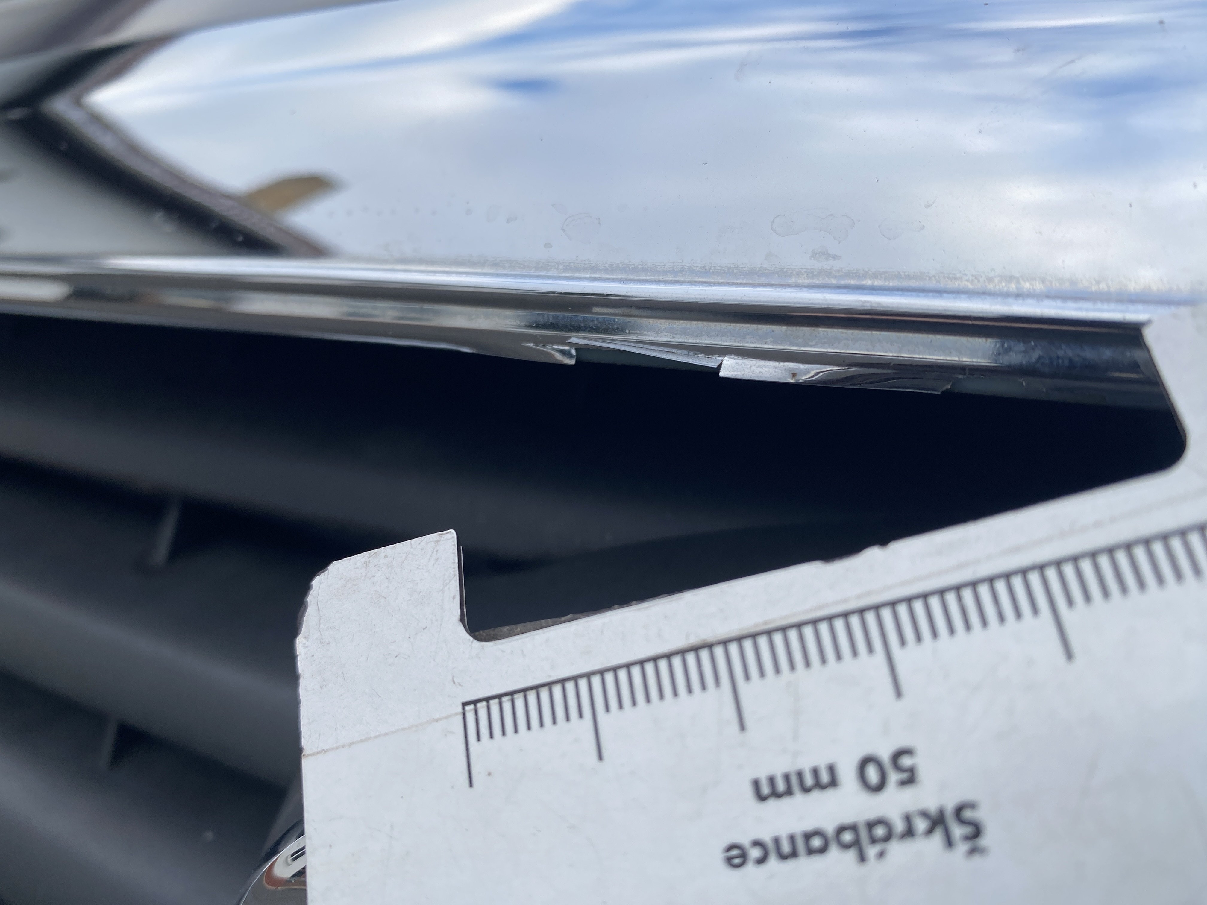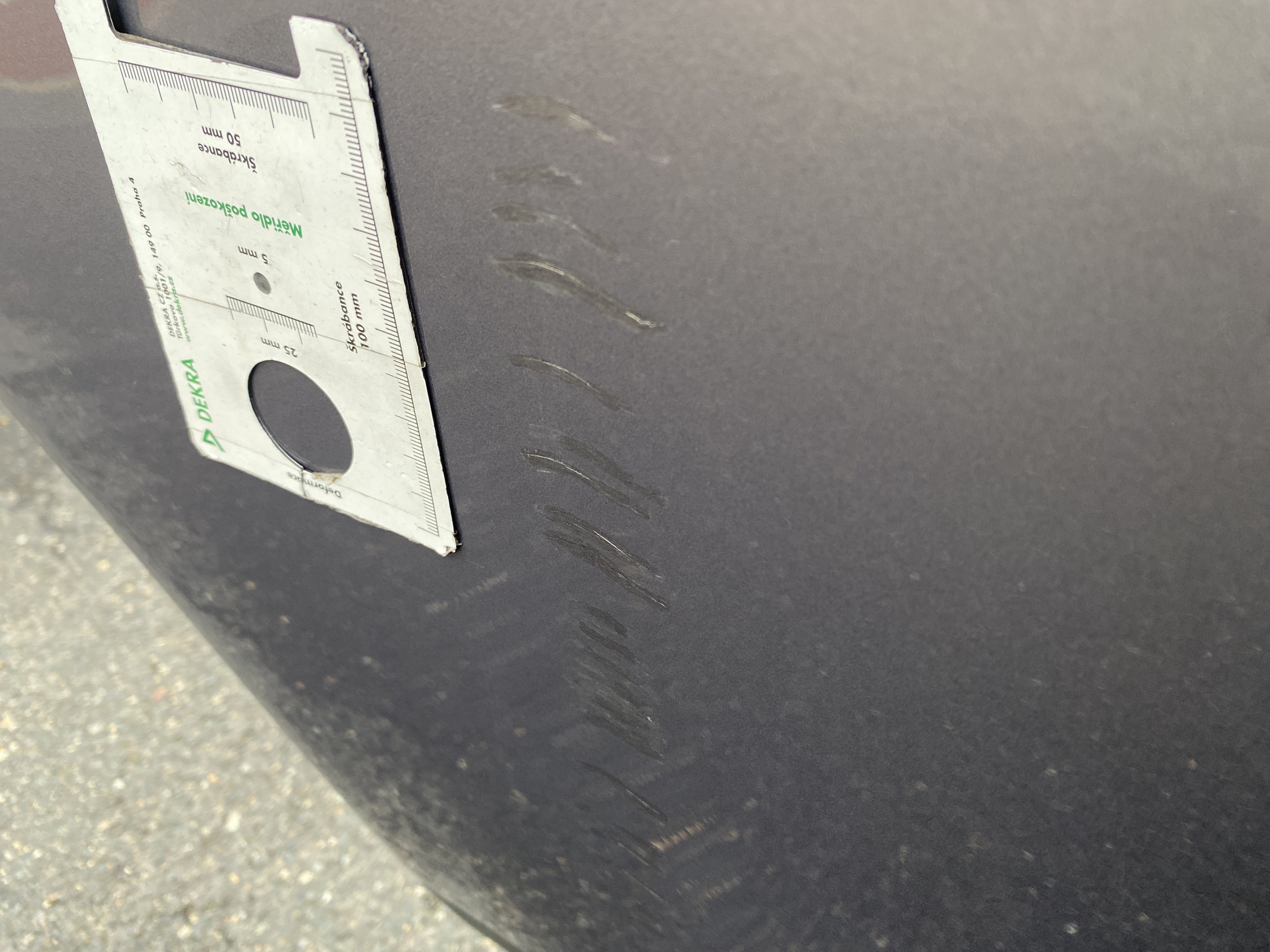Oděrky a škrábance po obvodu karosérie, přední část karosérie je poškozená od kamínků, odřený přední nárazník, odřené víko motorového prostoru, poškozenái hluková izolace motorového prostoru, odřená klika pravých zadních dveří, poškozený lem zadního nárazníku, interiér vozidla opotřeben, mírně poškozené čelní sklo,