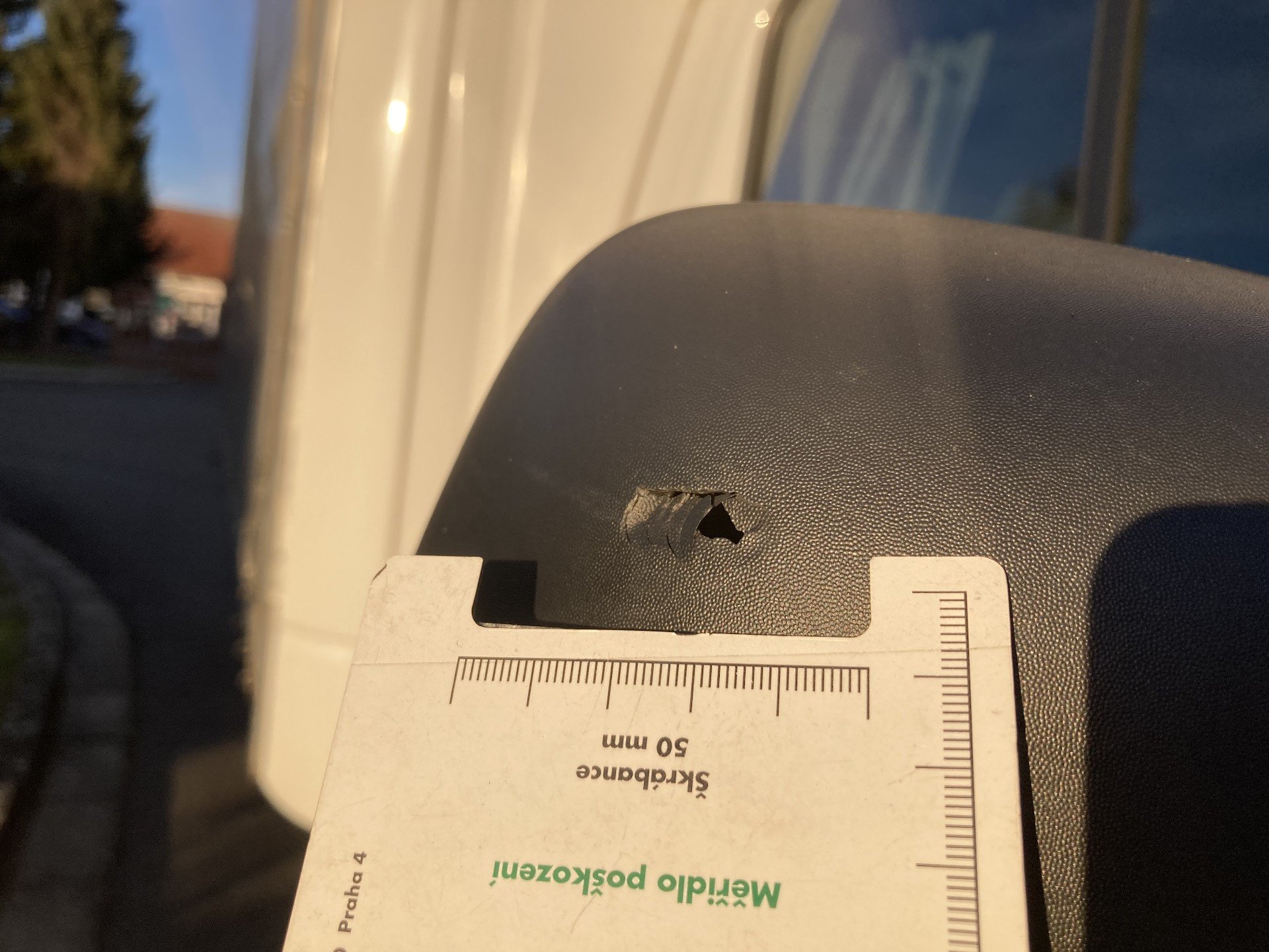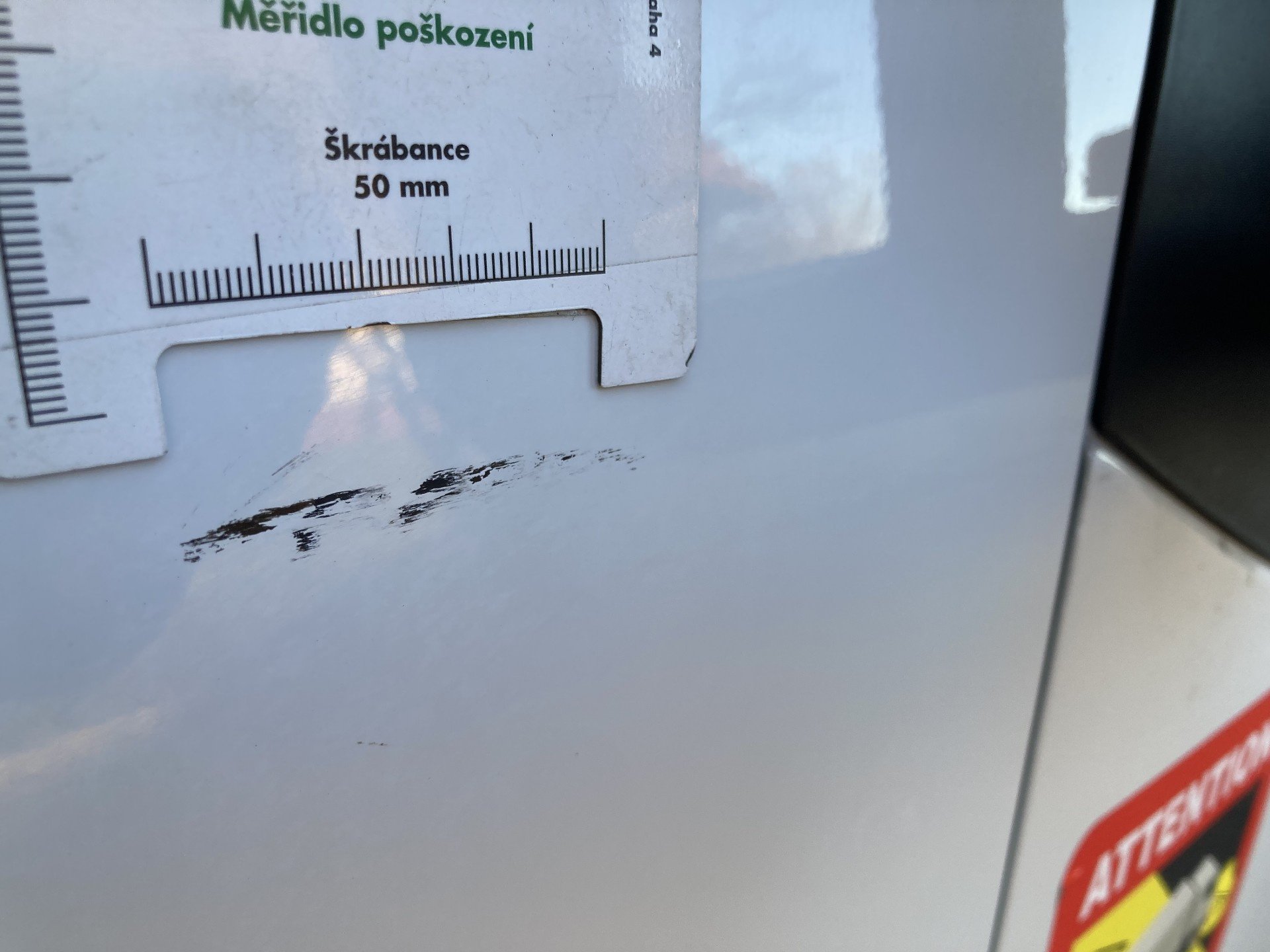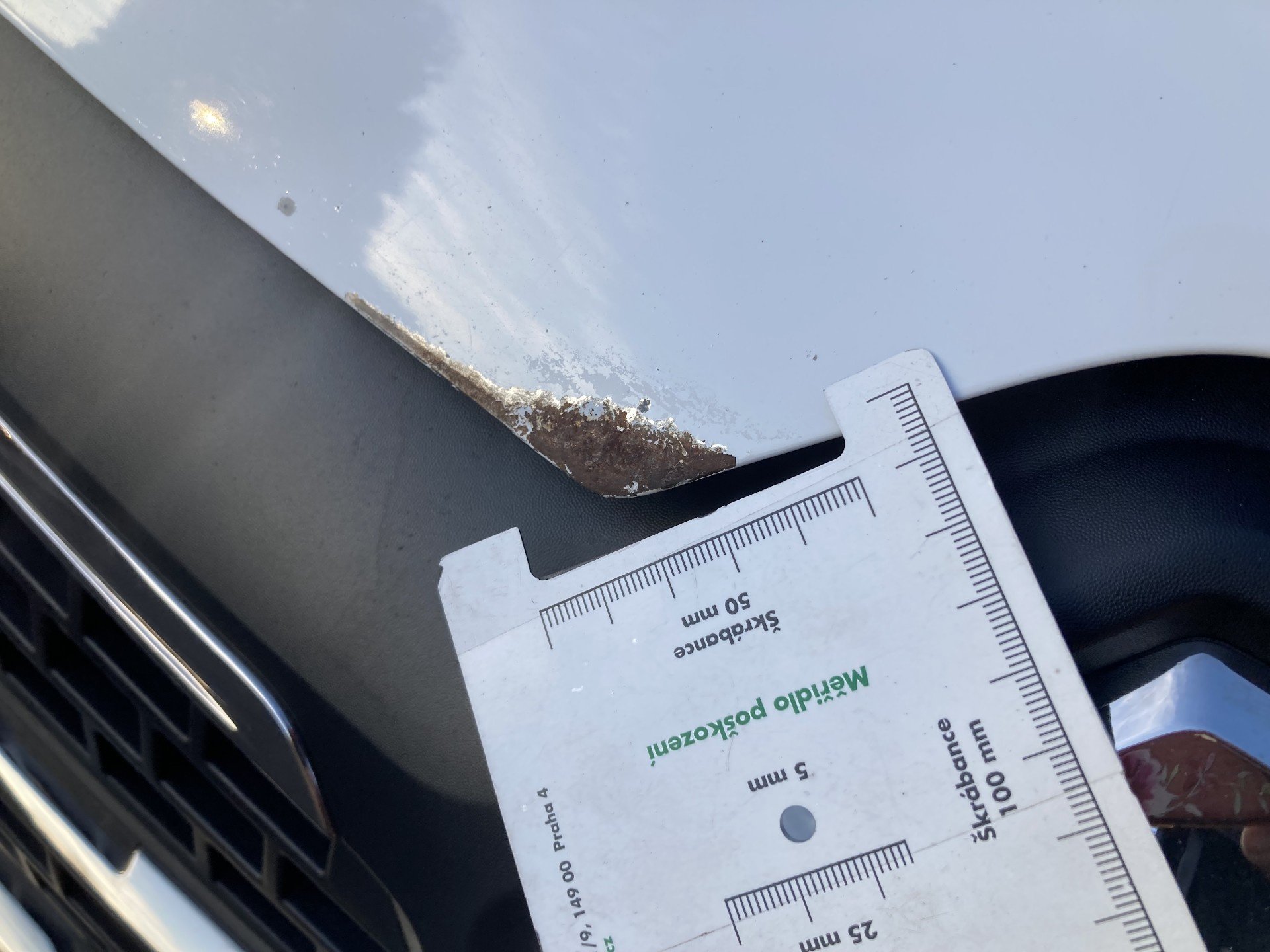 Oděrky a škrábance po obvodu karosérie, přední část karosérie je poškozená od kamínku, odřený přední nárazník, poškozen pravý přední světlomet, koroze víka motorového porstoru, poškozené čelní sklo, odřený levý přední blatník, poškozen kryt levého zpětného zrcátka, odřené levé přední dveře, deformace zadního nárazníku, poškozen kryt pravého zpětného zrcátka, palubní počítač hlásí servisní interval, svítí kontrolka motoru, interiér vozidla opotřeben, deformace nákladového porstsoru,