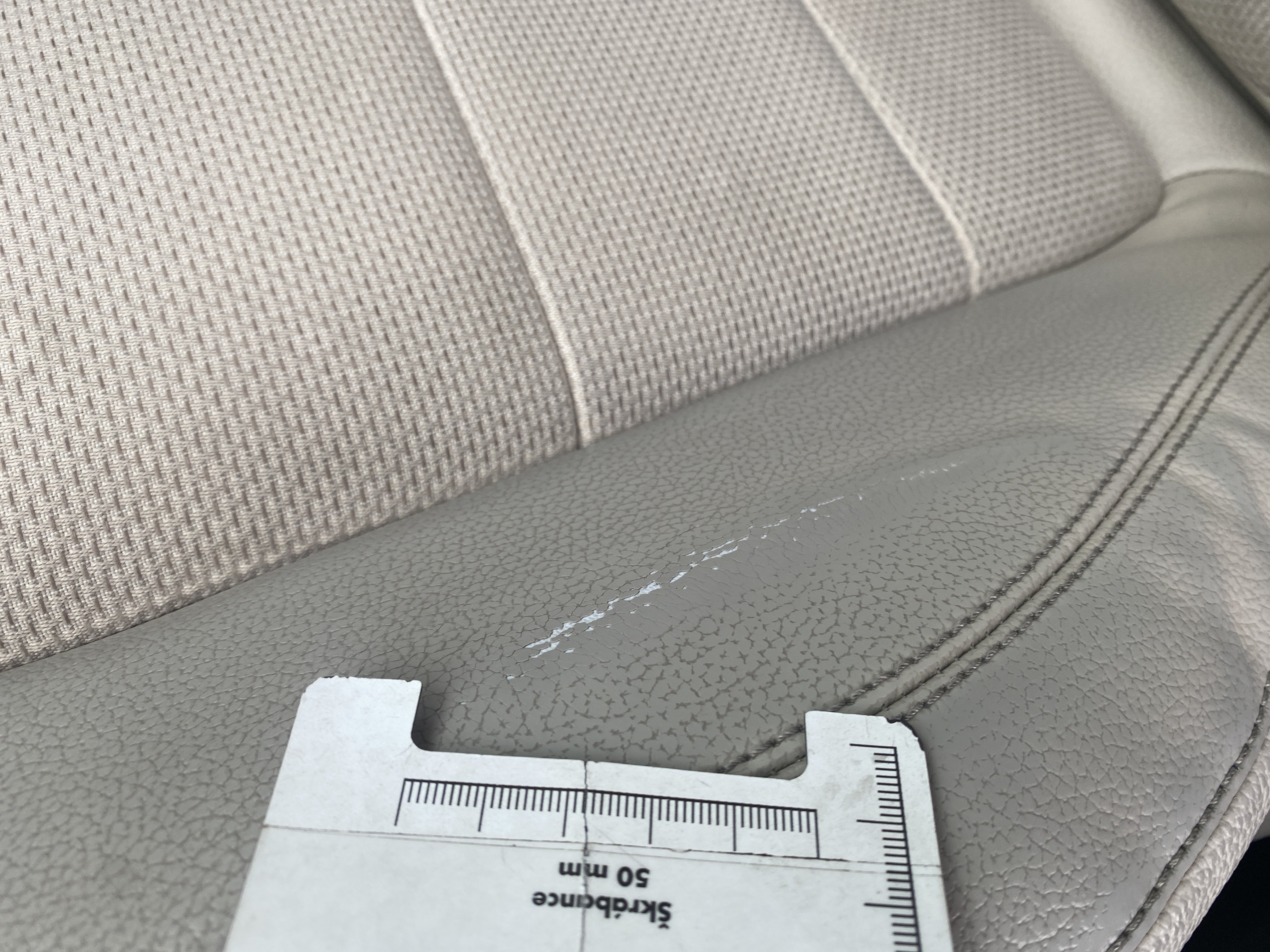 Oděrky a škrábance po obvodu karosérie, přední část karosérie je poškozená od kamínků, odřený pravý přední blatník, odřený přední nárazník, odřené víko motorového prostoru, mírně odřené levé zadní dveře, odřený zadní nárazník, odřený pravý zadní blatník, mírně odřený kryt pravého zpětného zrcátka, poškozen potah levého předního sedadla, nefuknční podsvícení ventilátoru přístrojové desky, interiér vozidla opotřeben,