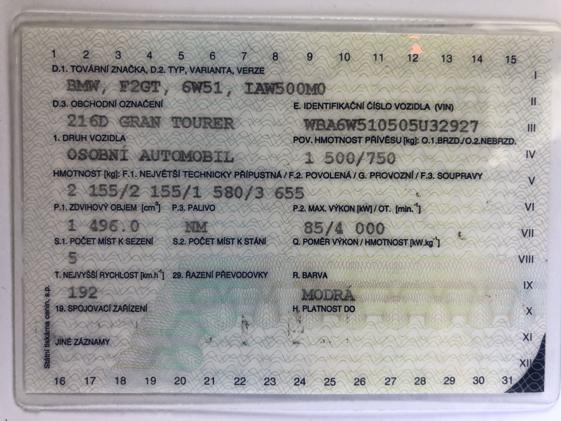 | Brand and type | BMW 216d Gran Tourer - Luxury Line - Automat, Diesel 85 kW |