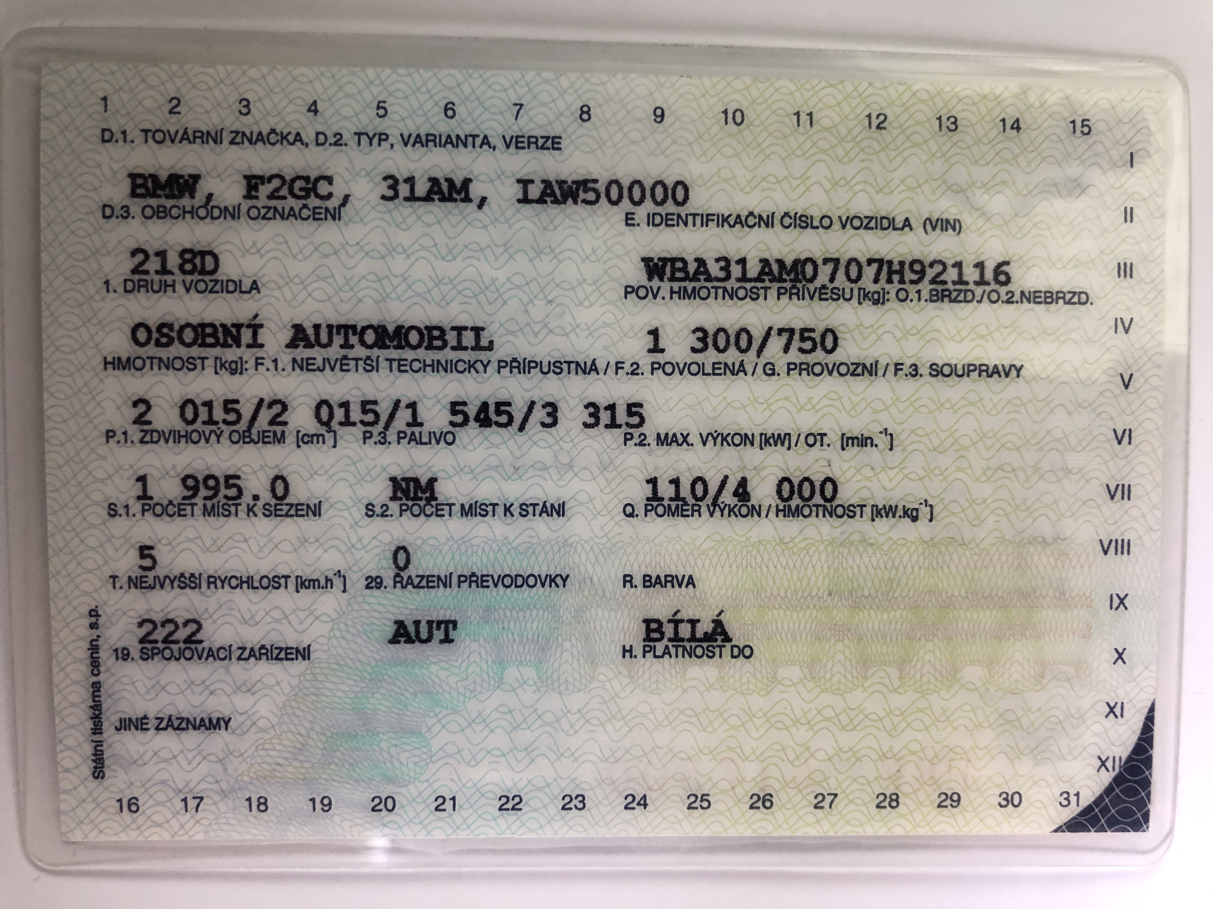 | Brand and type | BMW 218d Gran Coupé - Automat, Diesel 110 kW |