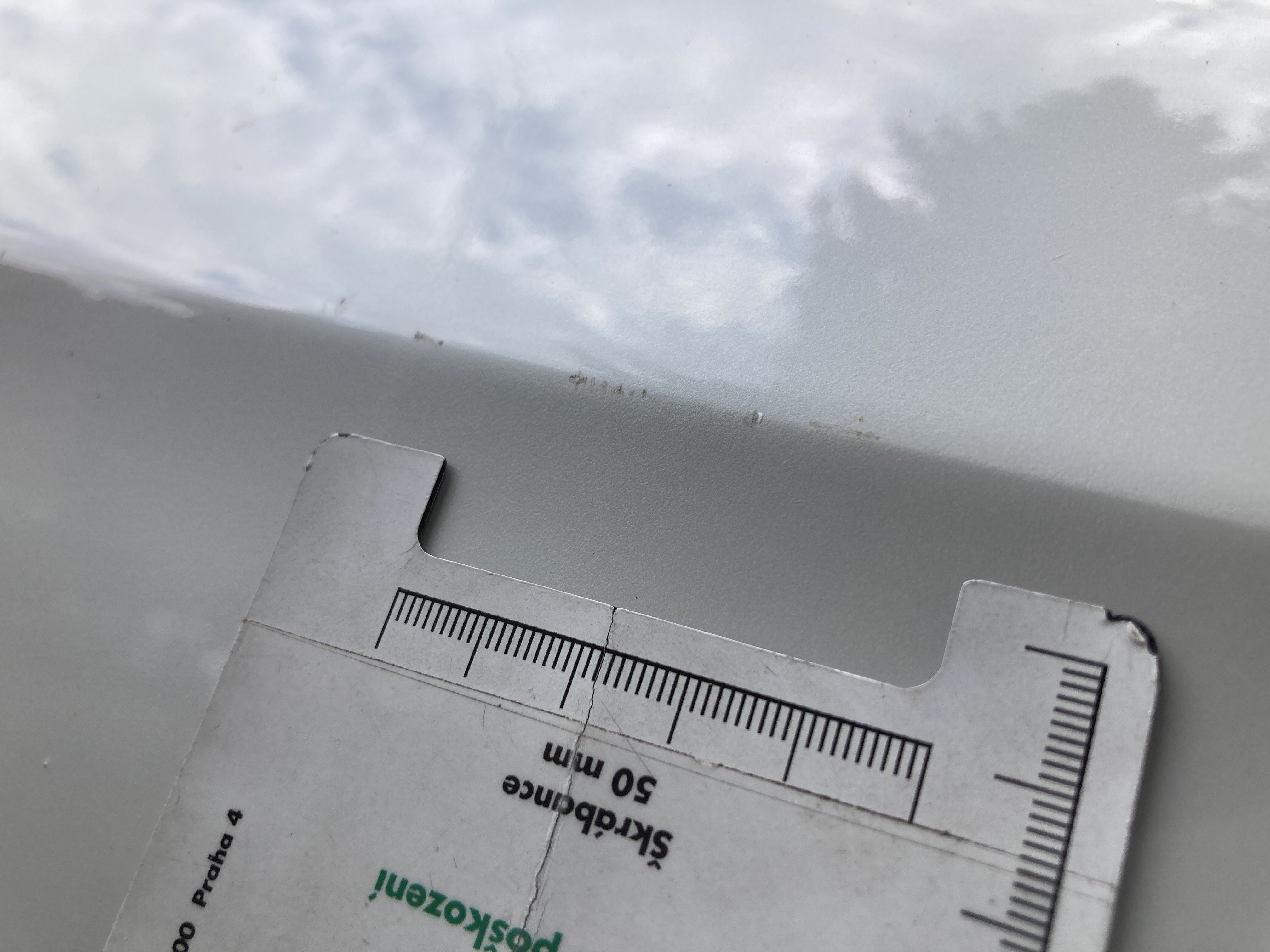 Oděrky a škrábance po obvodu karosérie, přední část karosérie je poškozená od kamínků, odřený přední nárazník, mírně odřené levé přední dveře, mírně odřené levé zadní dveře, mírně odřený pravý přední blatník, interiér vozidla opotřeben, karosérie nese stopy po předchozí opravě,