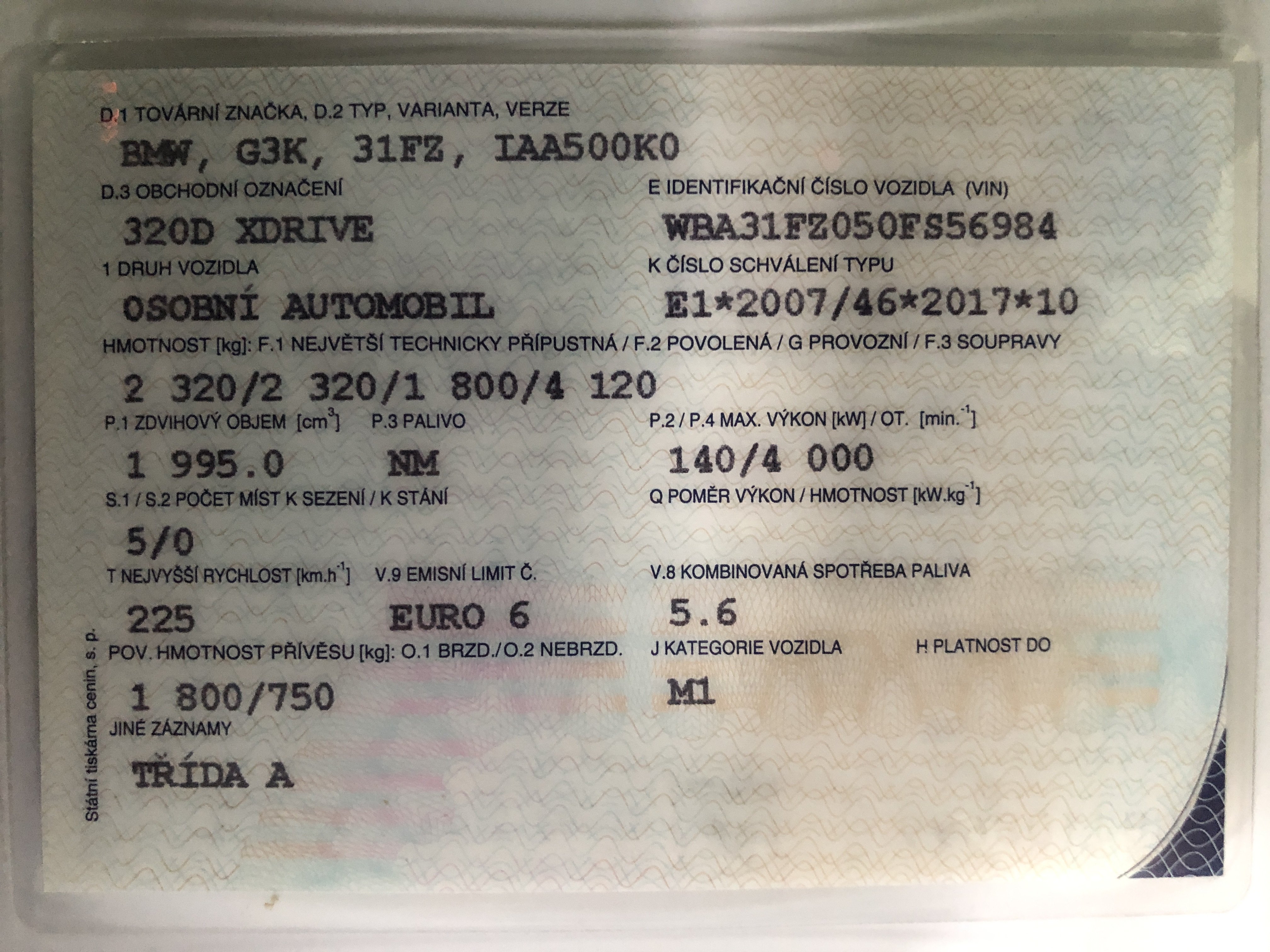 | Brand and type | BMW 320d xDrive Touring M-Sport - Automat, Diesel 140 kW |