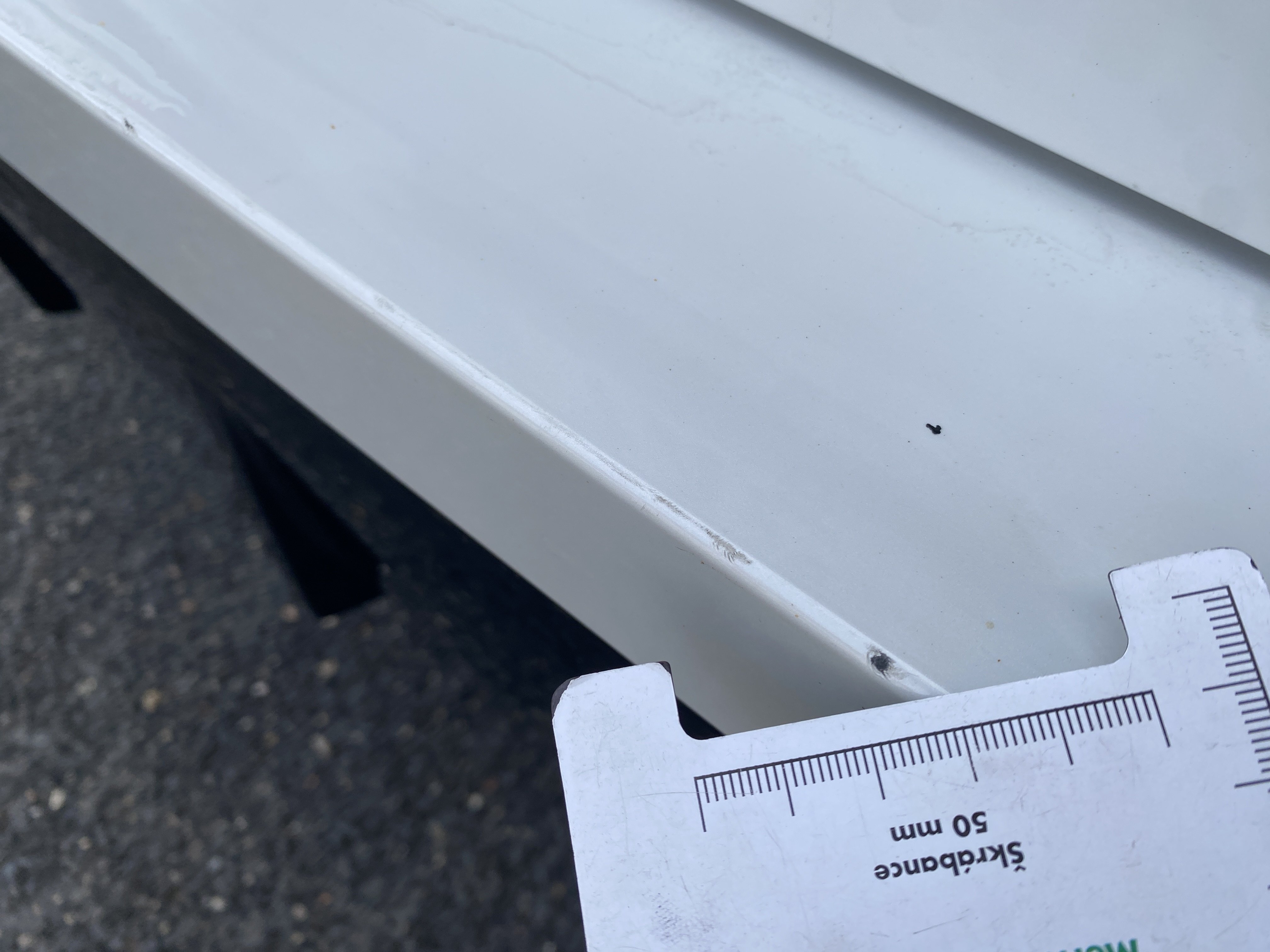 Oděrky a škrábance po obvodu karosérie, přední část karosérie je poškozená od kamínků, odřený přední nárazník, mírně odřené levé zadní dveře, odřený zadní nárazník, odřené pravé přední dveře, mírně odřený pravý práh, nefunkční parkovací senzory, interiér vozidla opotřeben,