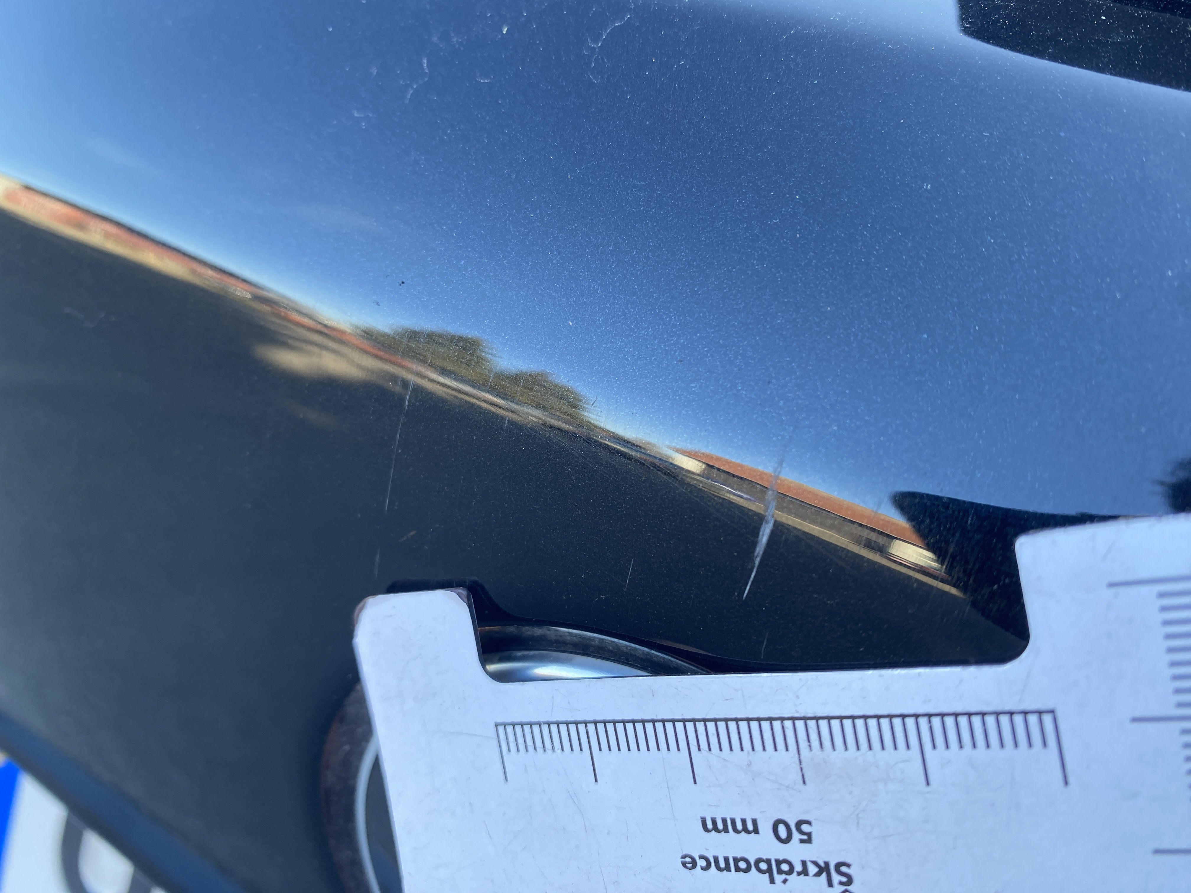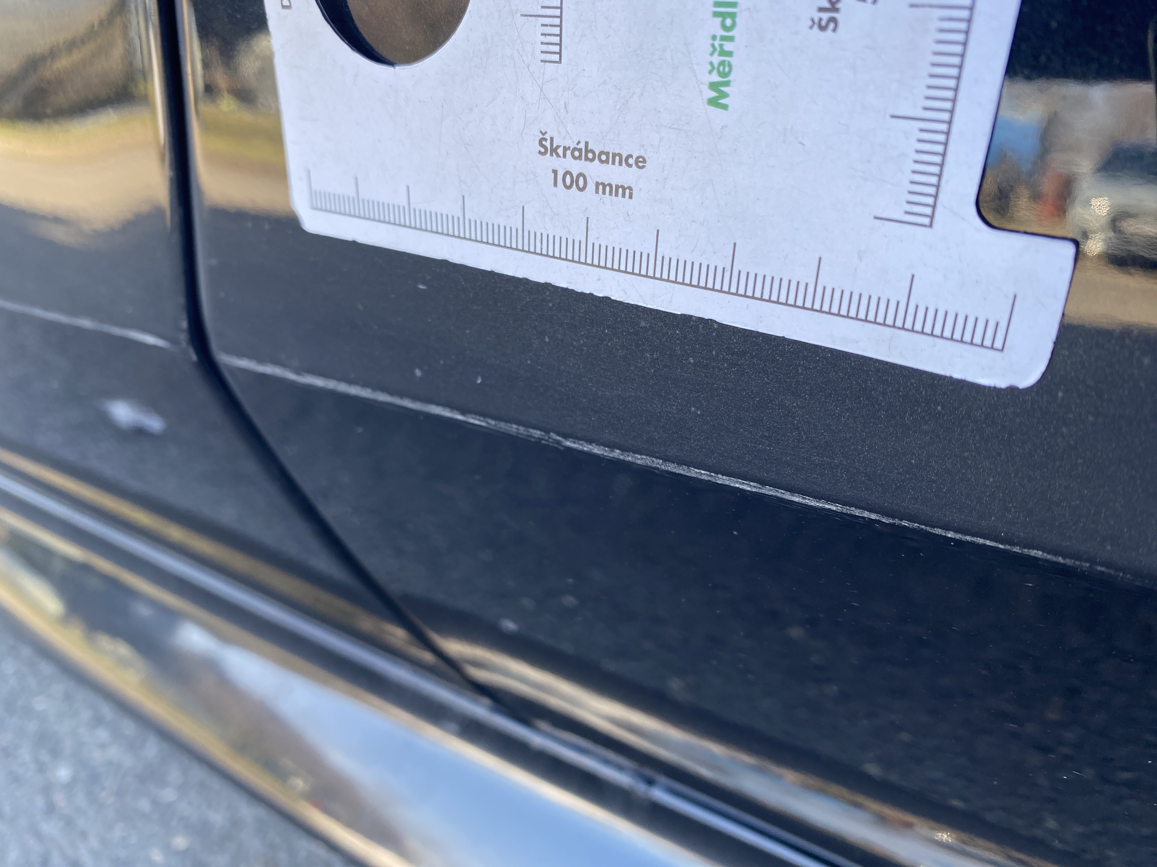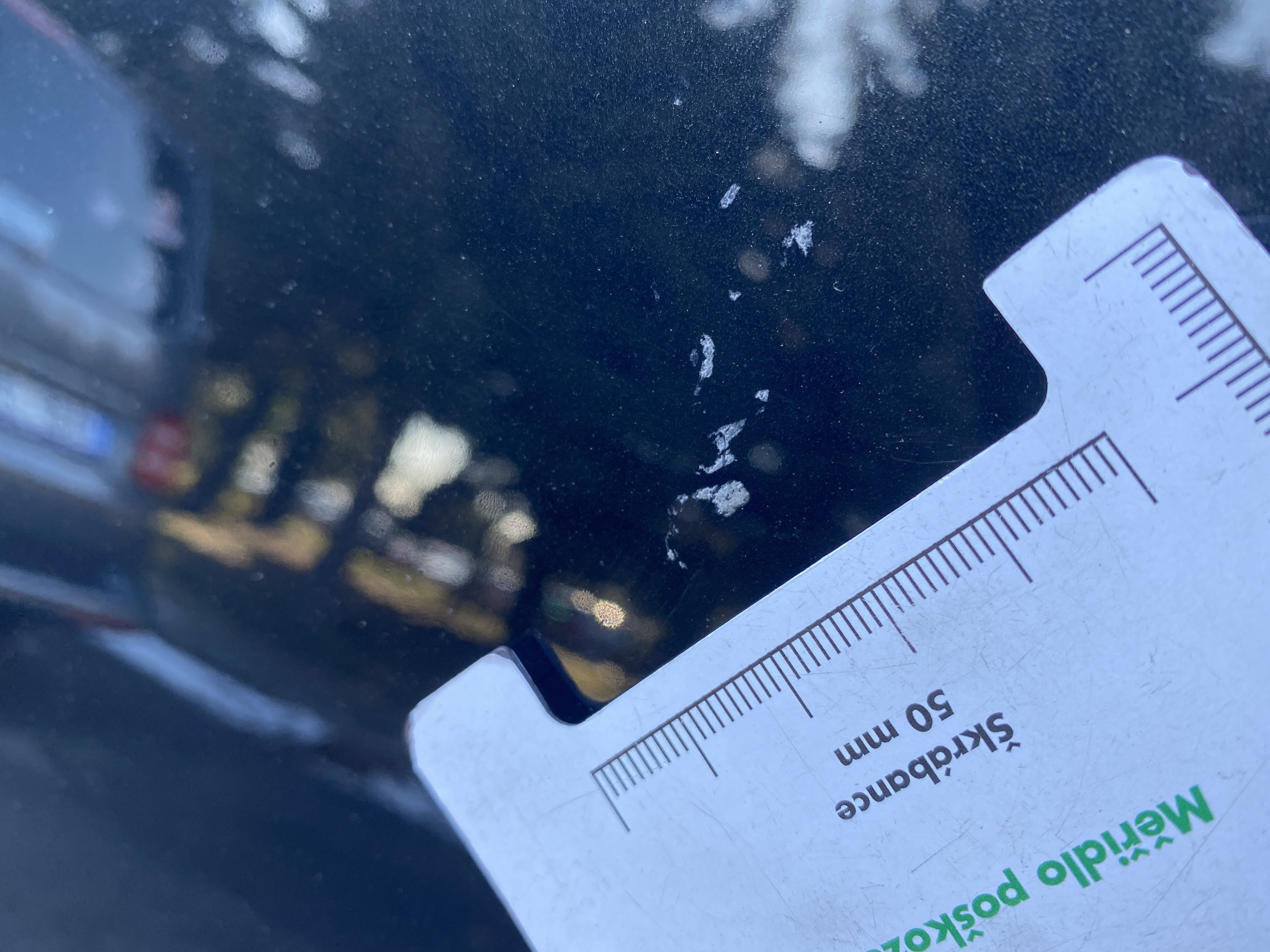 Oděrky a škrábance po obvodu karosérie, přední část karosérie je poškozená od kamínků, mírně odřené levé přední dveře, mírně odřené levé zadní dveře, odřený zadní nárazník, mírně odřené pravé zadní dveře, mírně odřené pravé přední dveře, poškozen potah levého předního sedadla, poškozené čelní sklo, interiér vozidla opotřeben,
