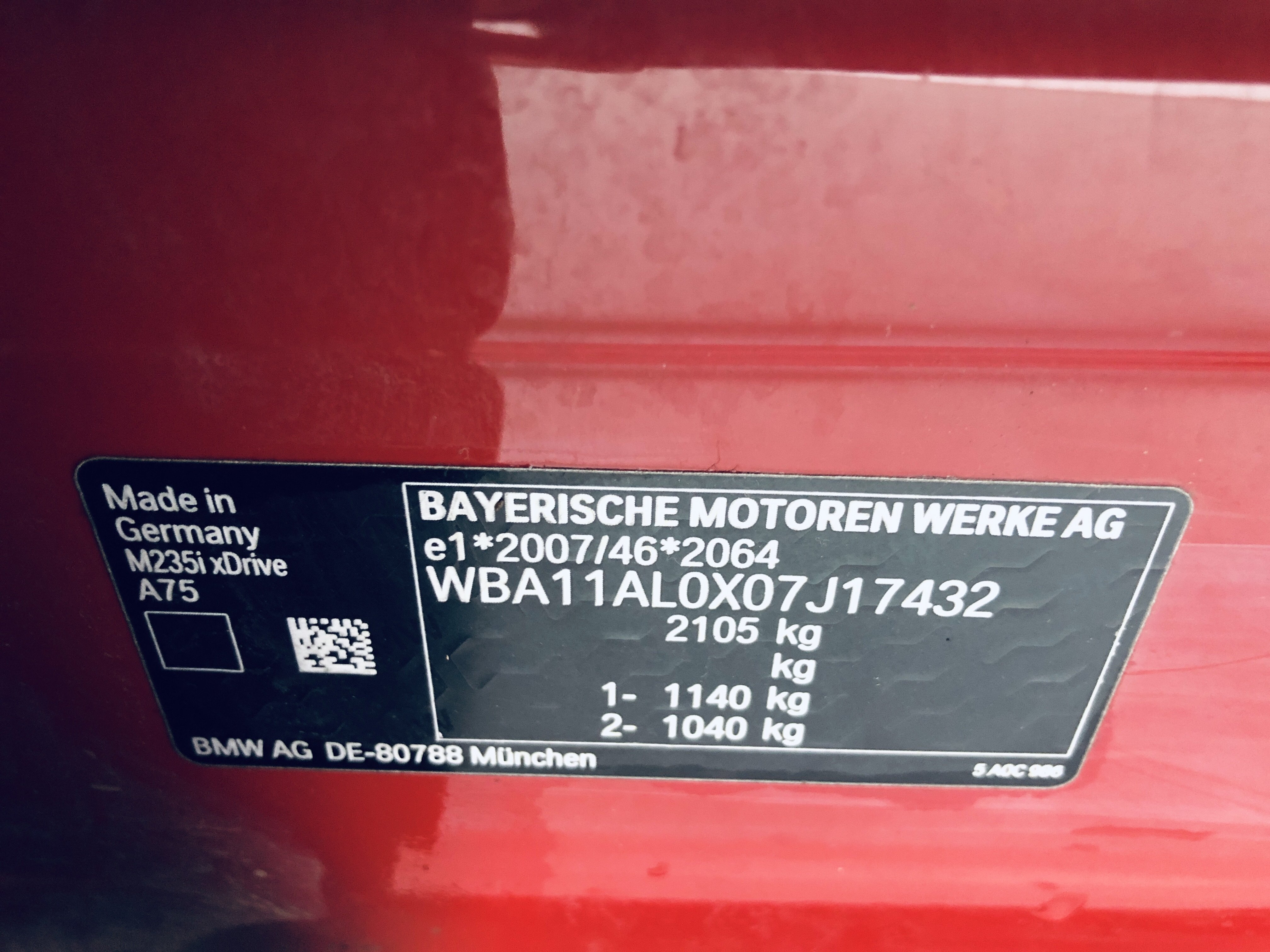 | VIN | WBA11AL0X07J17432 |