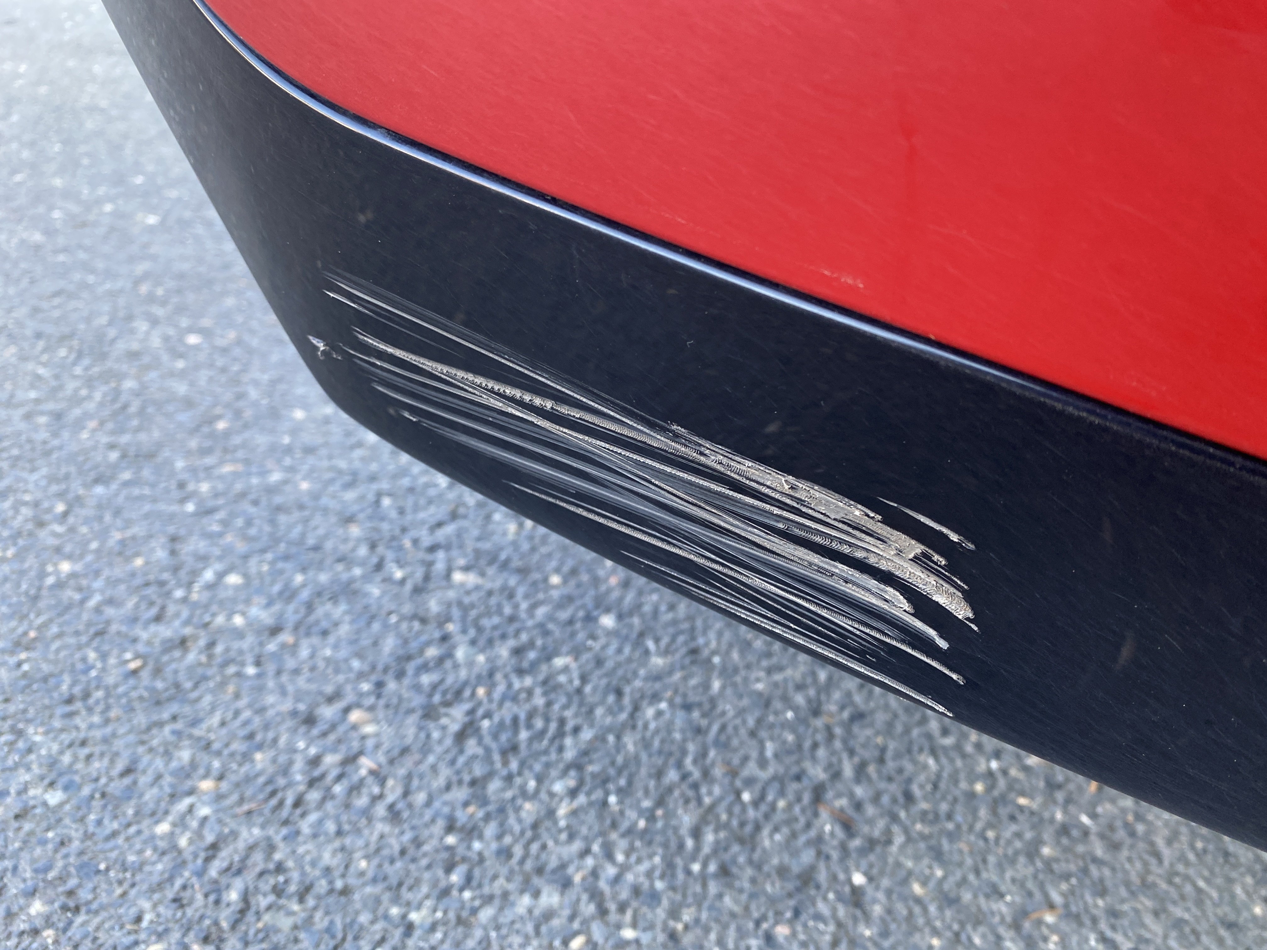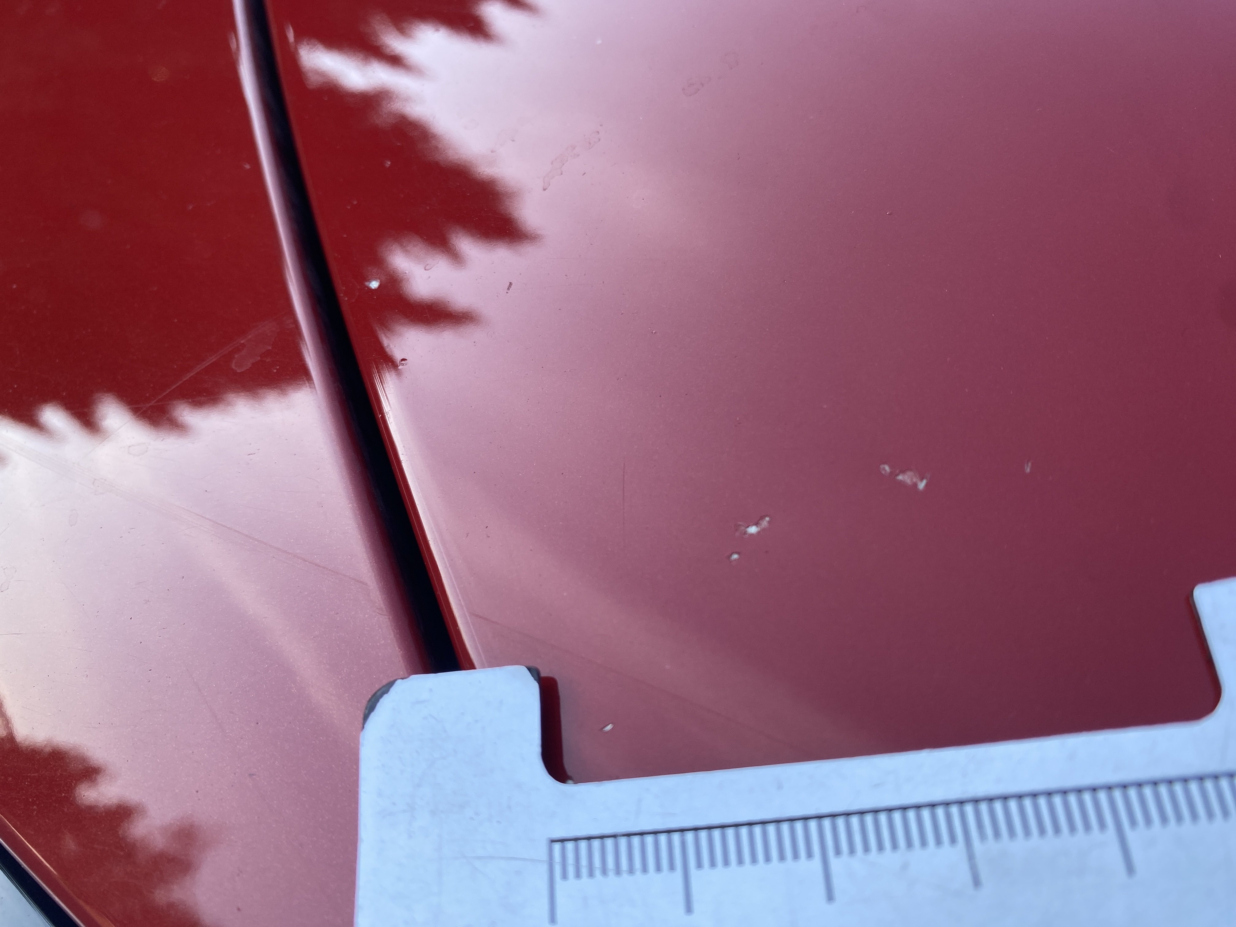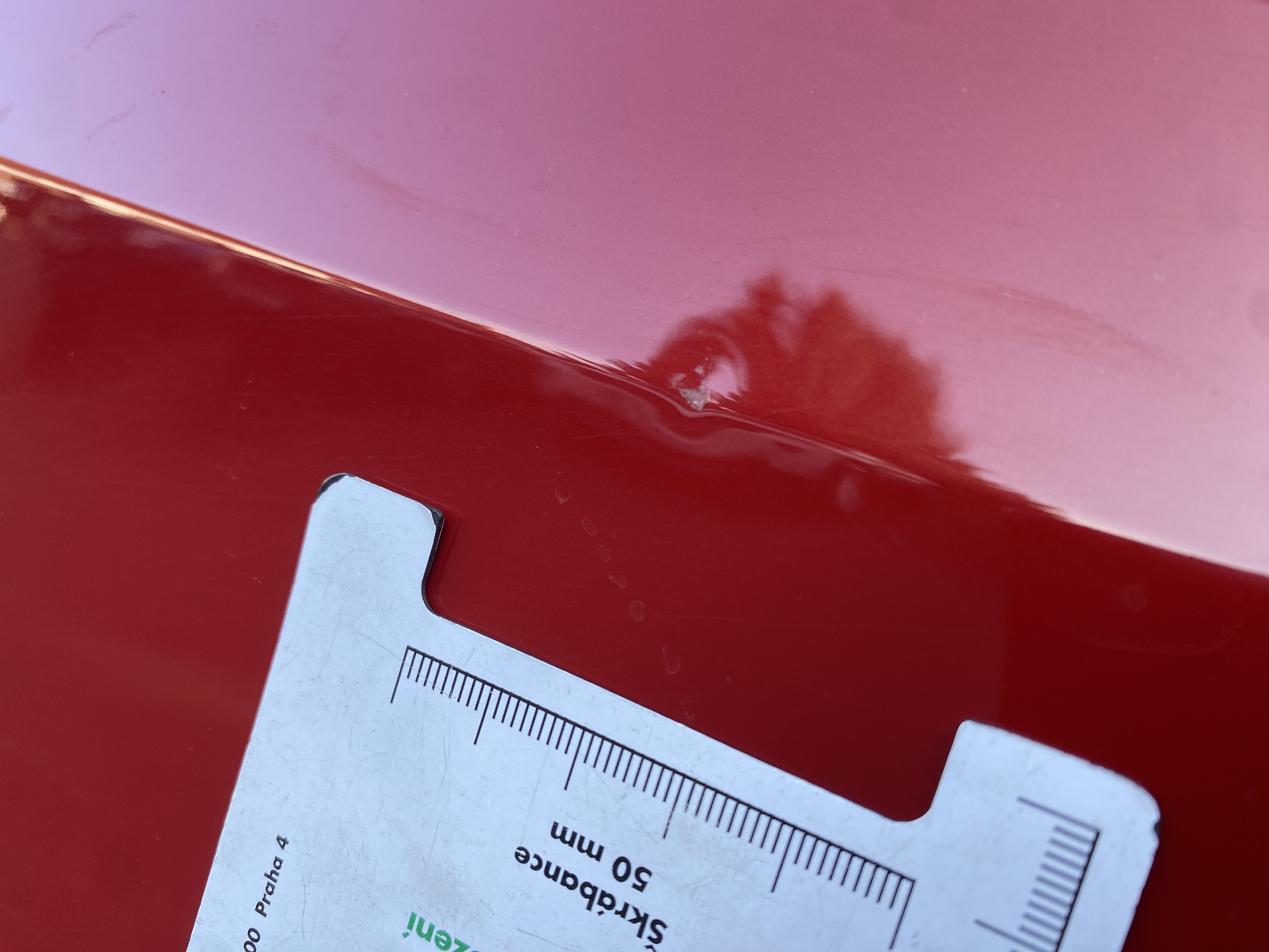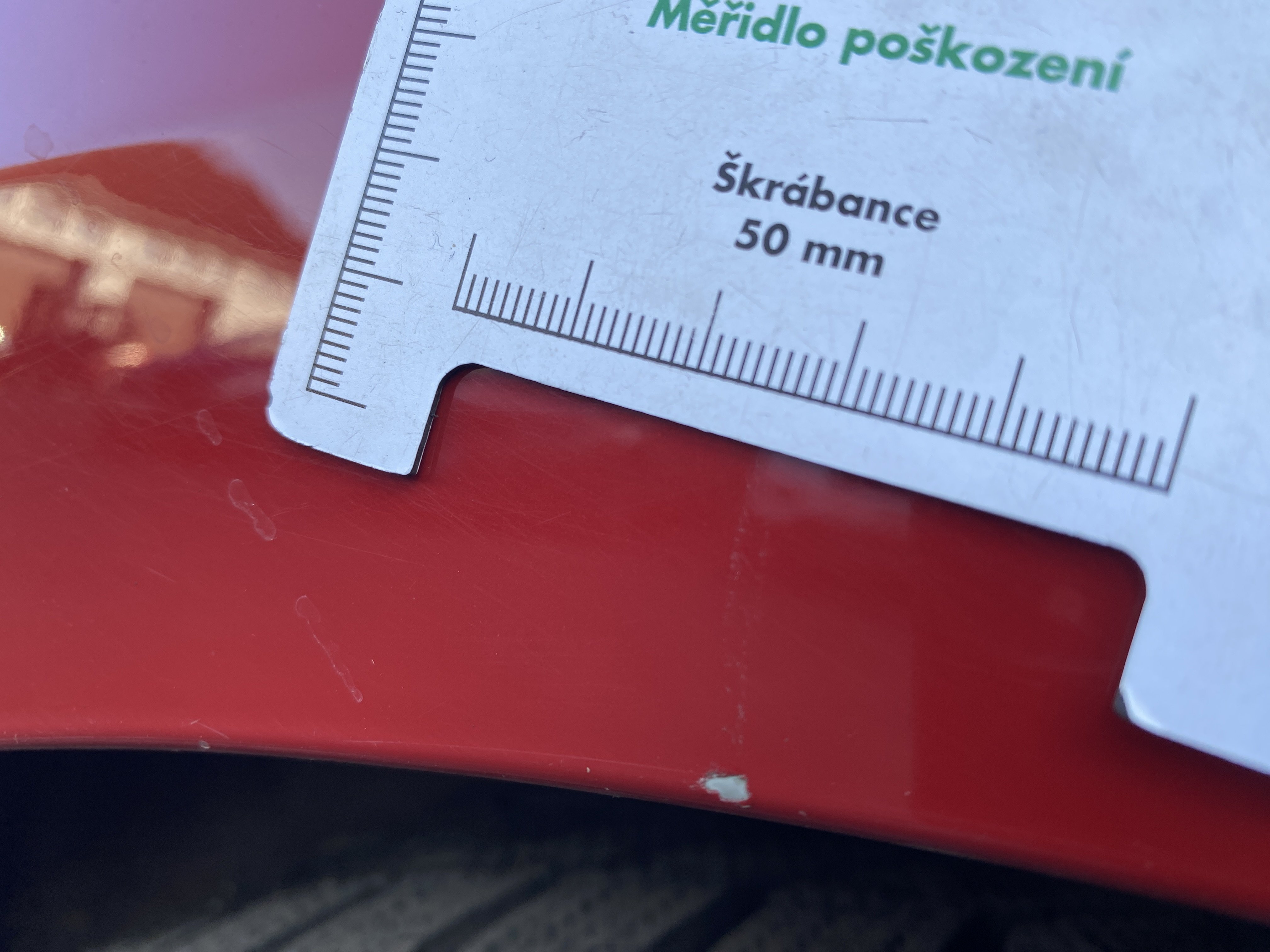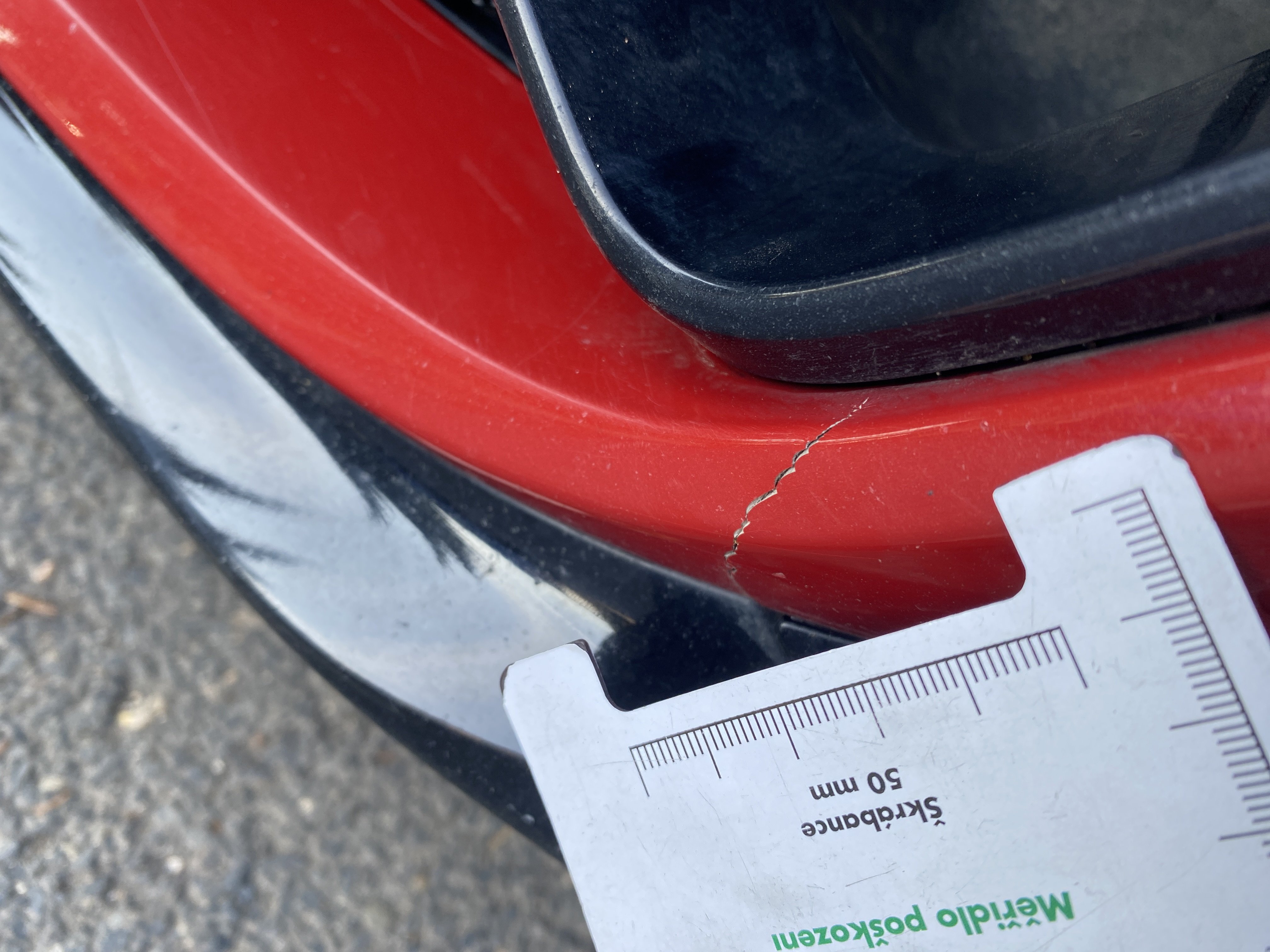 Oděrky a škrábance po obvodu karosérie, přední část karosérie je poškozená od kamínků, odřený přední nárazník, poškozen přední nárazník, mírně odřené levé přední dveře, odřený zadní nárazník, odřený lem pravého zadního blatníku, mírně promáčklé pravé přední dveře - jamka, mírně poškozené čelní sklo, interiér vozidla opotřeben,