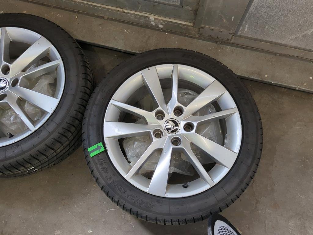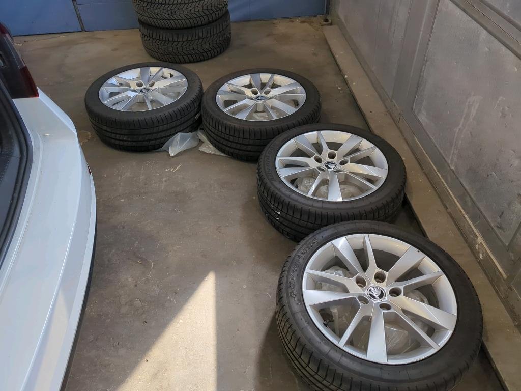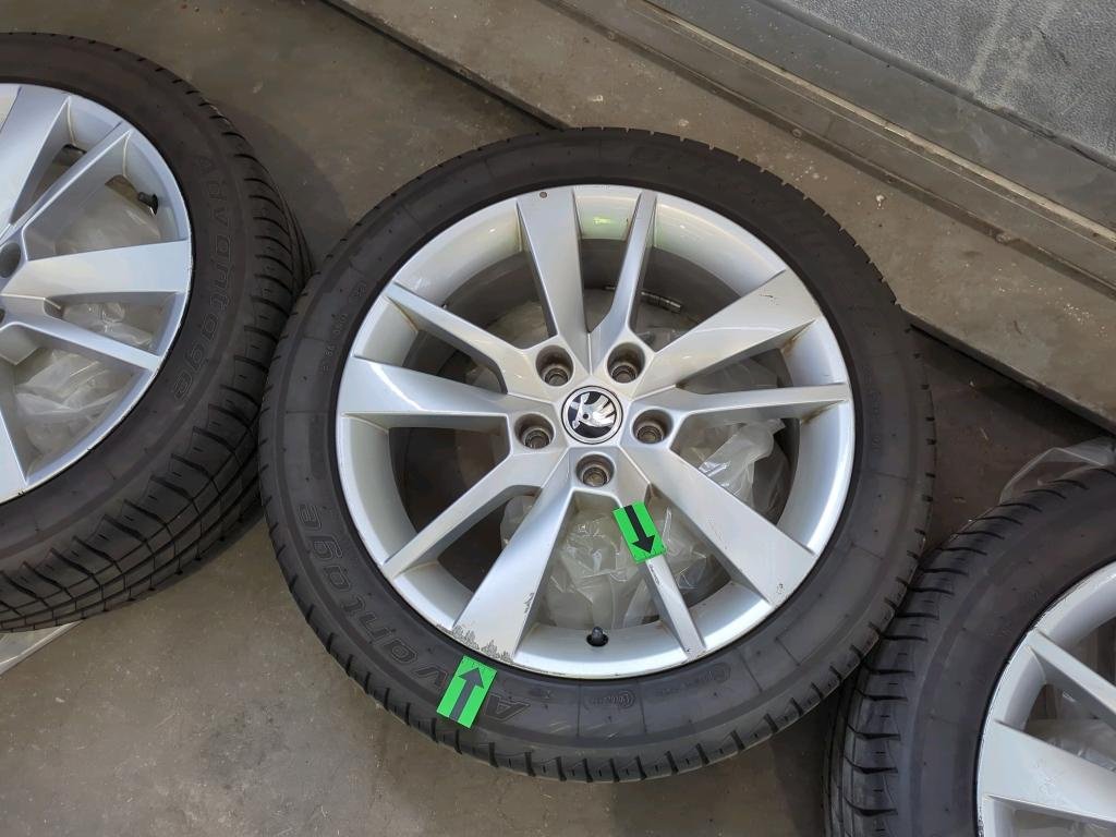 4x letné pneumatiky na diskoch, uložené vo vozidle.