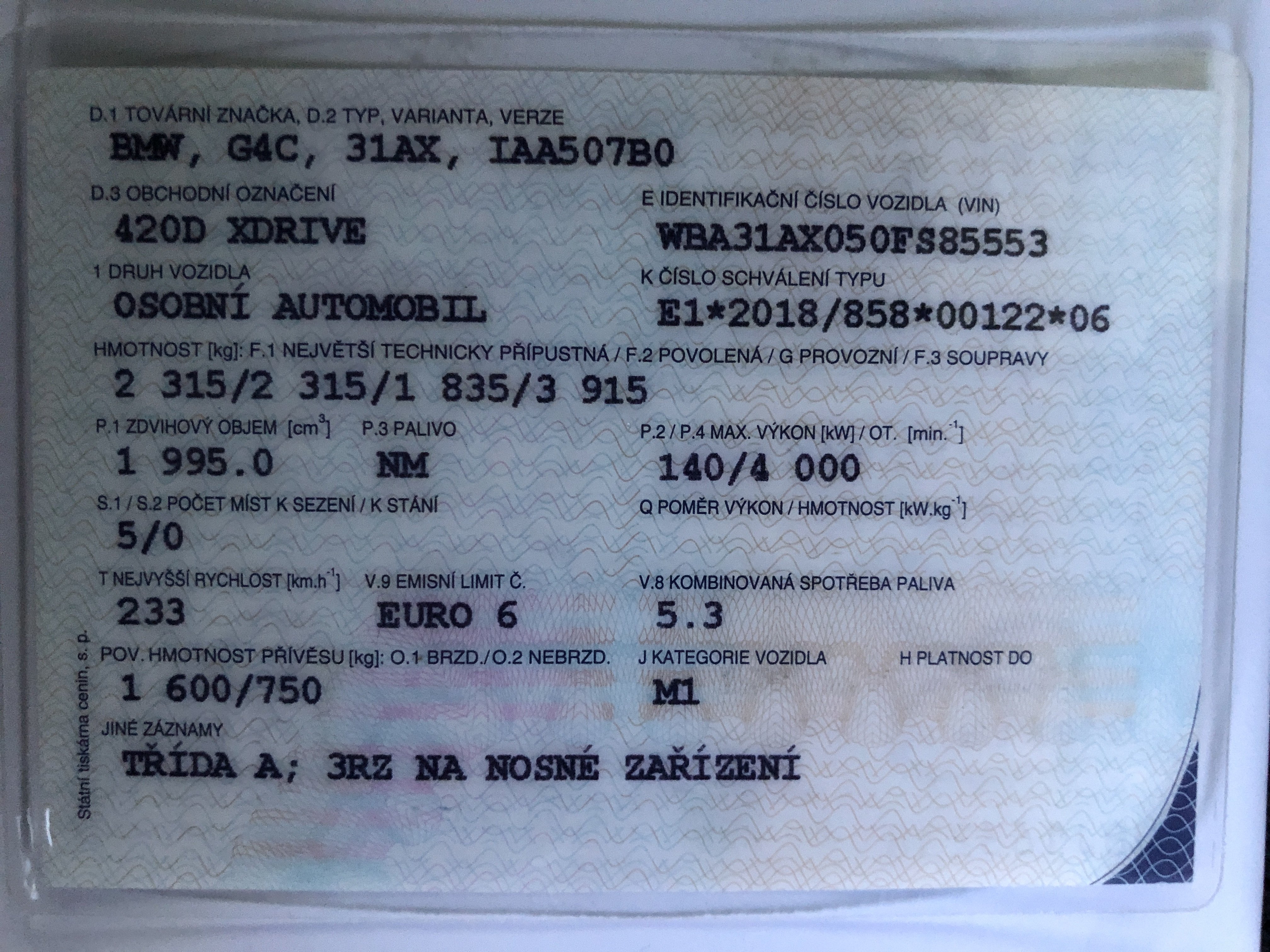 | VIN | WBA31AX050FS85553 |