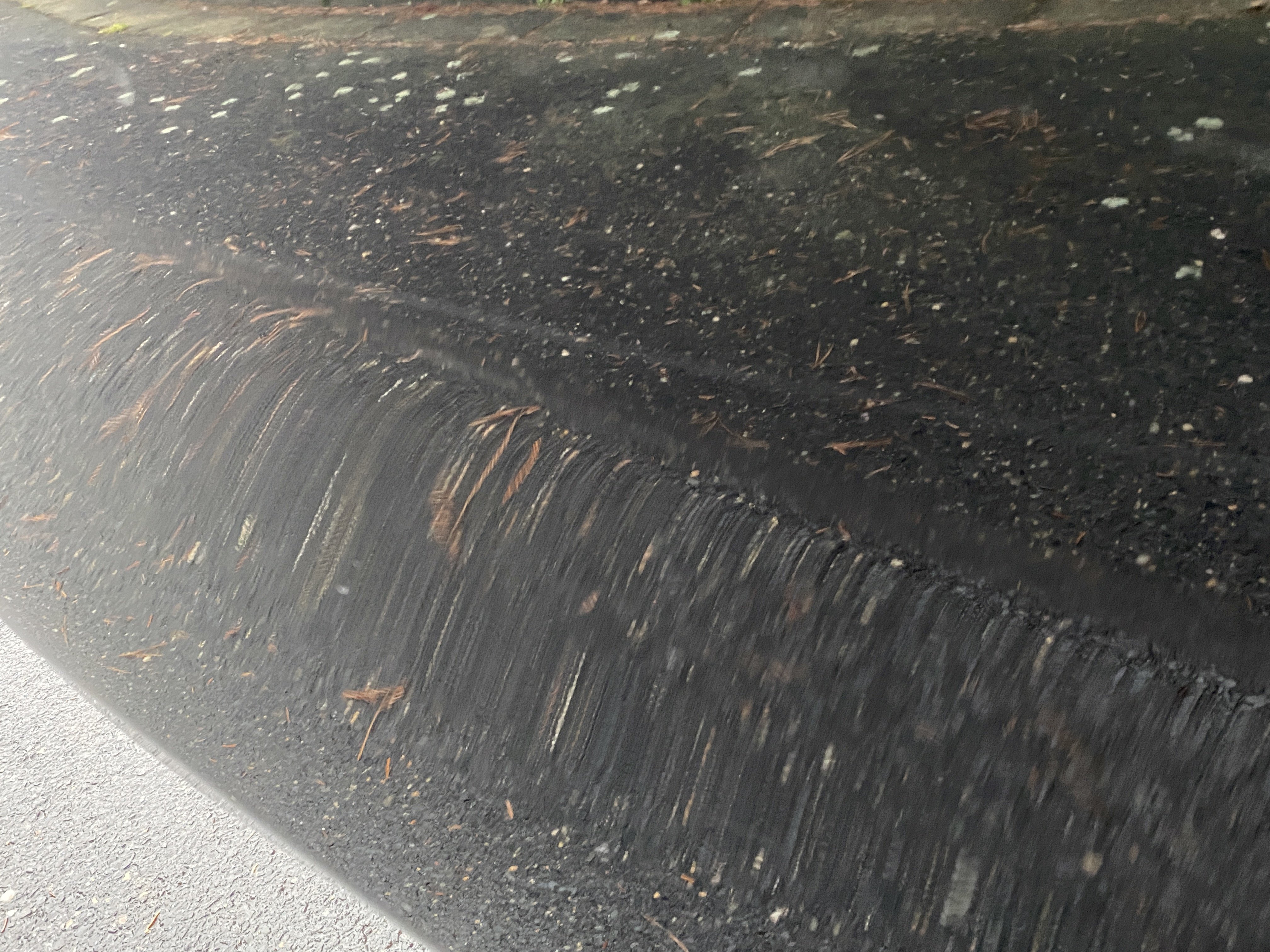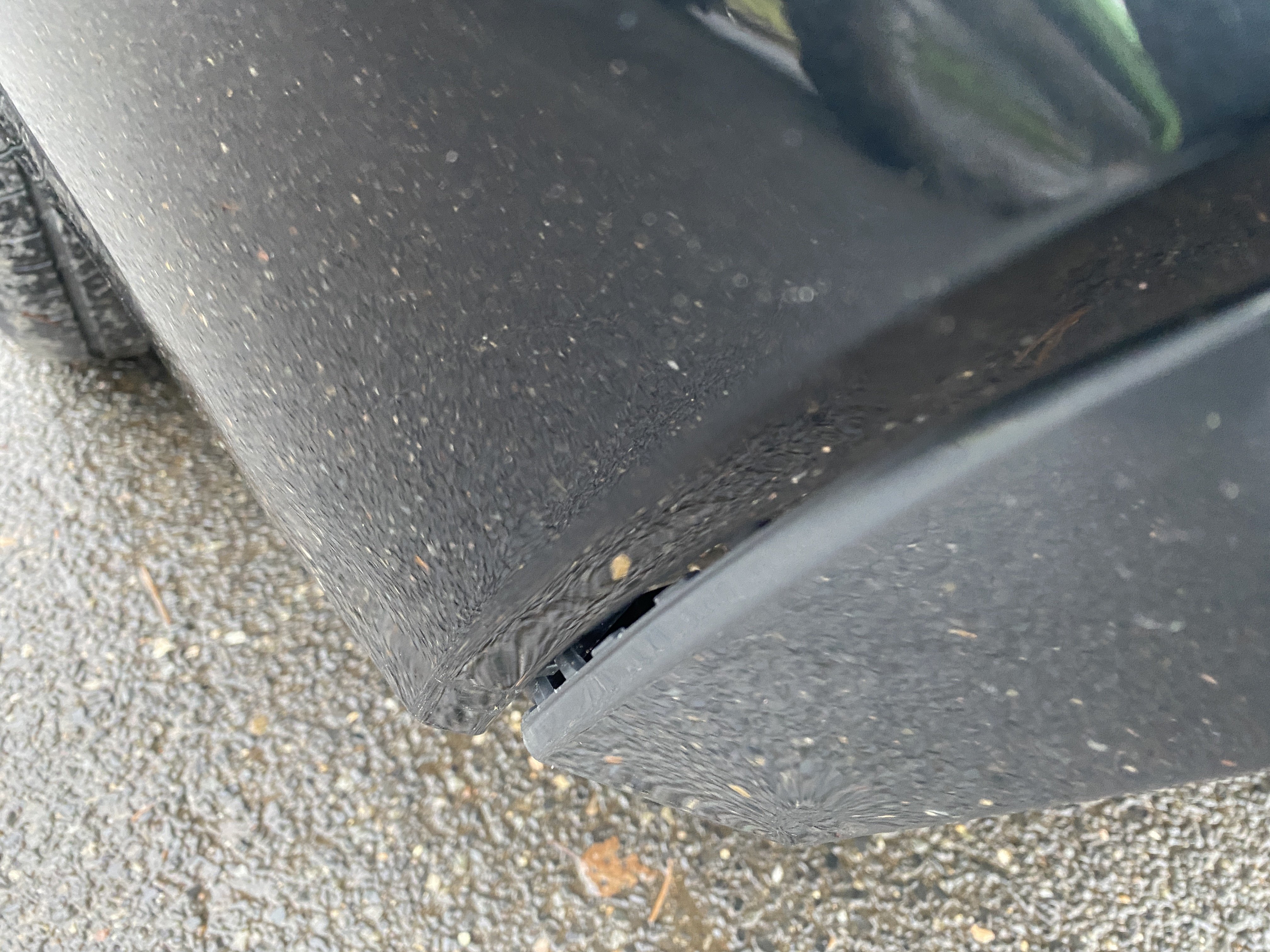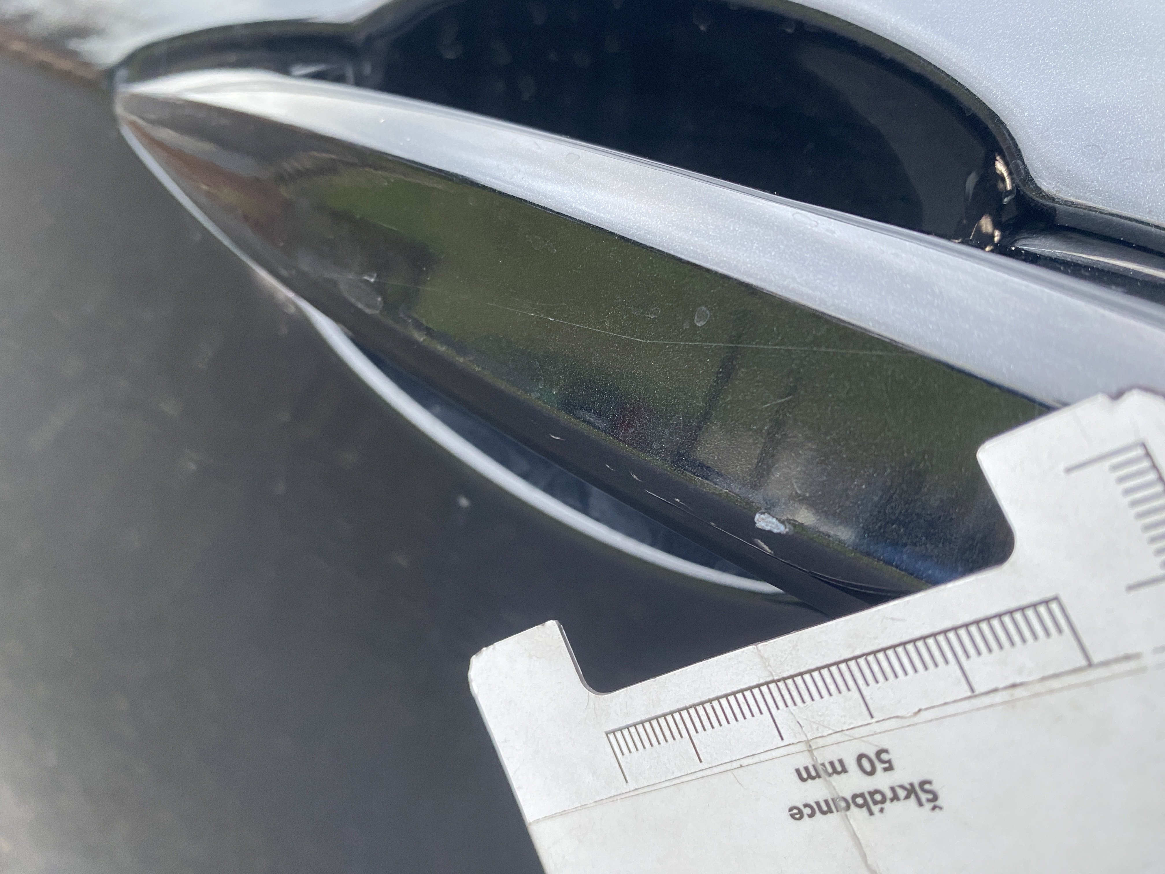 Oděrky a škrábance po obvodu karosérie, přední část karosérie je poškozená od kamínků, mírně odřený kryt levého zpětného zrcátka, odřená hrana levých zadních dveří, odřený zadní nárazník, mírně odřený pravý zadní blatník, odřené pravé zadní dveře, chybí plastová krytka zadního sterače, odřené pravé přední dveře, odřený kryt pravého zpětného zrcátka, promáčklé plato střechy - jamky, poškozené čelní sklo, karosérie nese stopy po předchozí opravě, interiér vozidla opotřeben,