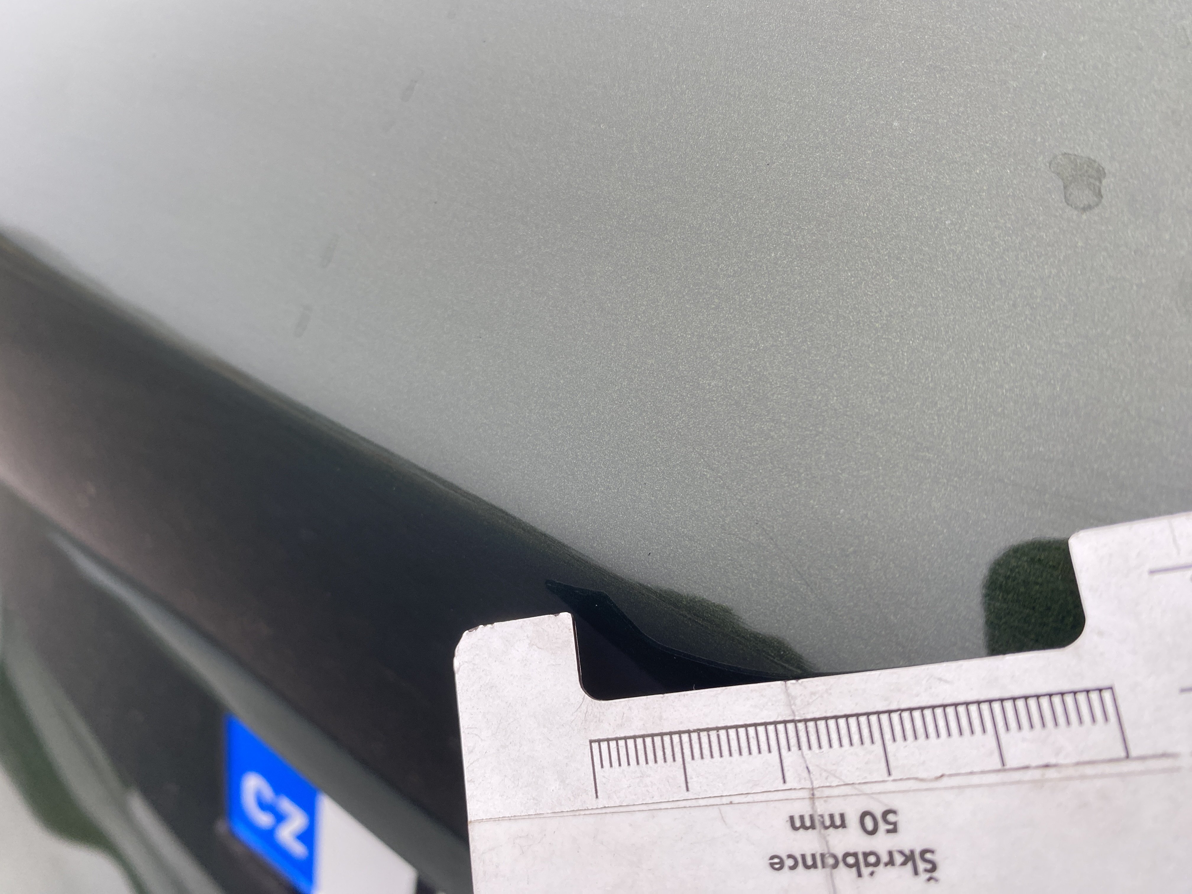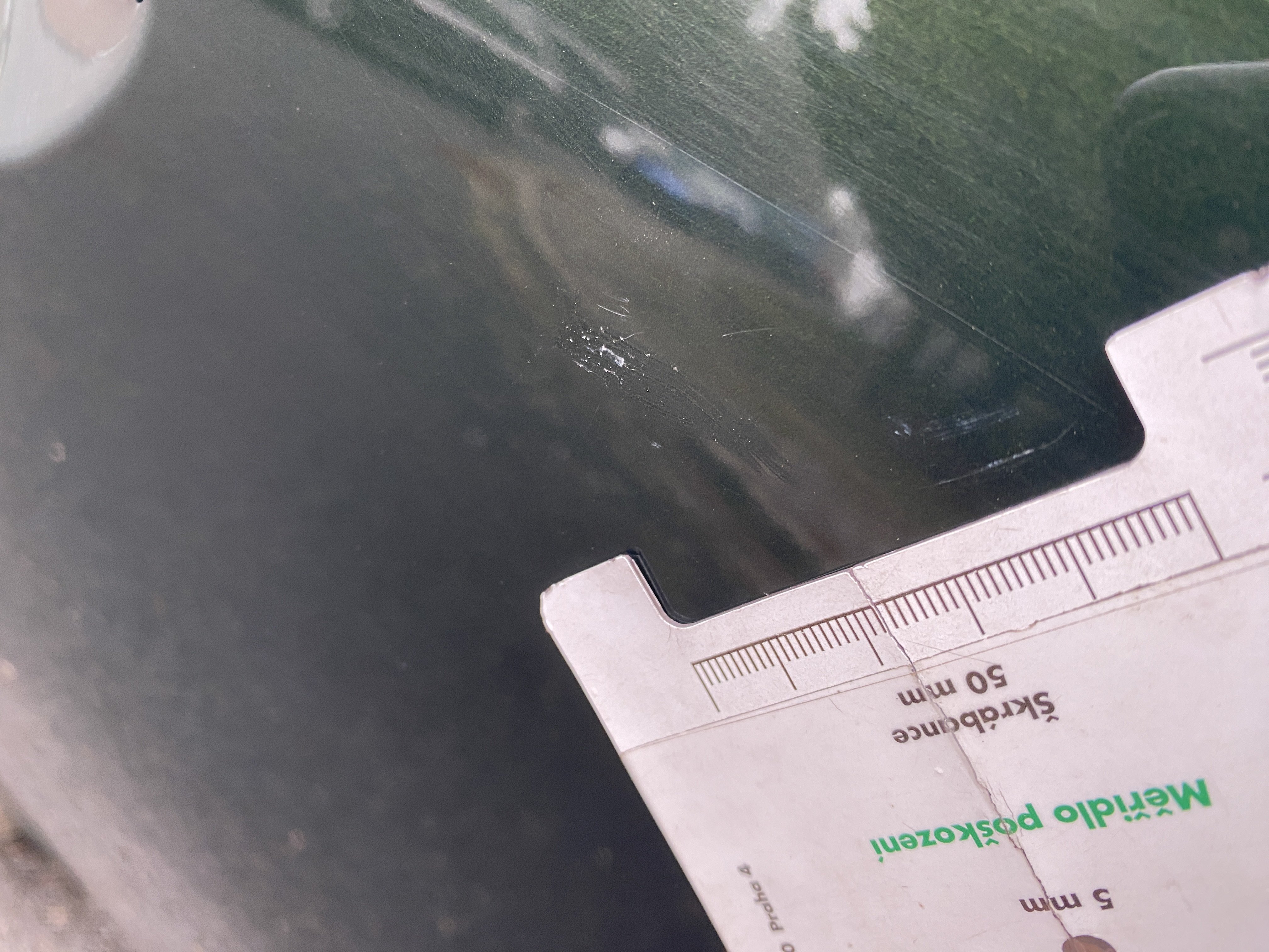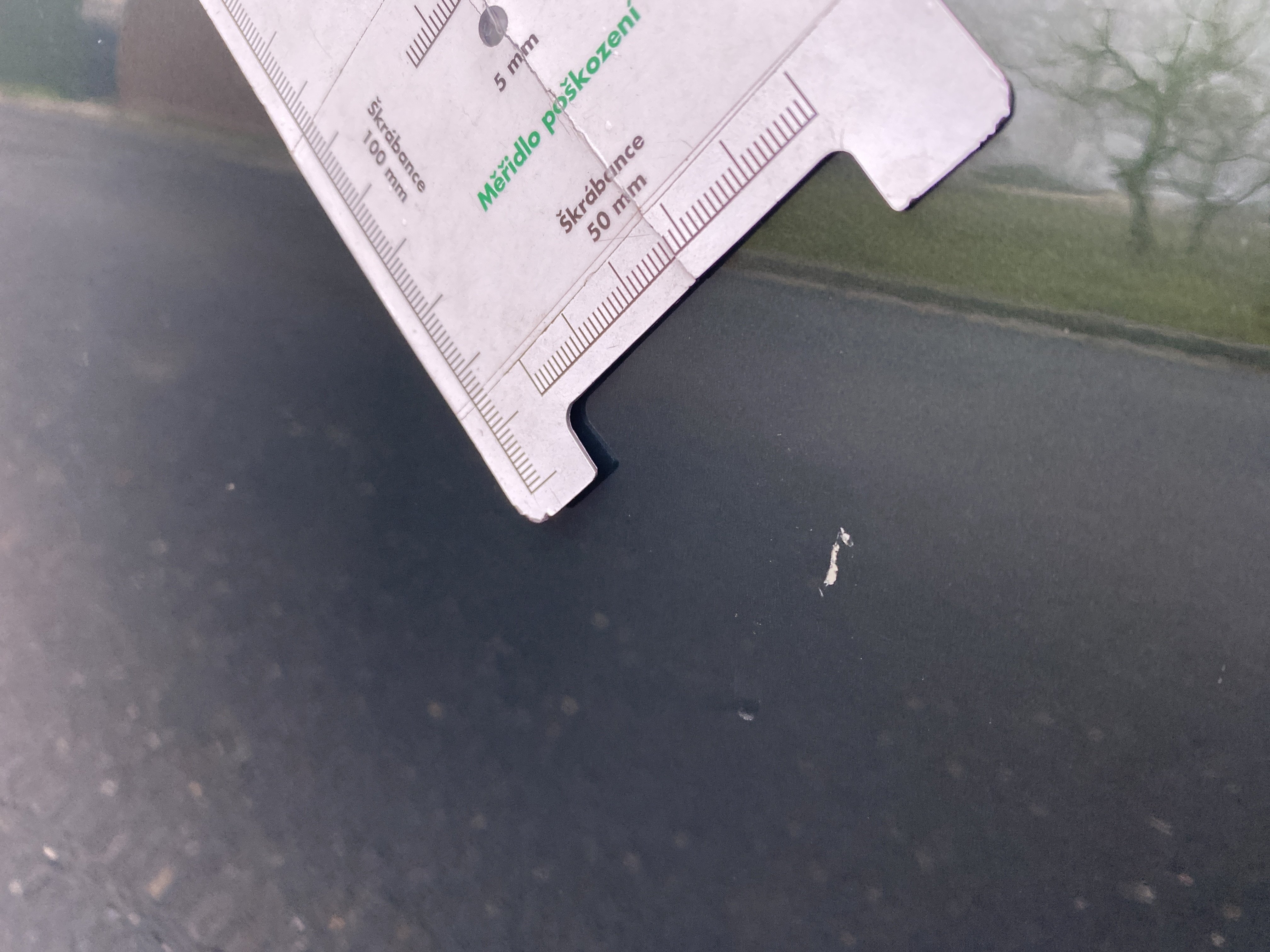 Oděrky a škrábance po obvodu karosérie, přední část karosérie je poškozená od kamínků, odřené levé přední dveře, odřený zadní nárazník, odřené víko zavazadlového prostoru, odřený pravý zadní blatník, odřené pravé zadní dveře, poškozené čelní sklo od kamínků, odřené pravé přední dveře, interiér vozidla opotřeben,
