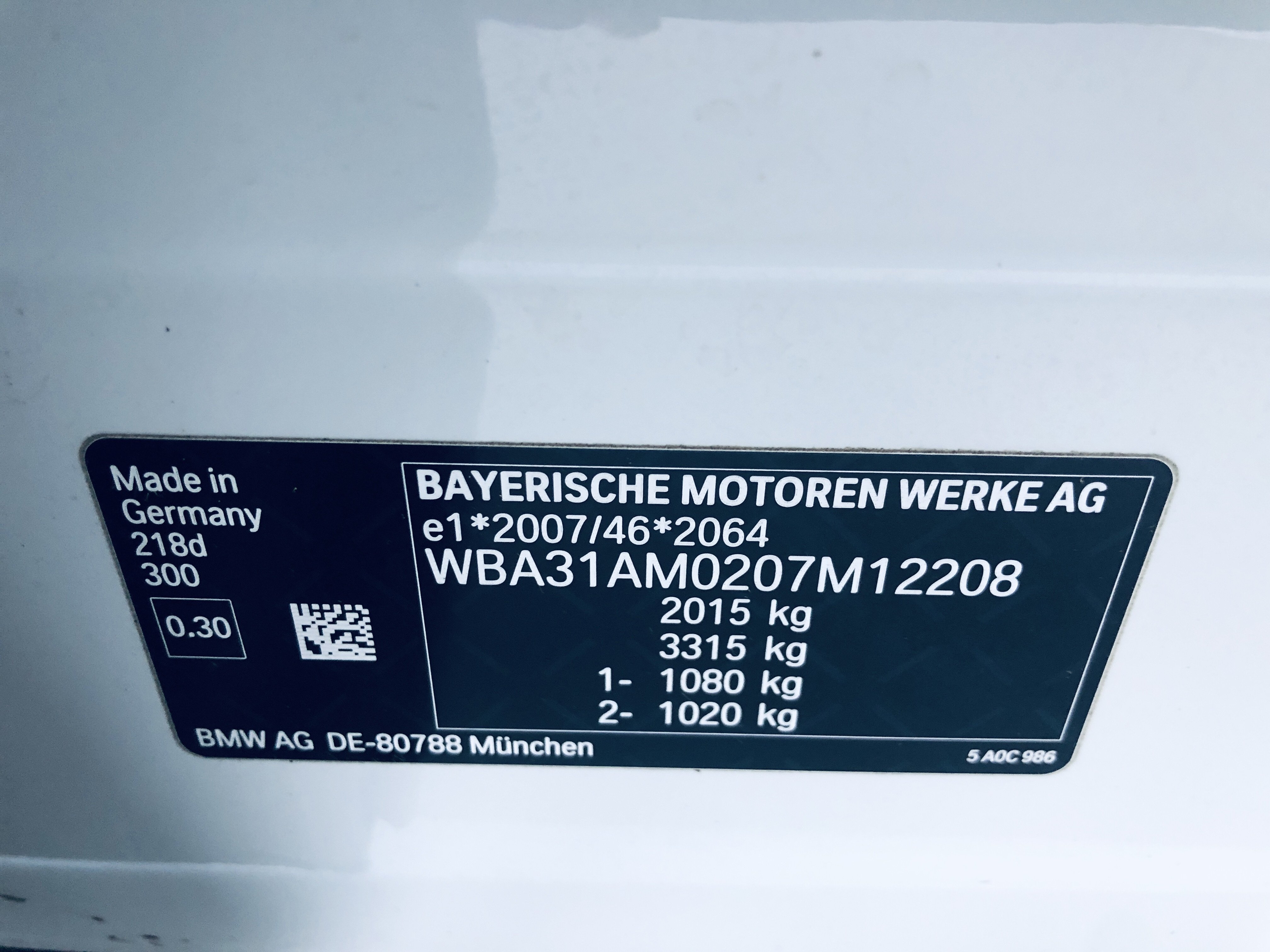 | VIN | WBA31AM0207M12208 |