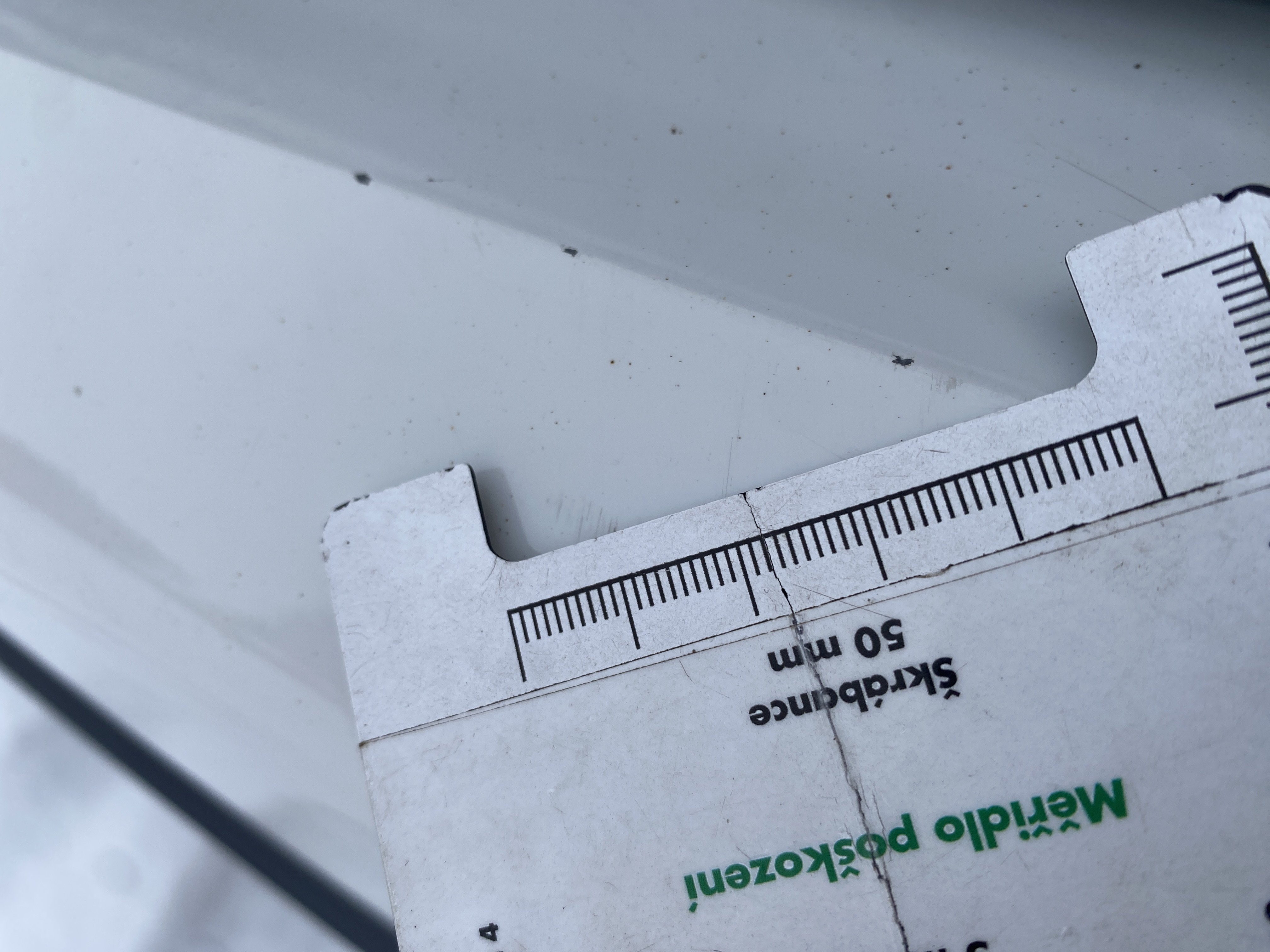 Oděrky a škrábance po obvodu karosérie, přední část karosérie je poškozená od kamínků, odřený přední nárazník, mírně odřené levé přední dveře, odřený zadní nárazník, mírně odřené pravé přední dveře, mírně poškozen lak levého práhu, interiér vozidla opotřeben,