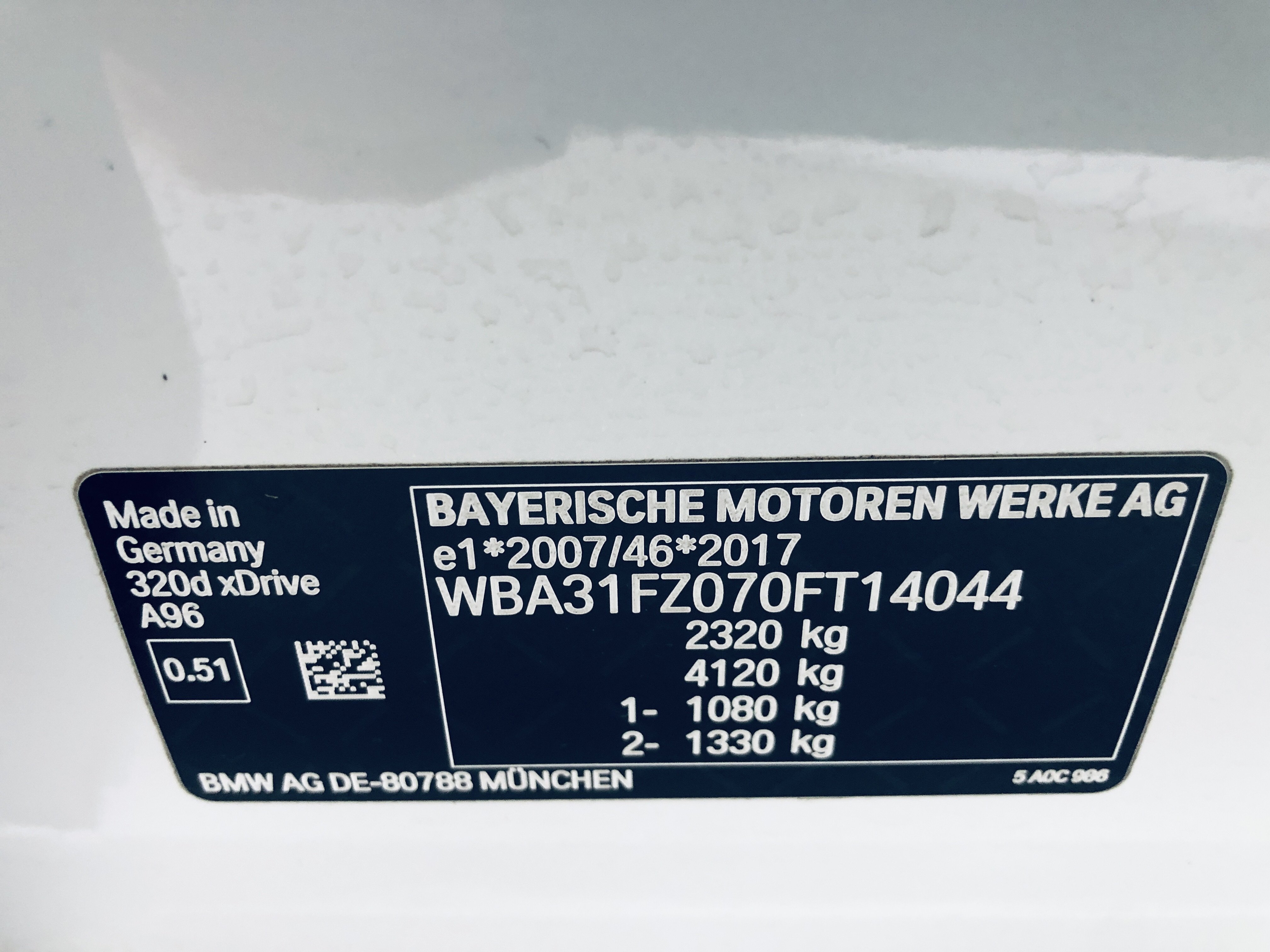 | VIN | WBA31FZ070FT14044 |