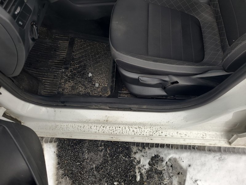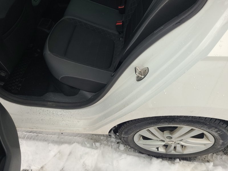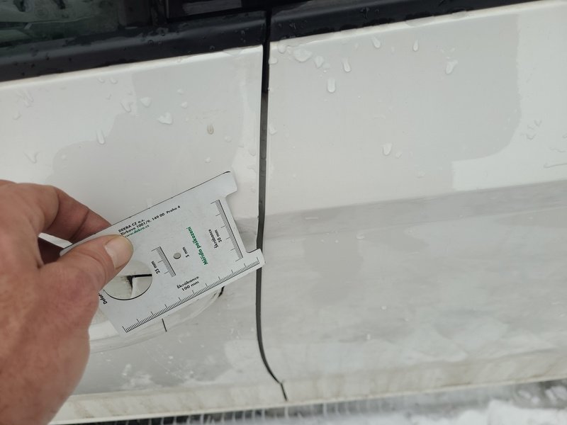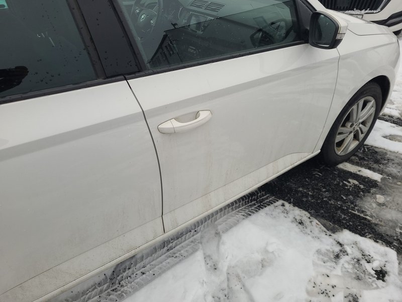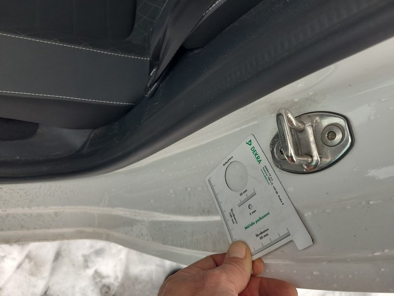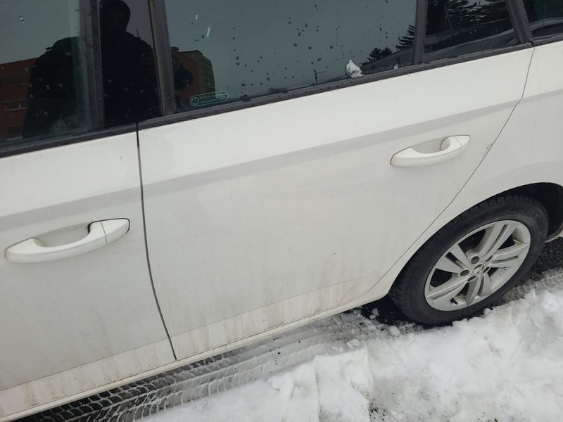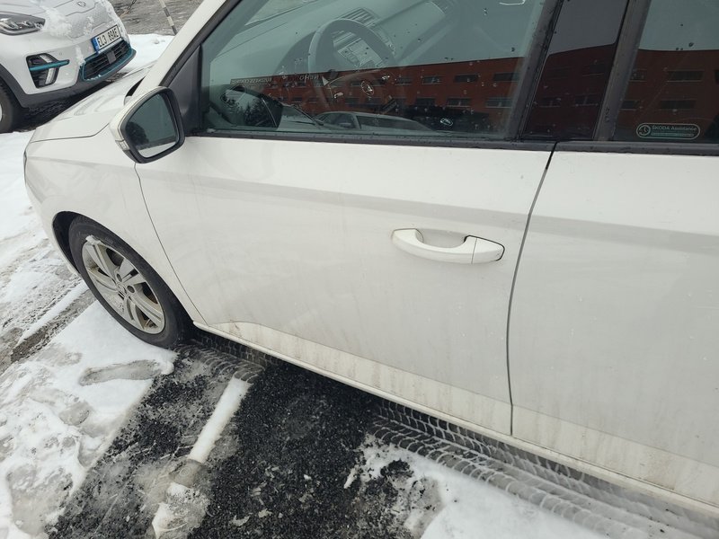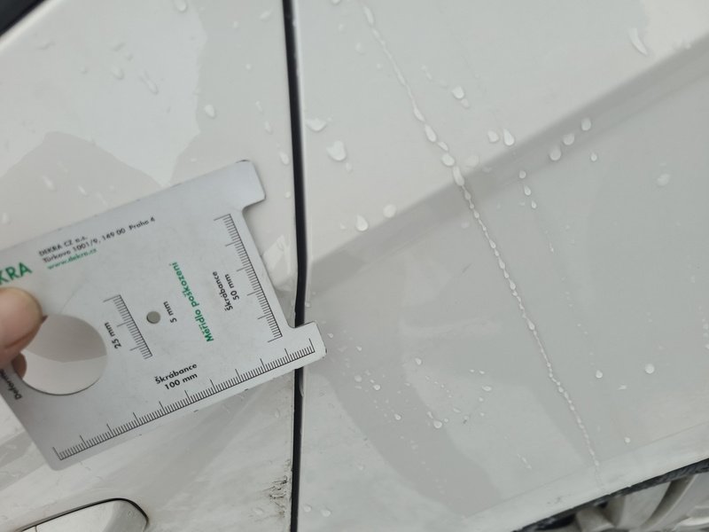 Oděrky a škrábance po obvodu karosérie, přední část karosérie je poškozená od kamínků, odřený přední nárazník, odřený levý přední blatník, deformace levého práhu, odřené levé přední dveře, odřené levé zadní dveře, mírně promáčklý levý C sloupek - jamka, odřený zadní nárazník, odřené madlo kliky pravých zadních dveří, odřené pravé přední dveře, odřený kryt pravého zpětného zrcátka, poškozen blikač pravého zpětného zrcátka, interiér vozidla opotřeben,