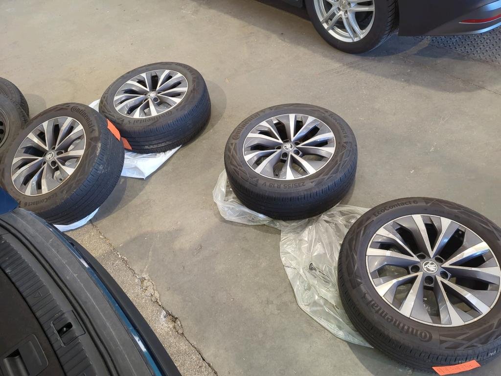 4x letné pneumatiky na diskoch, uložené vo vozidle.