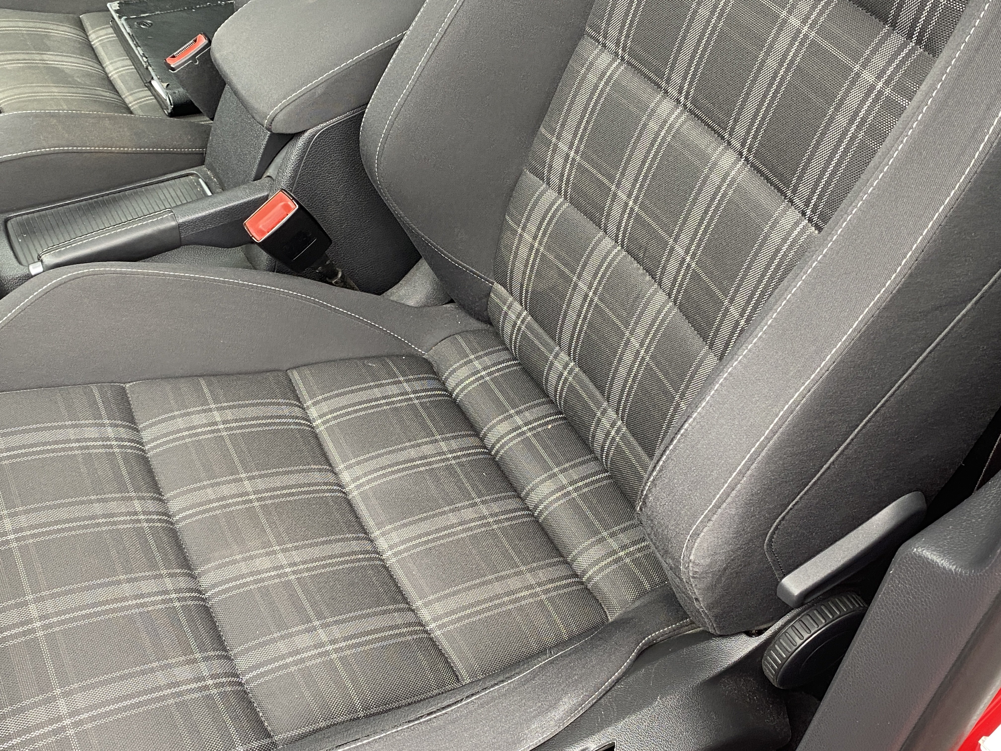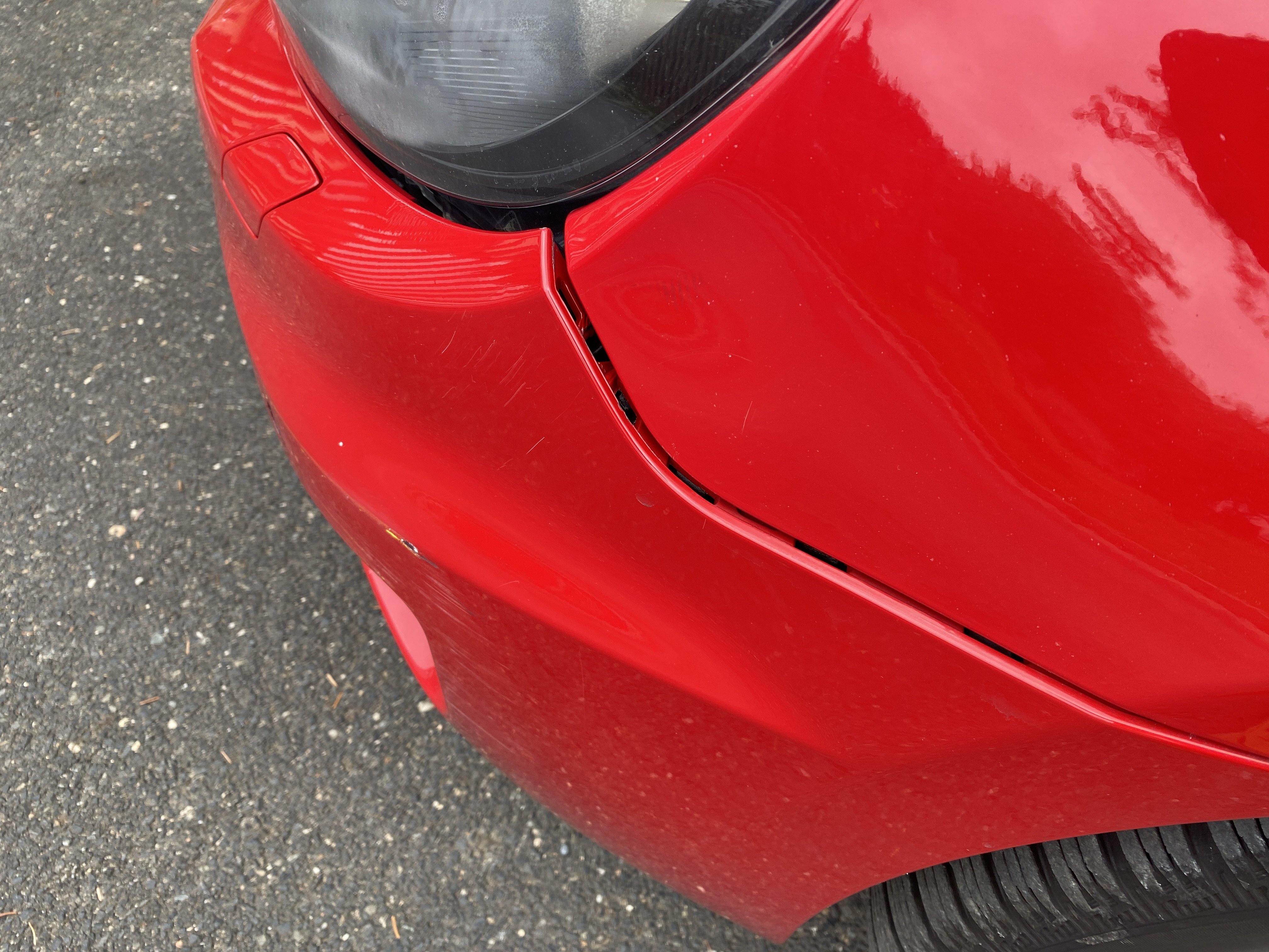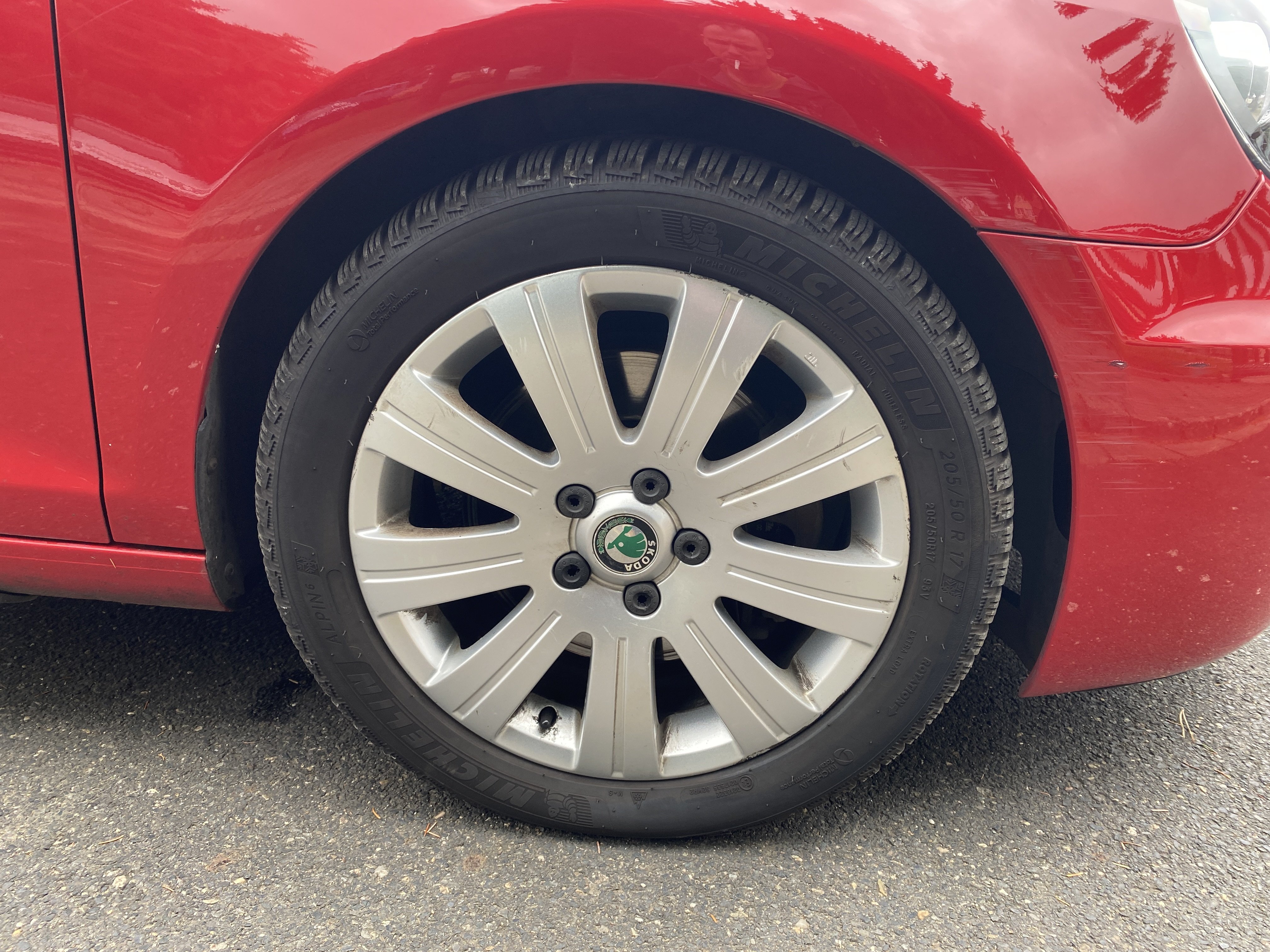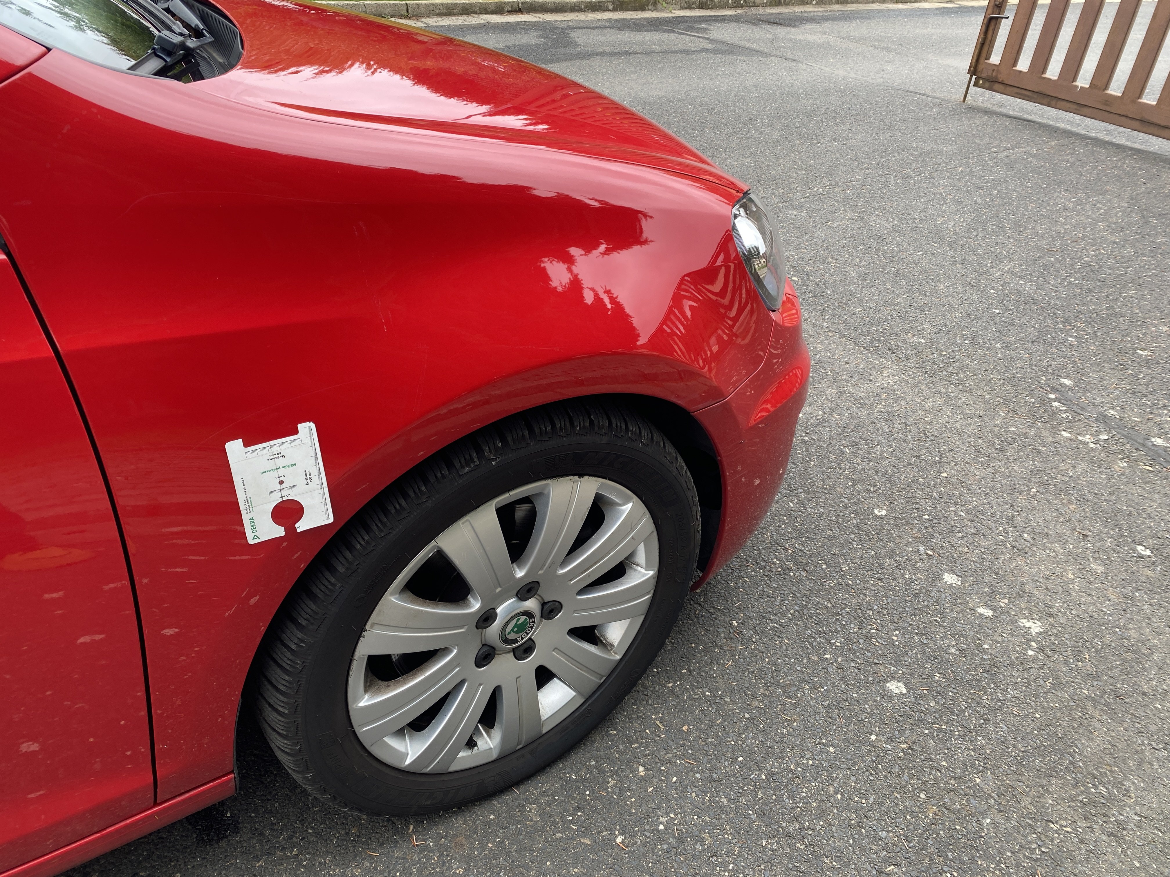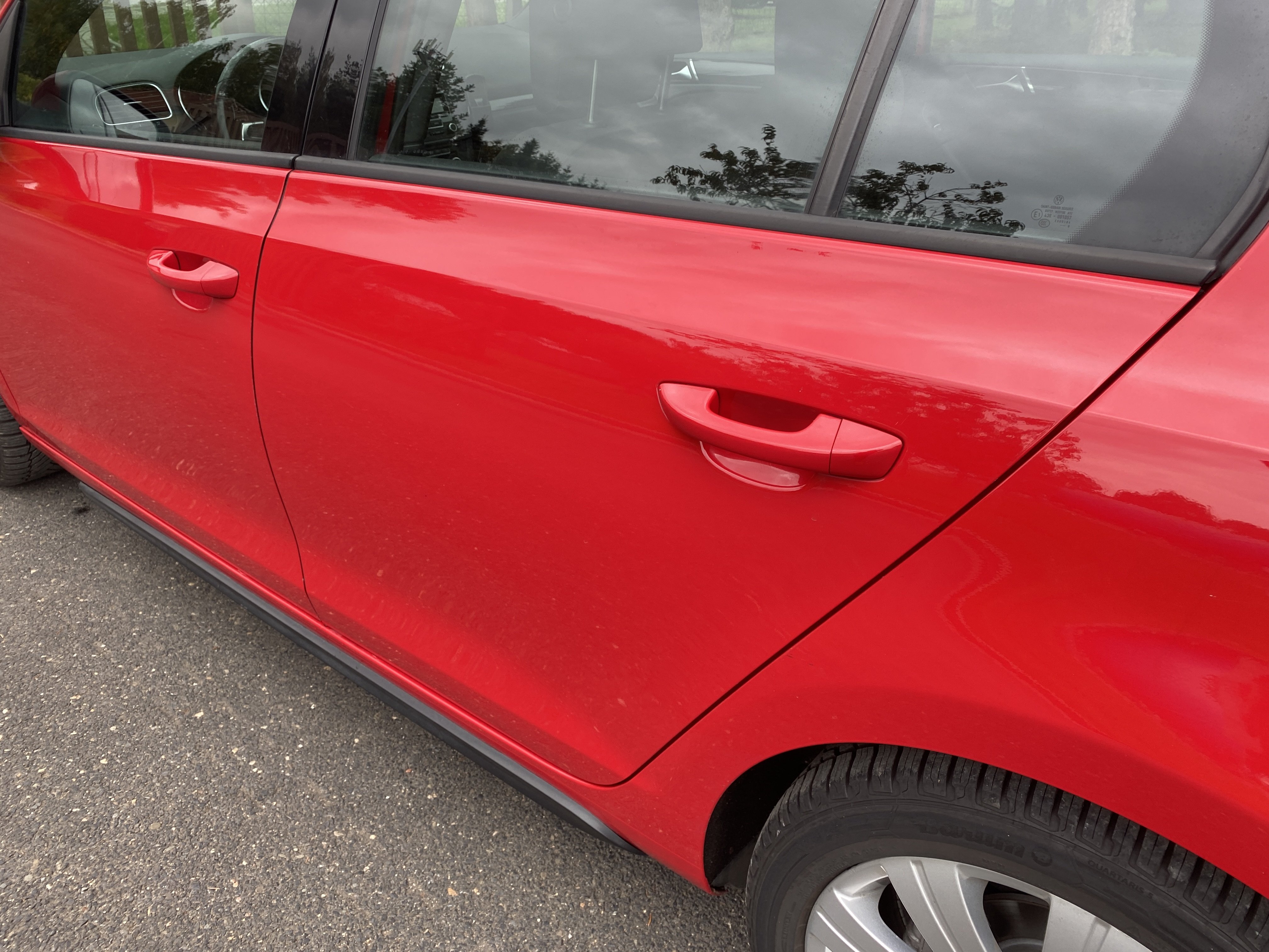 Oděrky a škrábance po obvodu karosérie, přední část karosérie je poškozená od kamínků, karosérie nese stopy po předchozí opravě, odřené pravé přední dveře, odřený pravý přední blatník, odřený přední nárazník, přední nárazník nelícuje, odřené víko motorového prostoru, odřená klika levých předních dveří, odřený zadní nárazník, odřený pravý zadní blatník, svítí kontrolka motoru, interiér vozidla opotřeben, palubní počítač hlásí servisní interval, svítí kontrolka motoru, poškozen potah levého předního sedadla,