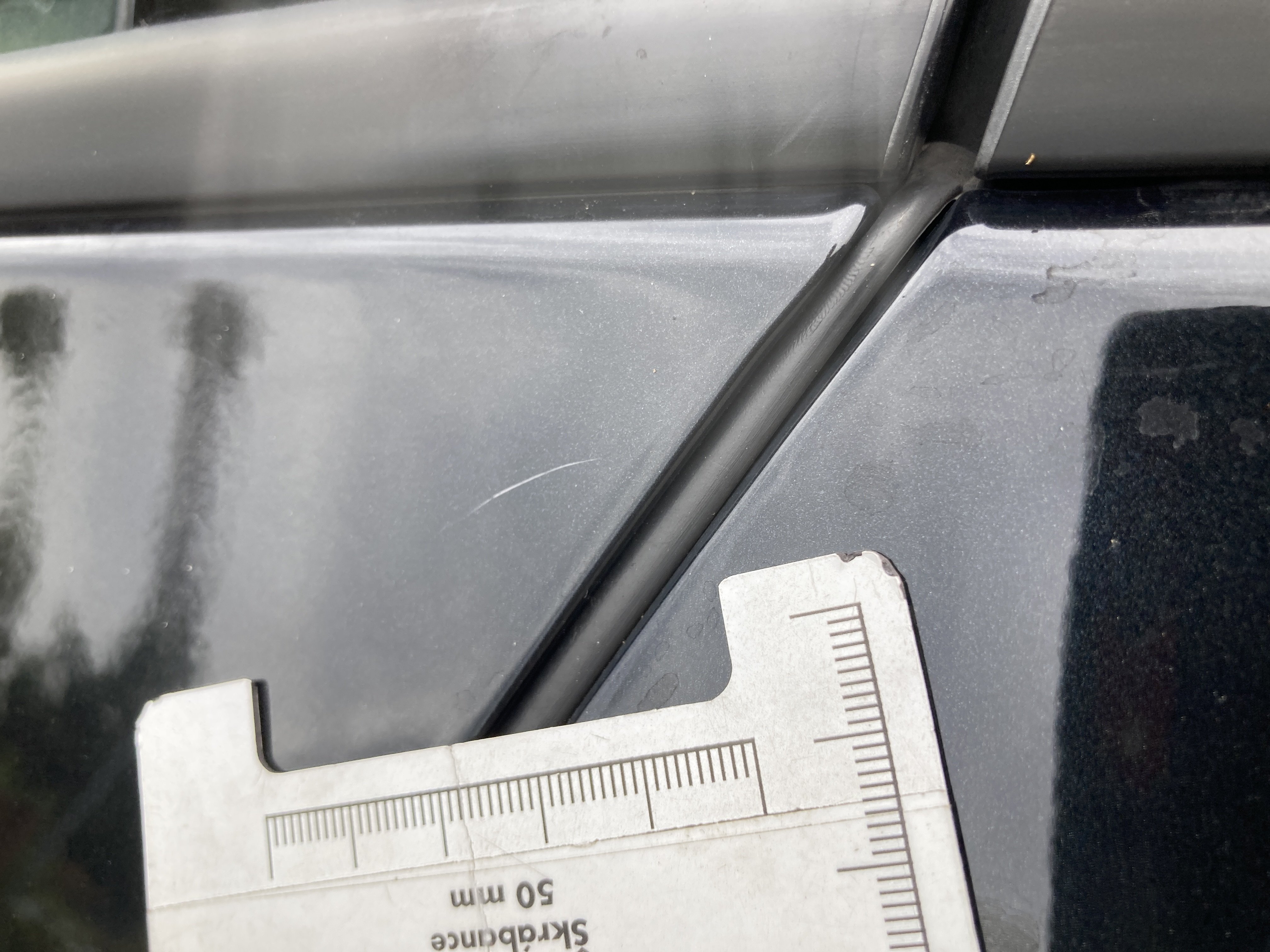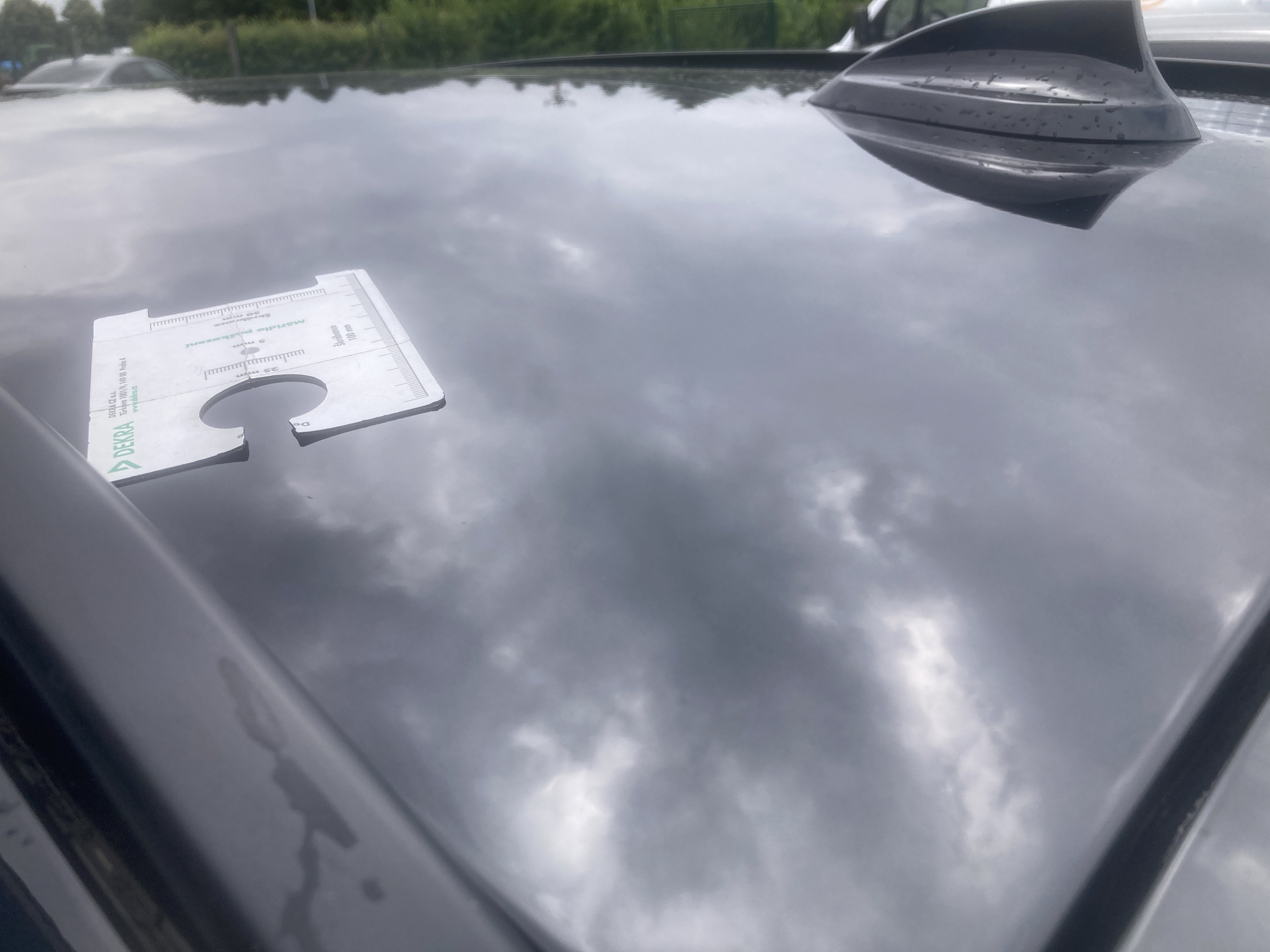 Oděrky a škrábance po obvodu karosérie, přední část karosérie je poškozená od kamínků, poškozená hluková izolace víka motorového prostoru, mírně promáčklý levý přední blatník - jamka, mírně odřené levé zadní dveře, odřený zadní nárazník, mírně odřené víko zavzadlového prostoru, mírně odřený kryt pravého zpětného zrcátka, mírně odřený pravý práh, interiér vozidla opotřeben, karosérie nese stopy po předchozí opravě, deformace plata střechy v zadní části, interiér vozidla opotřeben,